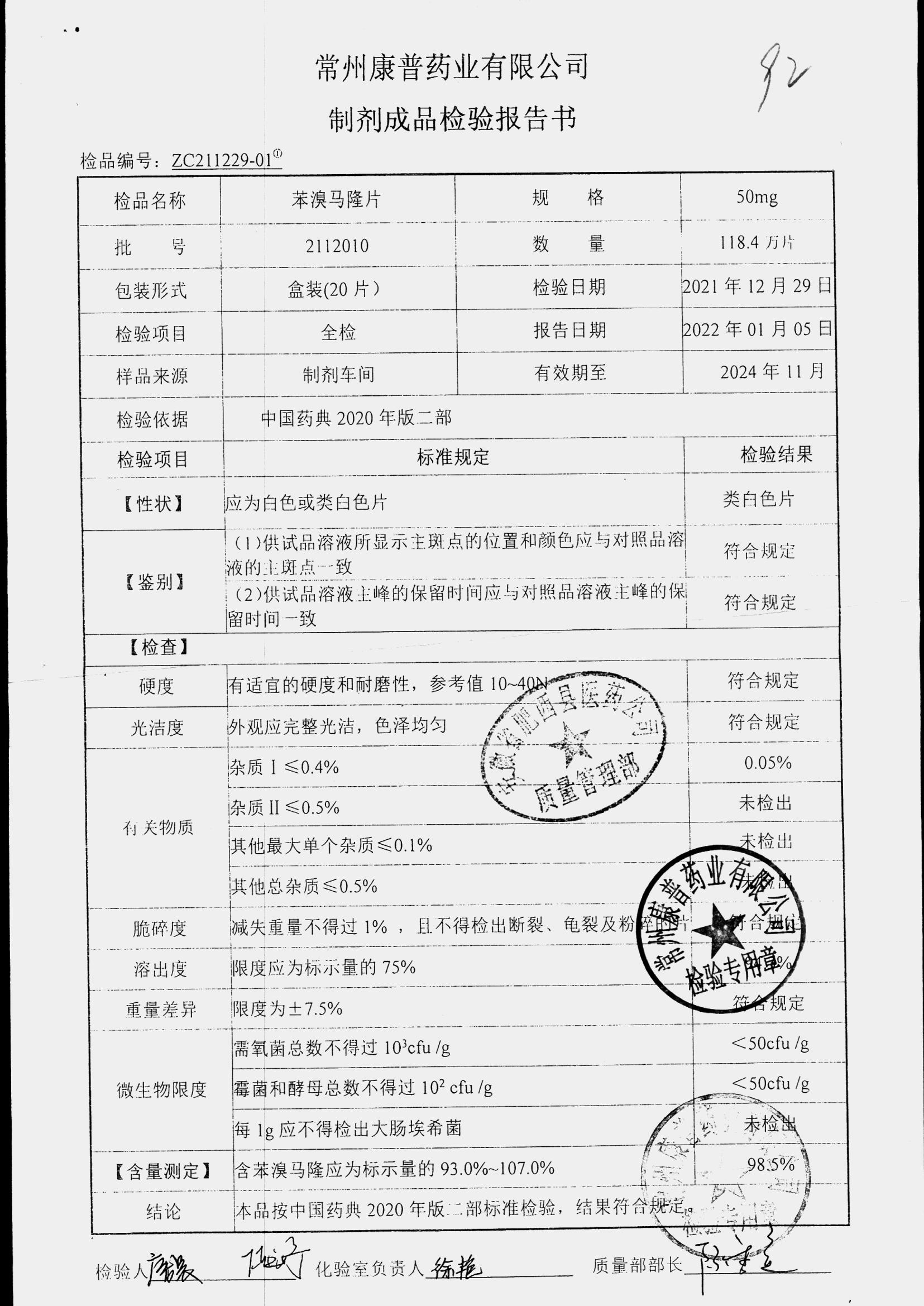 苯溴马隆片 | 50mg | 2005015 | 查看详情 |