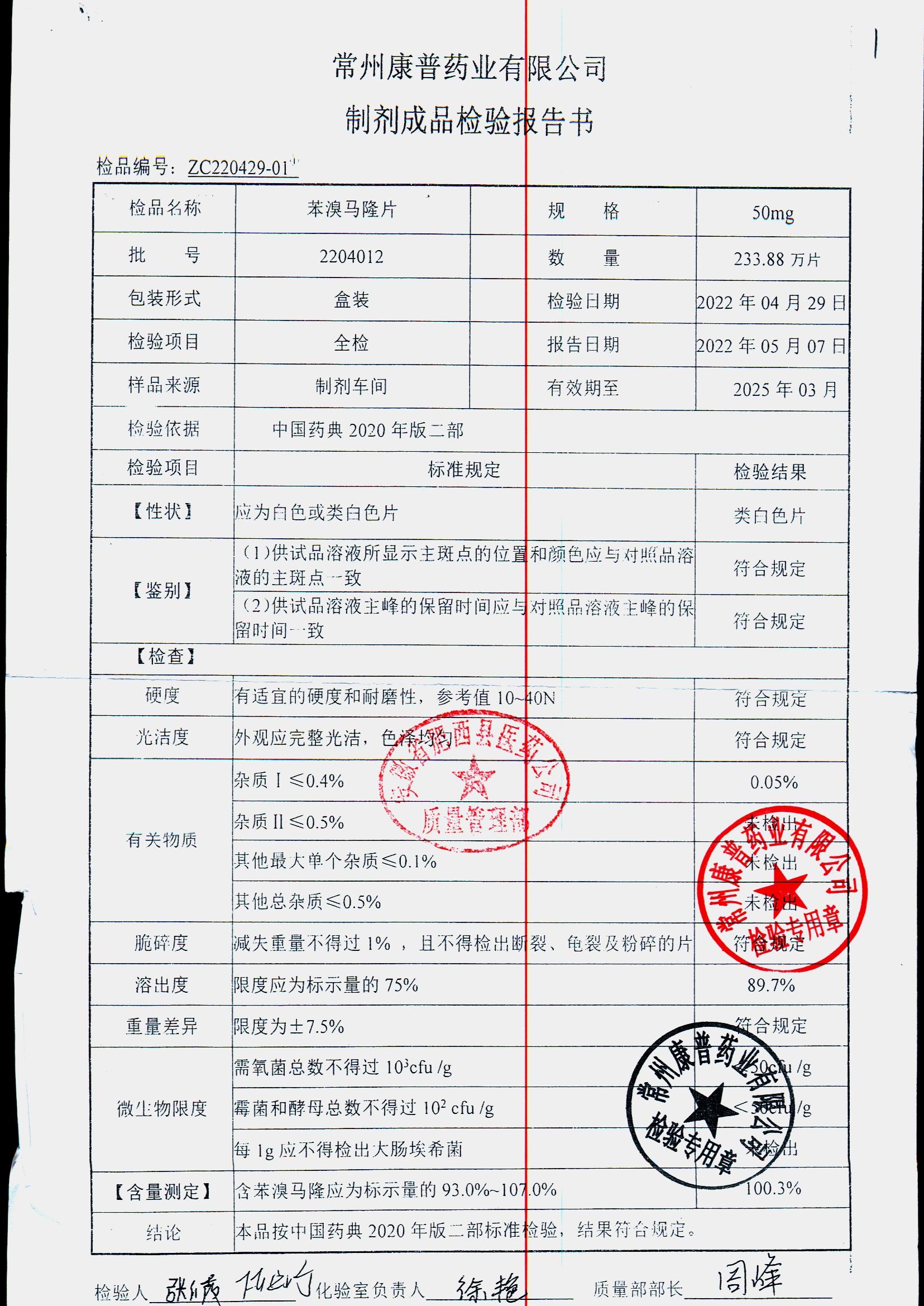 苯溴马隆片 | 50mg | 2204012 | 查看详情 |