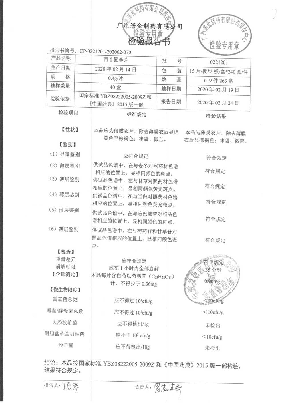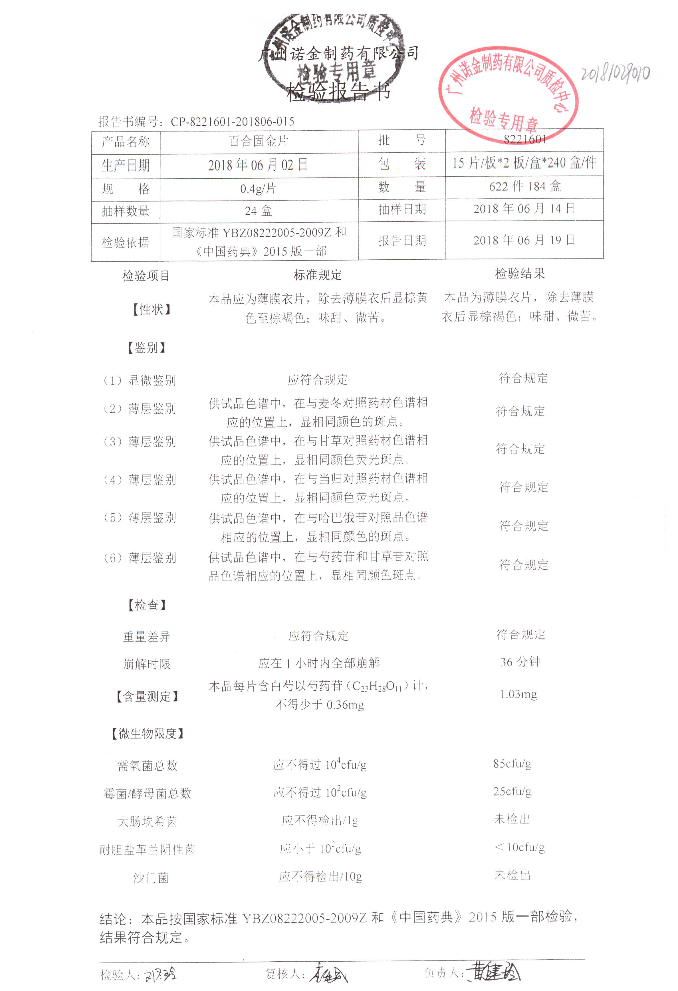 名称 | 规格 | 批号 | 药检报告 |