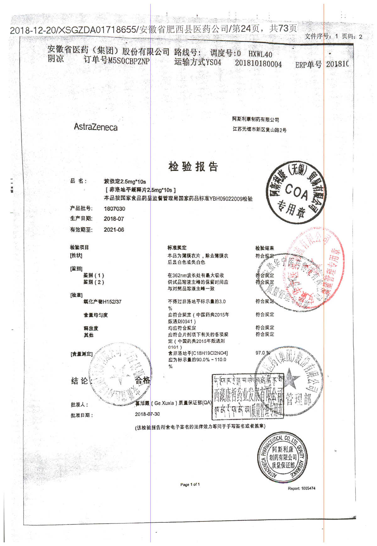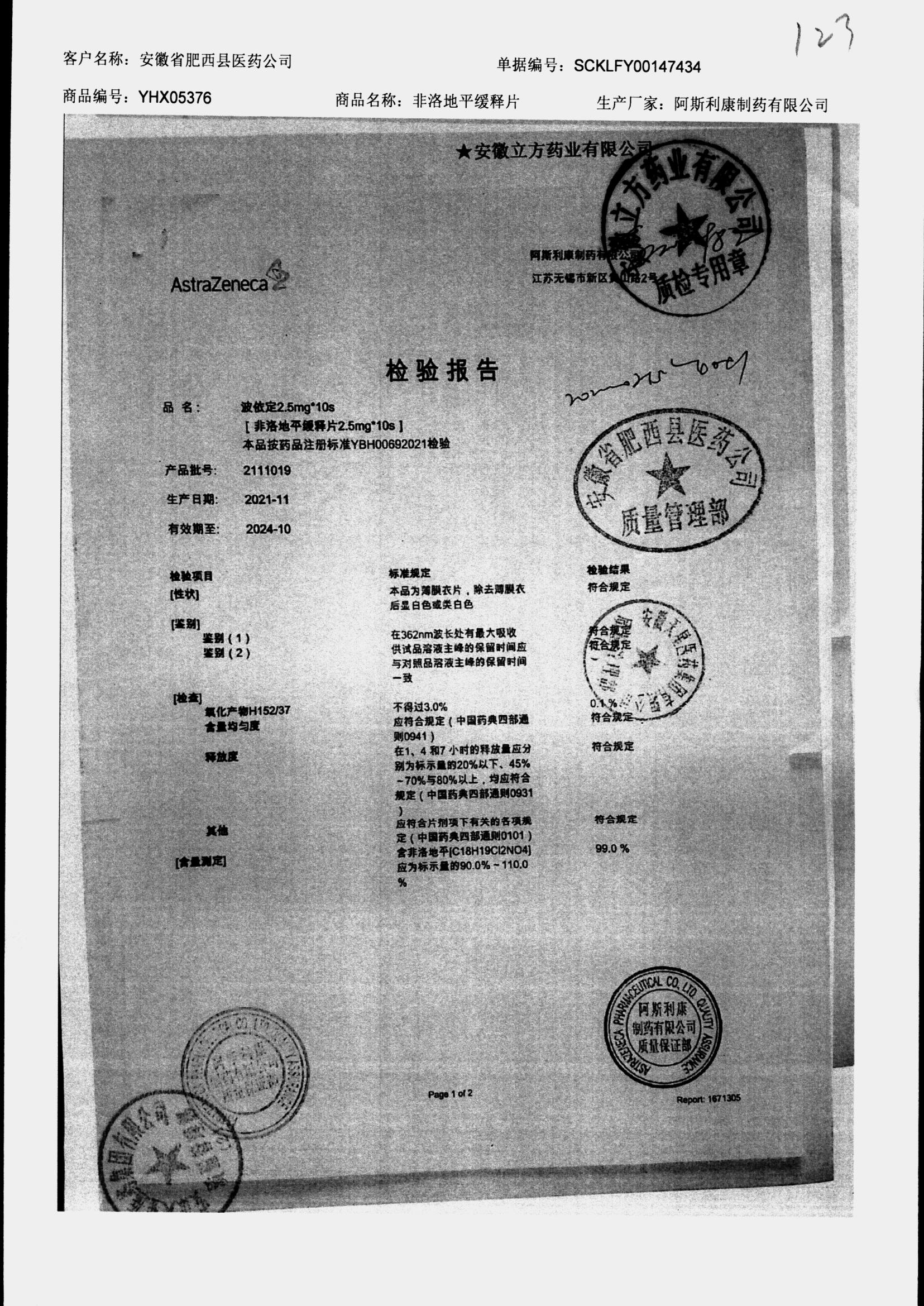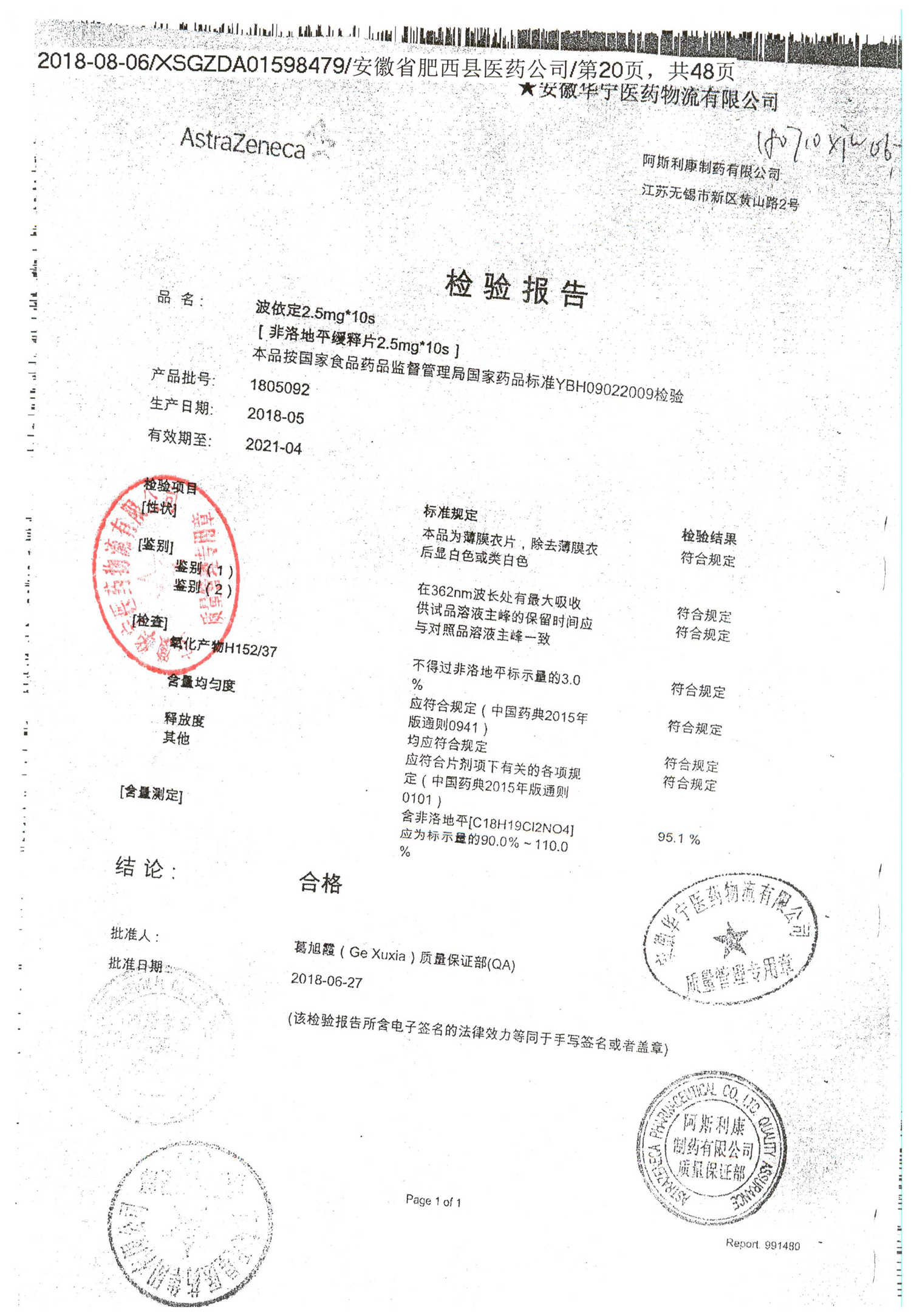 非洛地平缓释片 | 2.5mg*10s | 1805092 | 查看详情 |