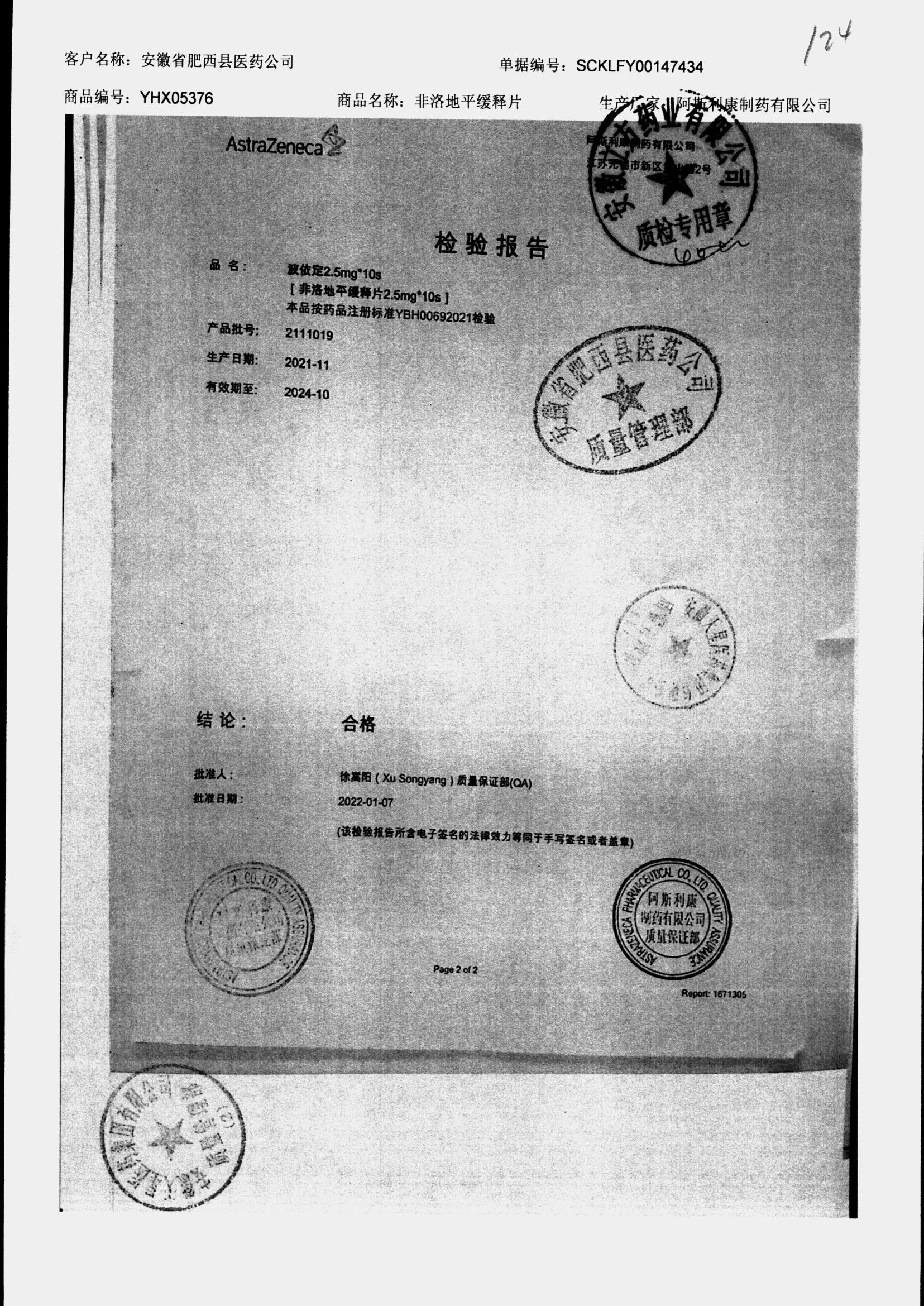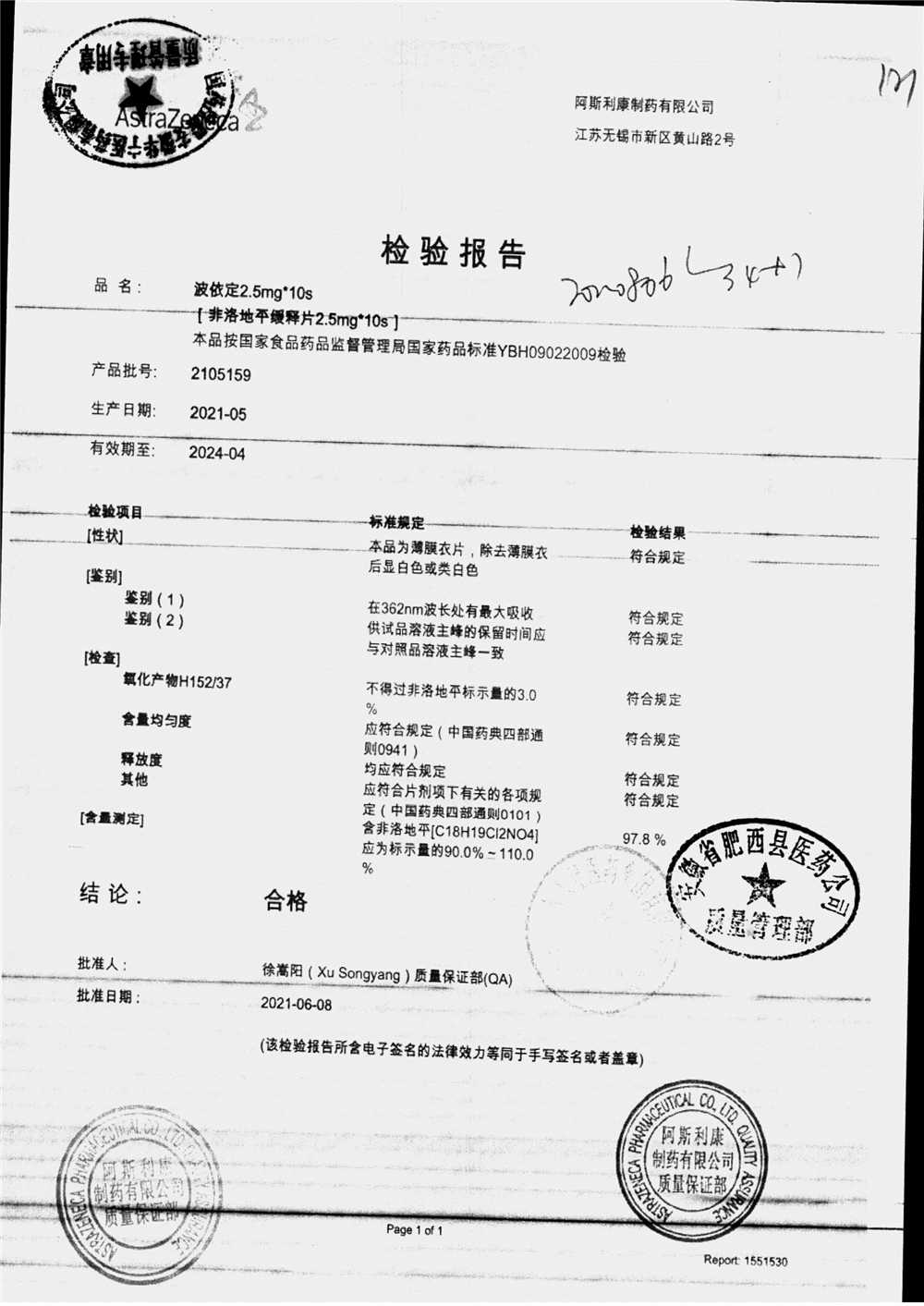 非洛地平缓释片 | 2.5mg*10s | 2111019/1 | 查看详情 |