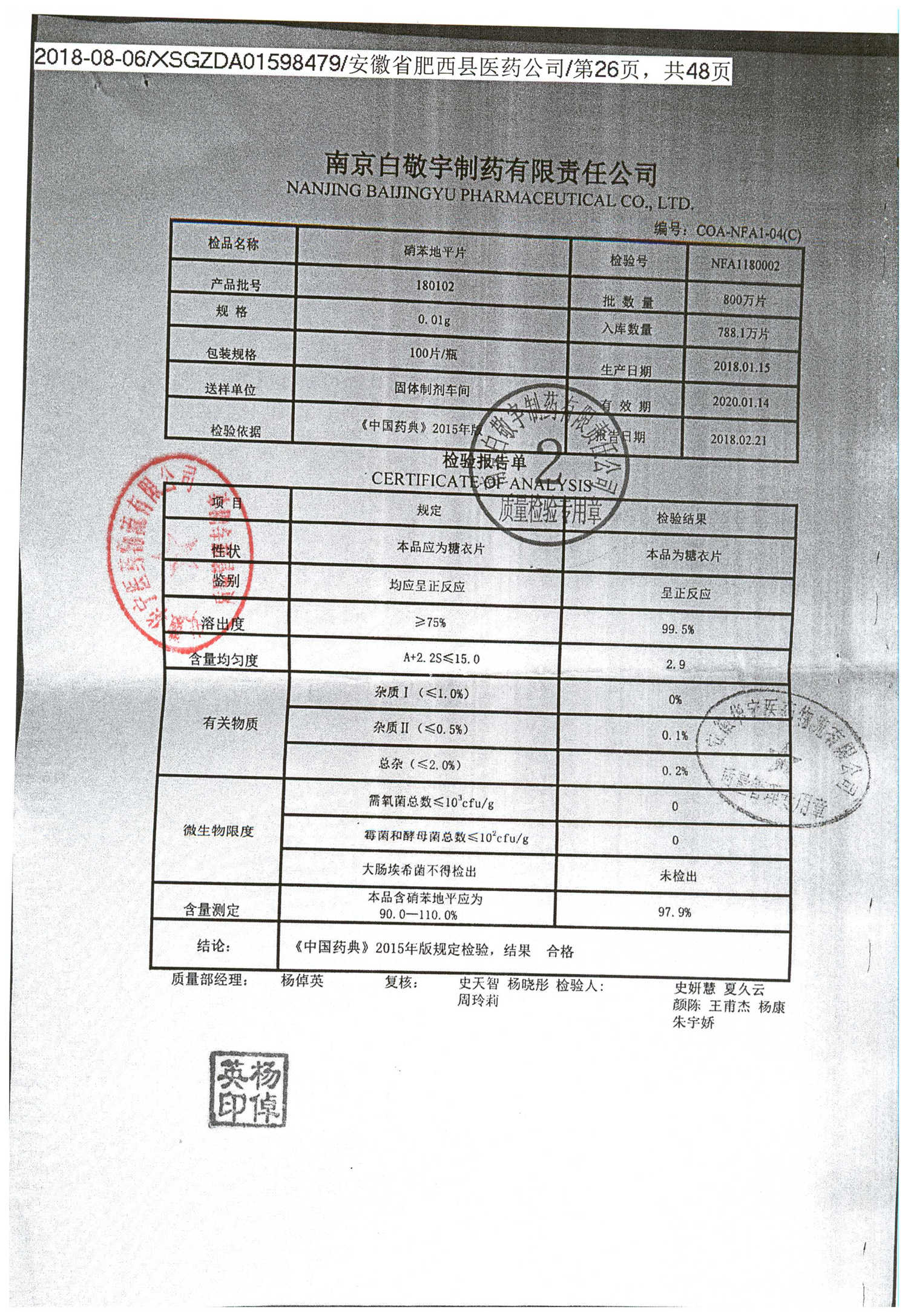 药检报告