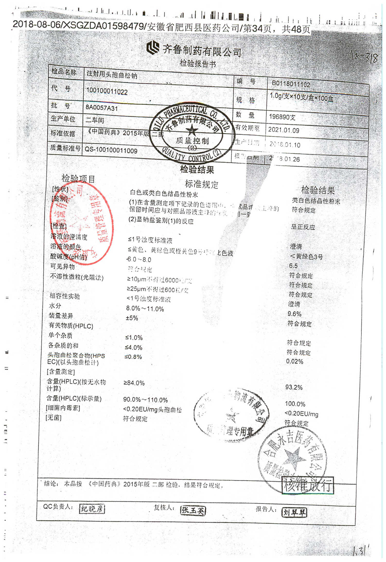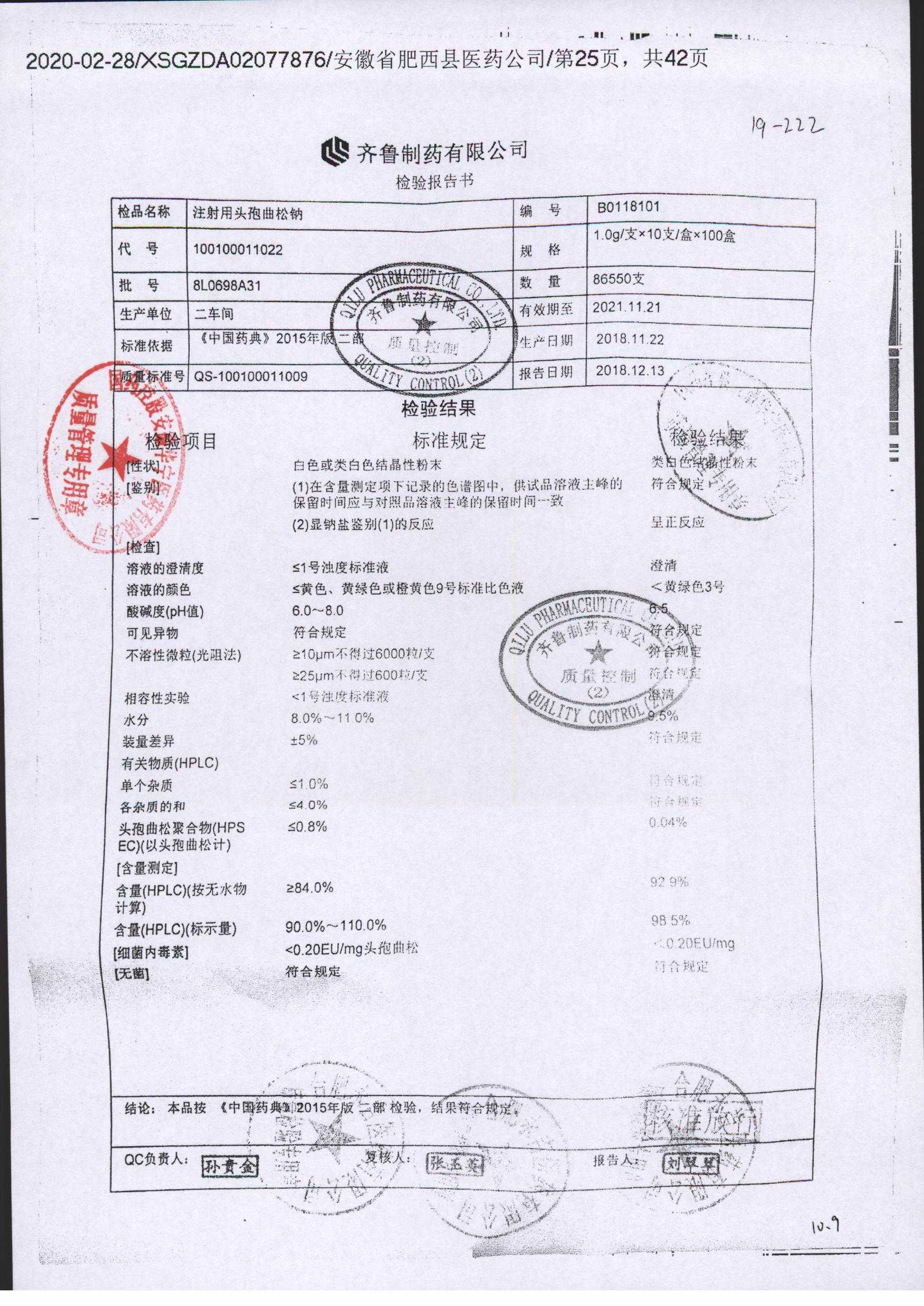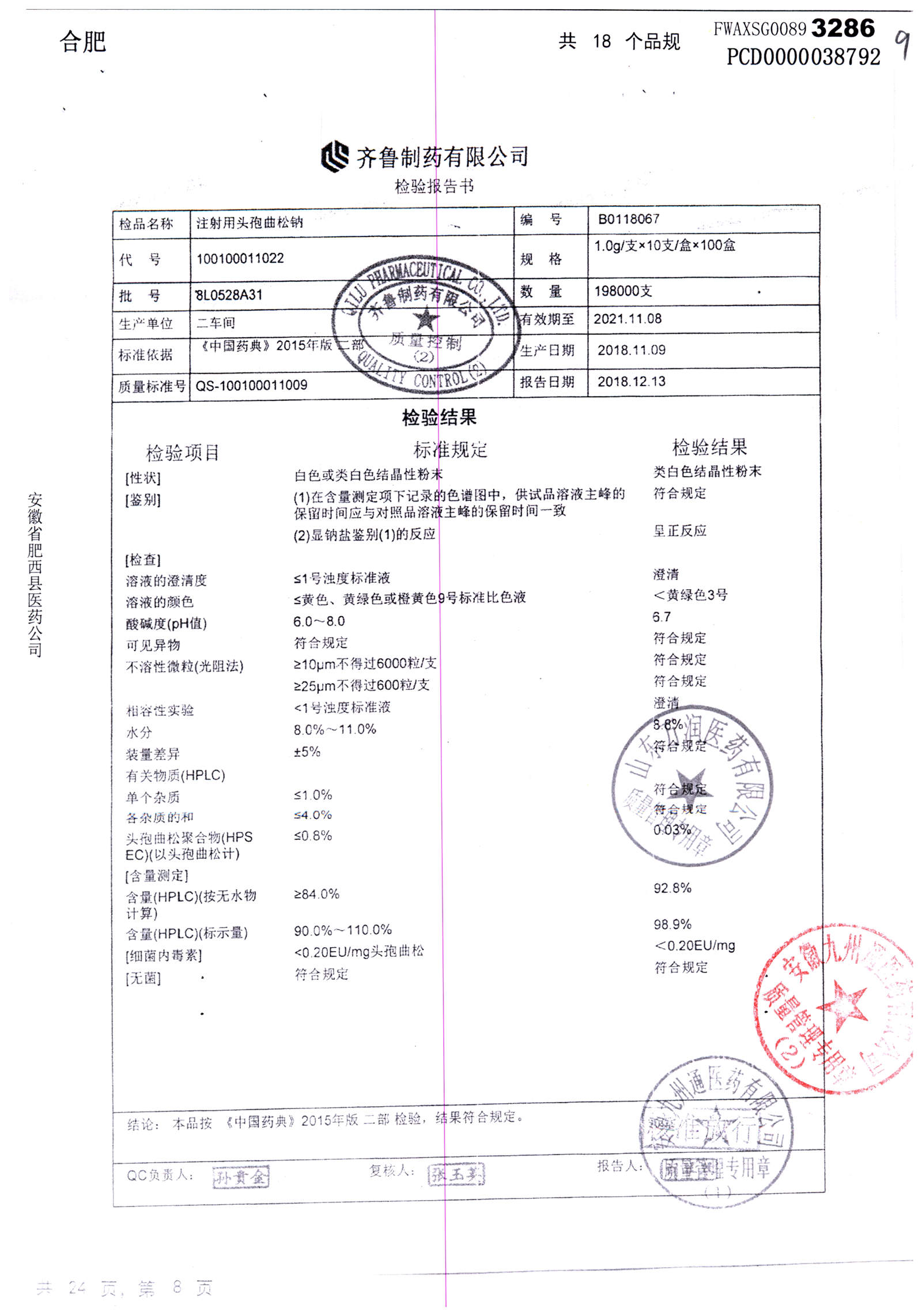 注射用头孢曲松钠 | 1.0g | 8L0528A31 | 查看详情 |