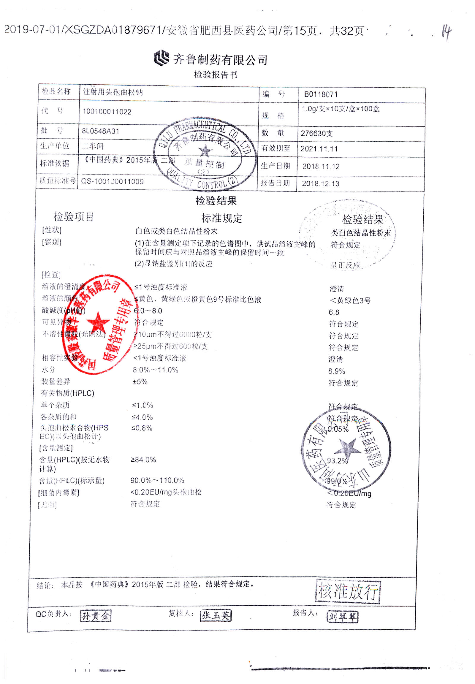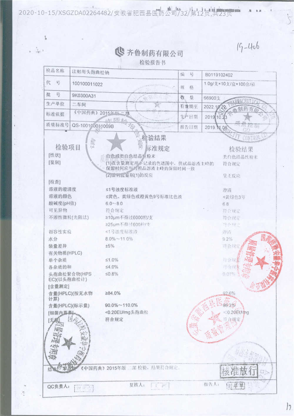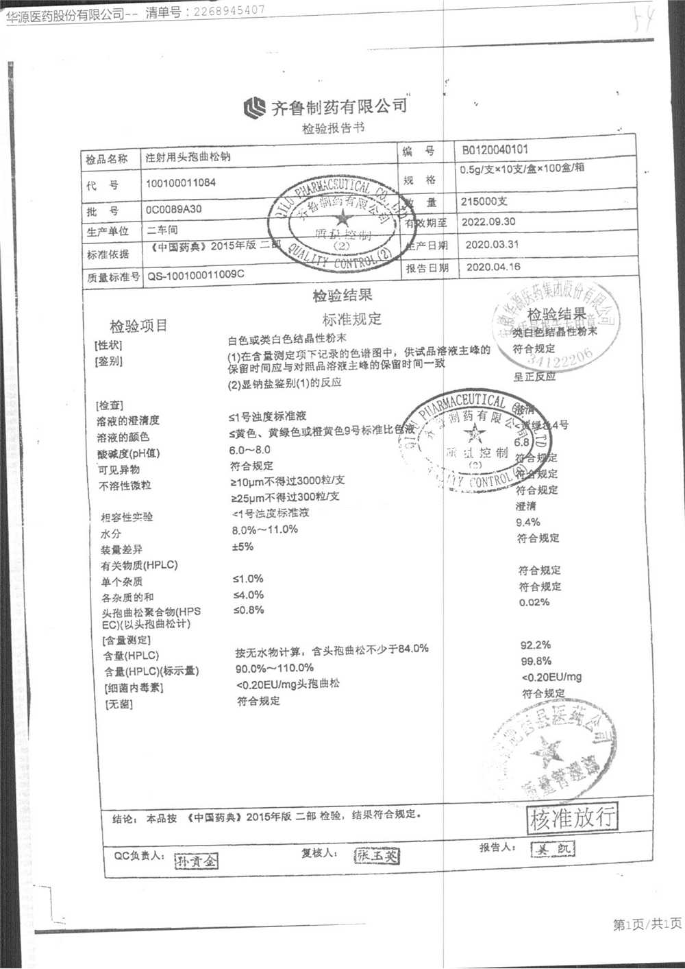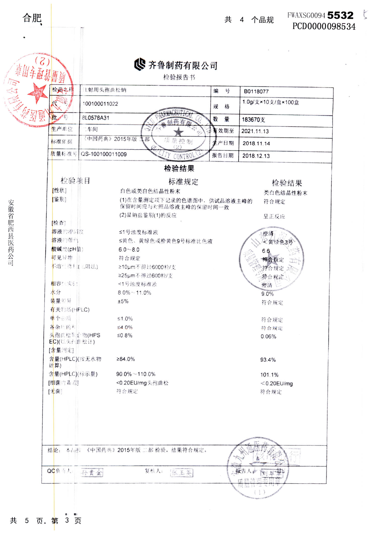 注射用头孢曲松钠 | 1.0g | 8L0528A31 | 查看详情 |