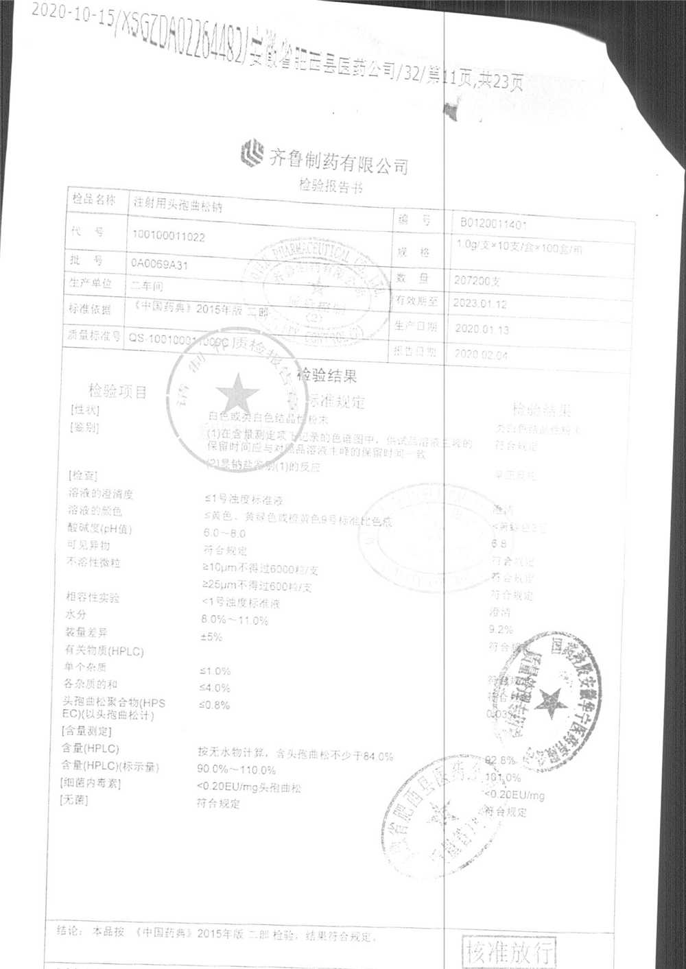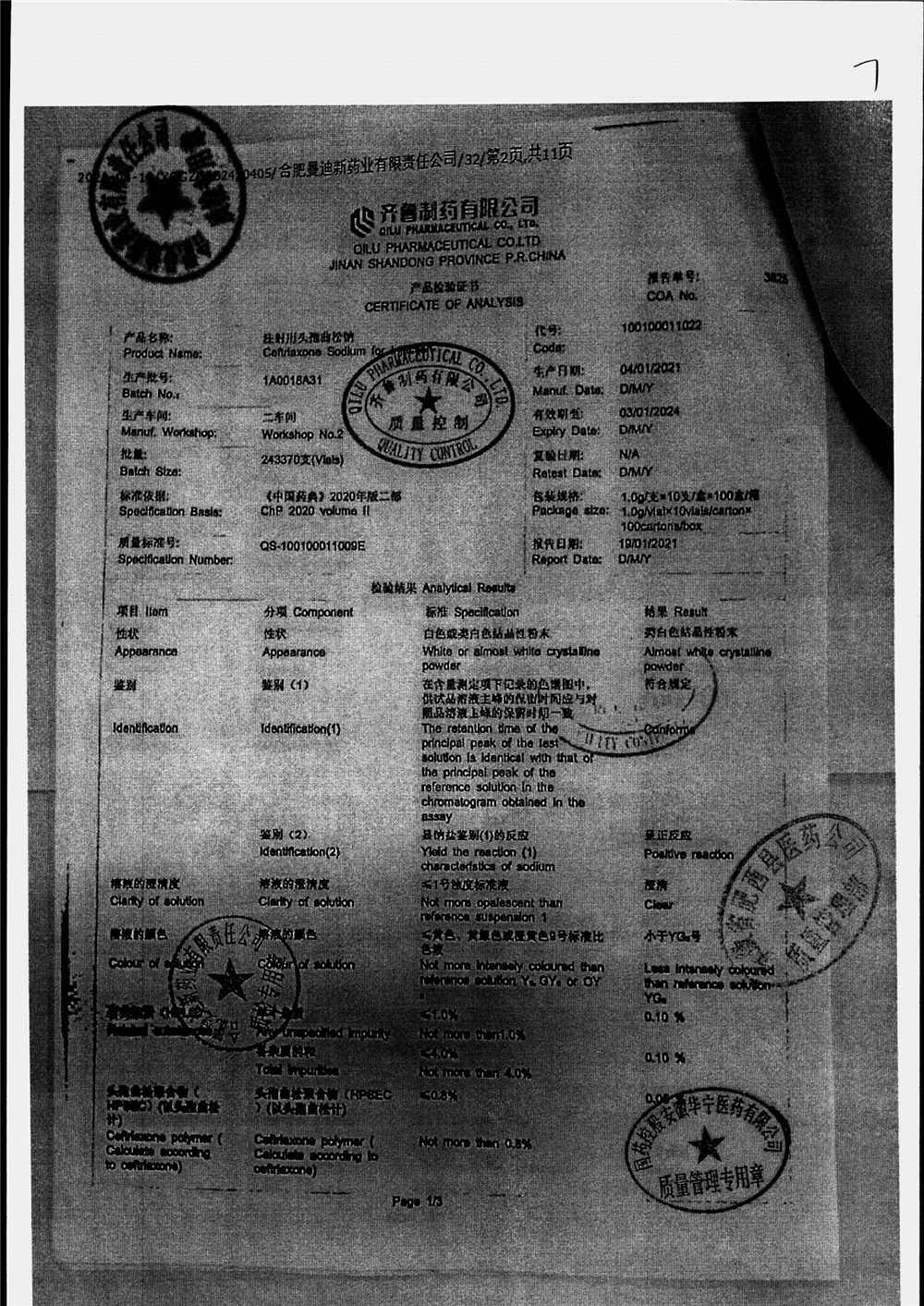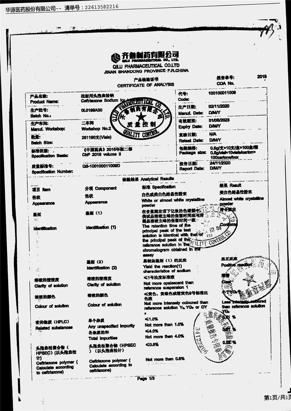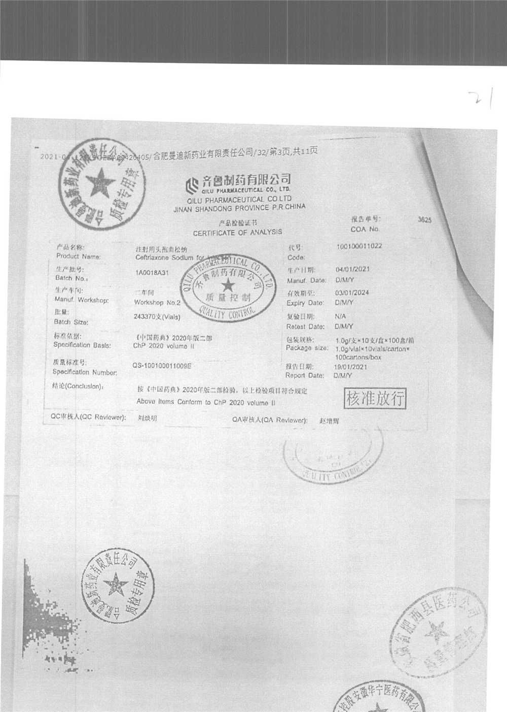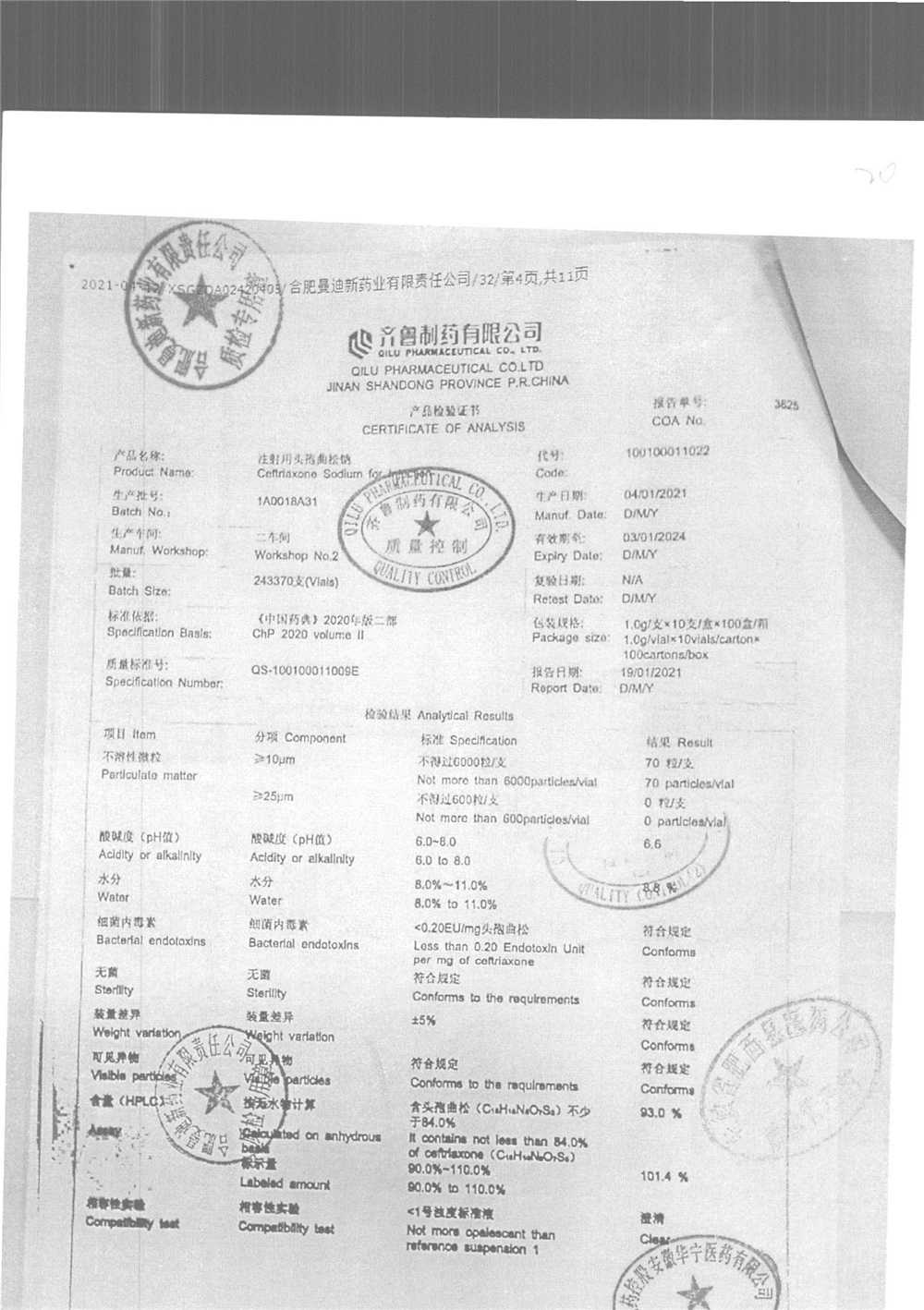 注射用头孢曲松钠 | 1.0g | 1A0018A31(1/3) | 查看详情 |