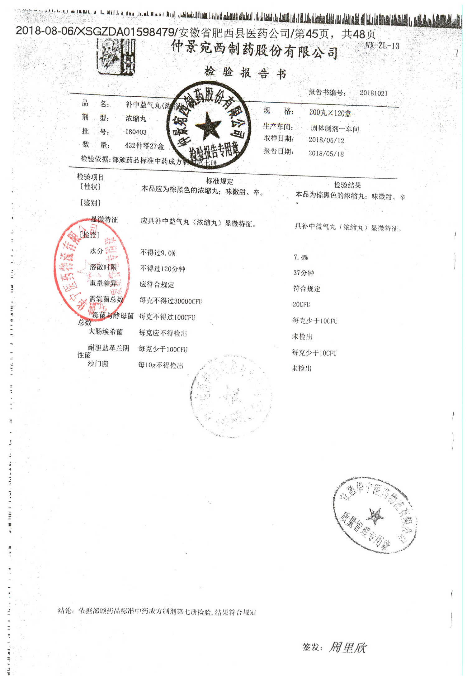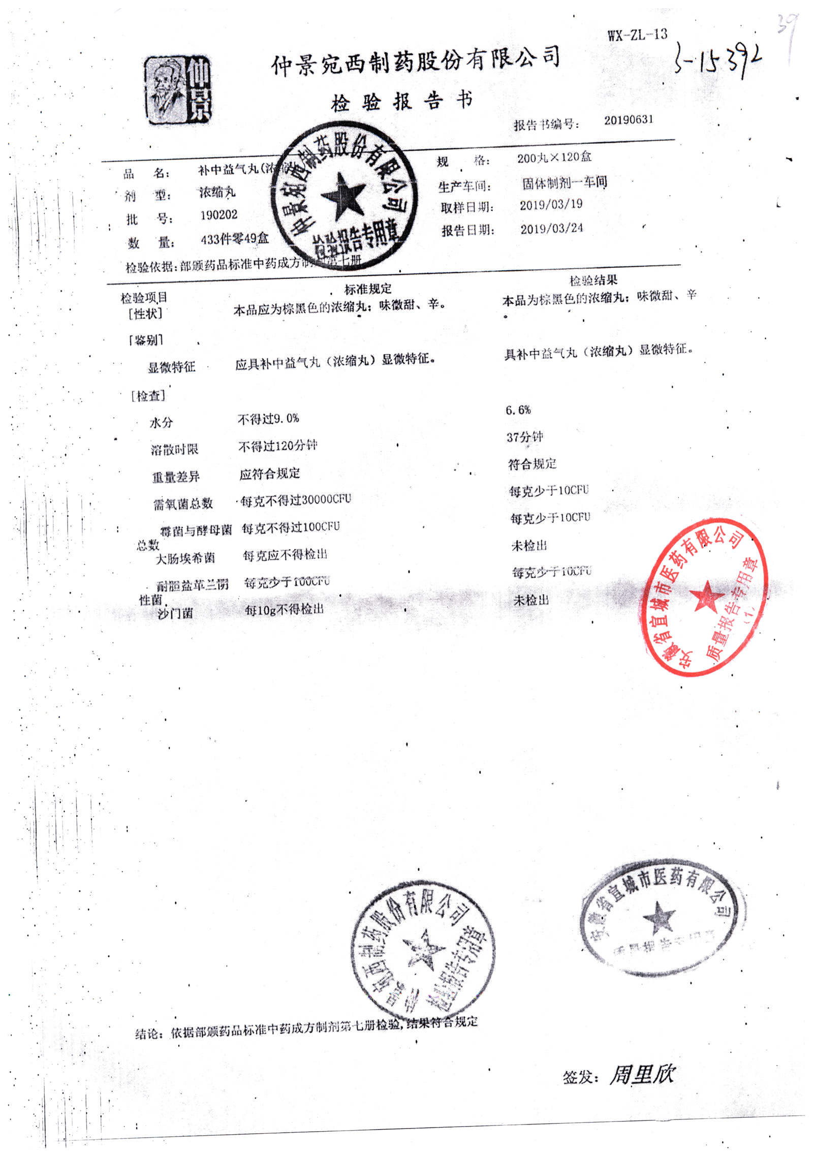 名称 | 规格 | 批号 | 药检报告 |