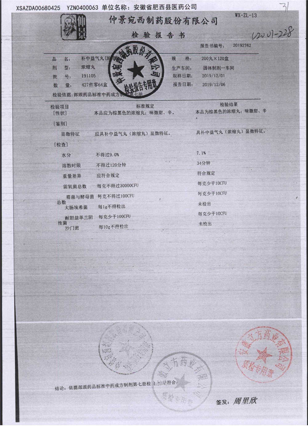 补中益气丸 | 200丸 | 191105 | 查看详情 |