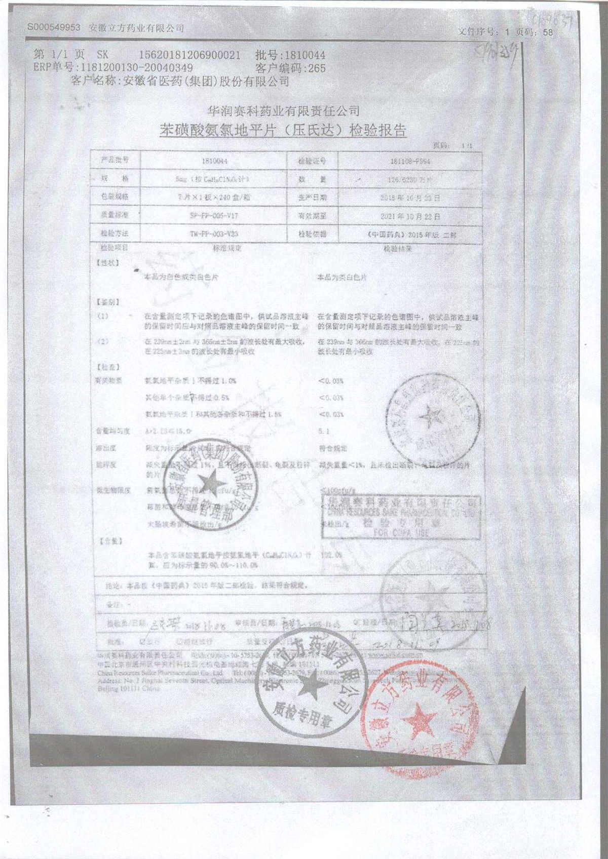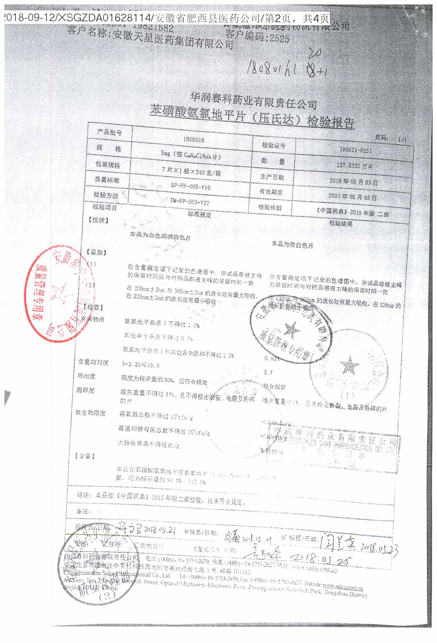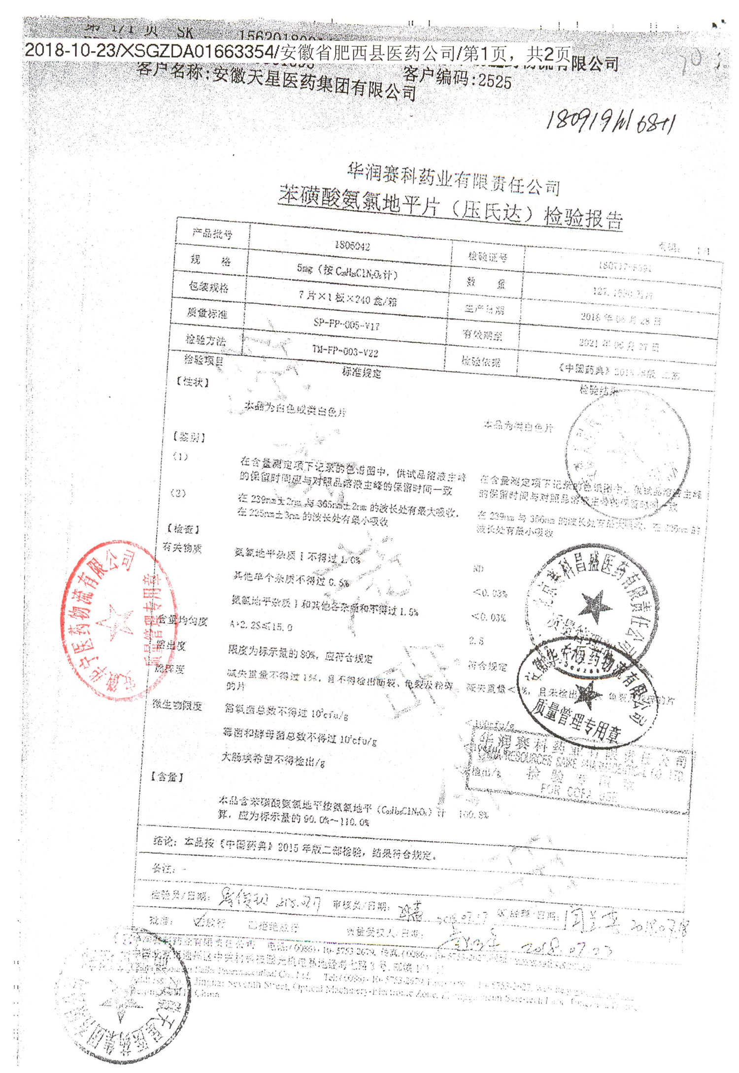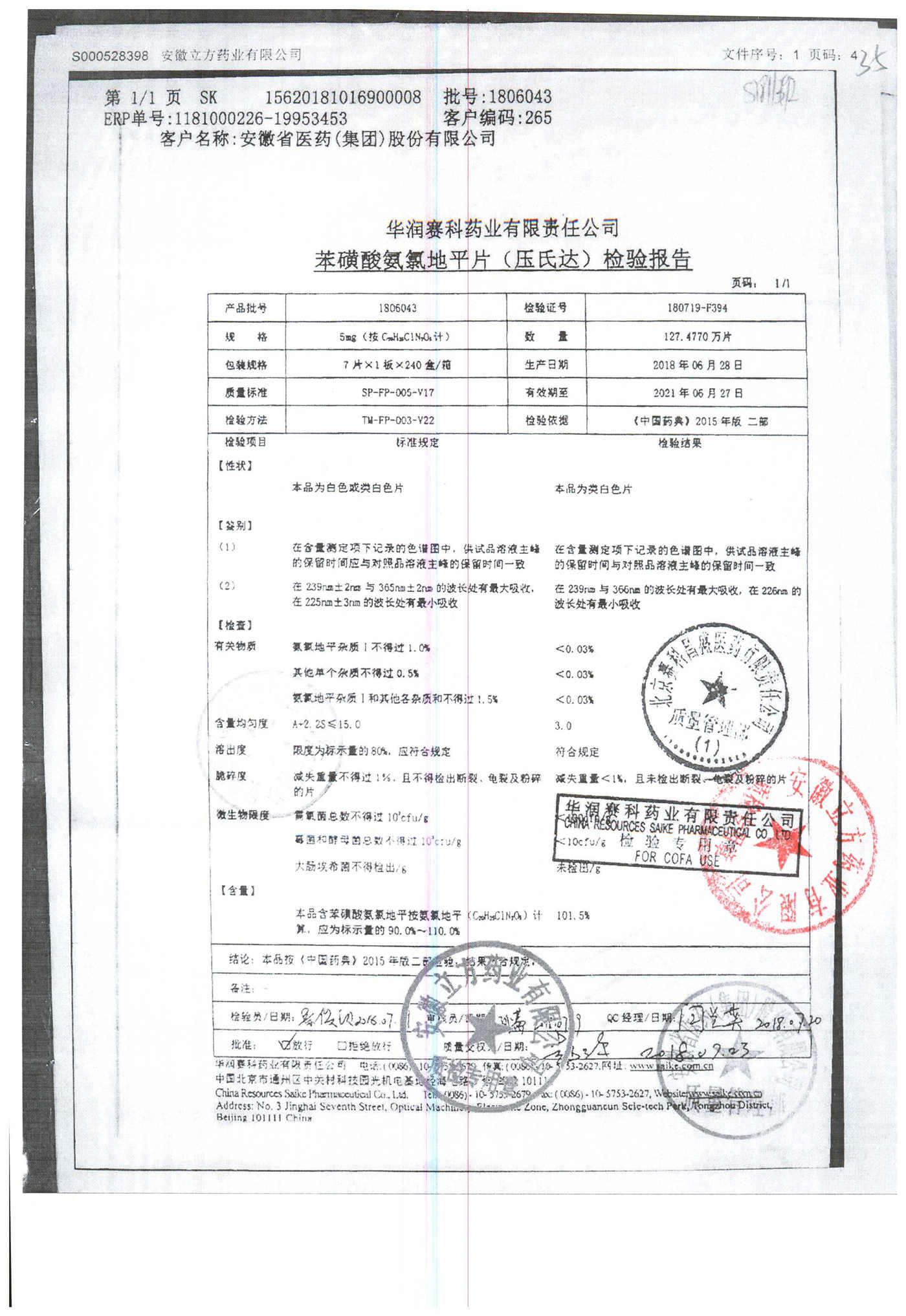 苯磺酸氨氯地平片 | 5mg*7片 | 1805016 | 查看详情 |