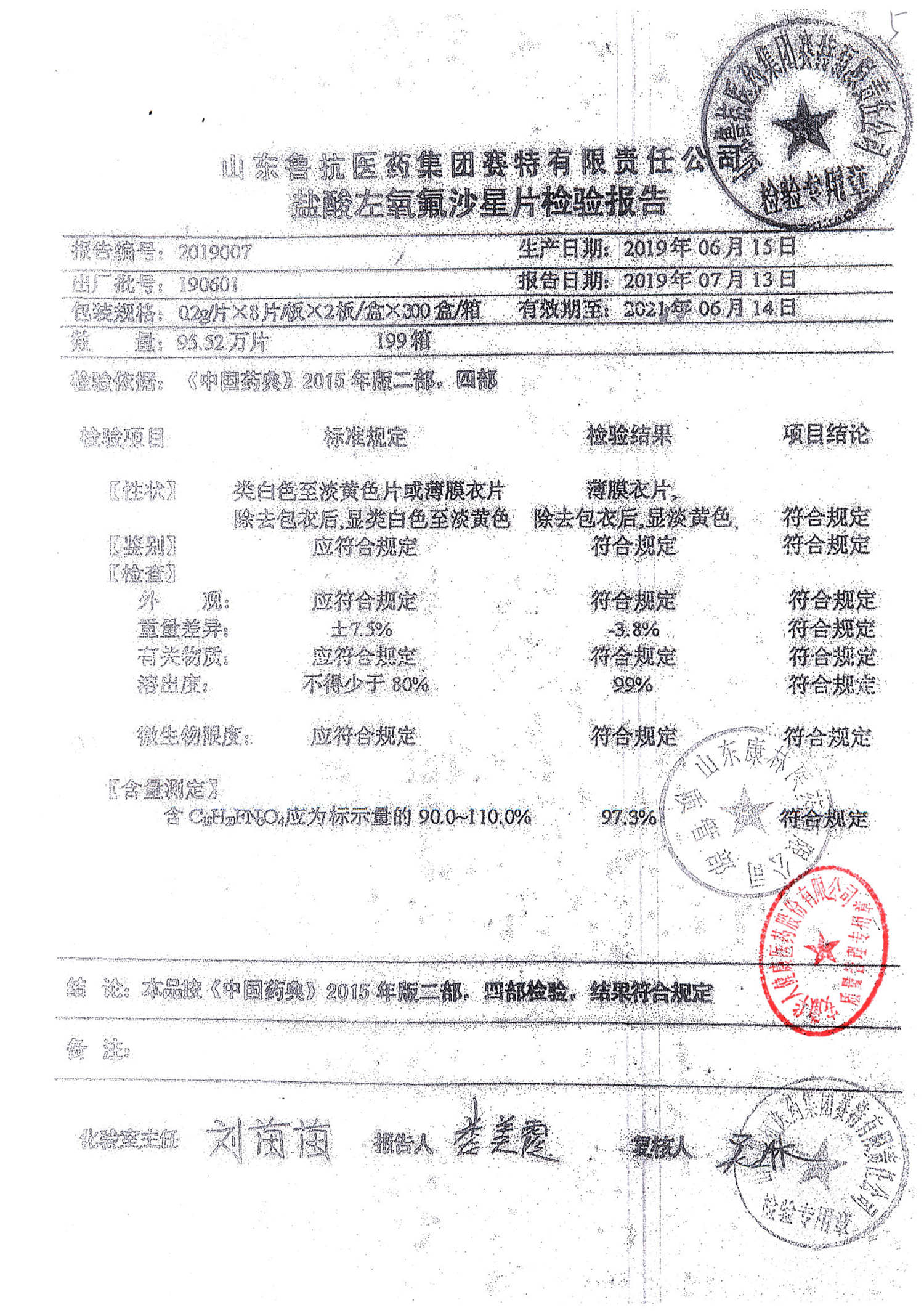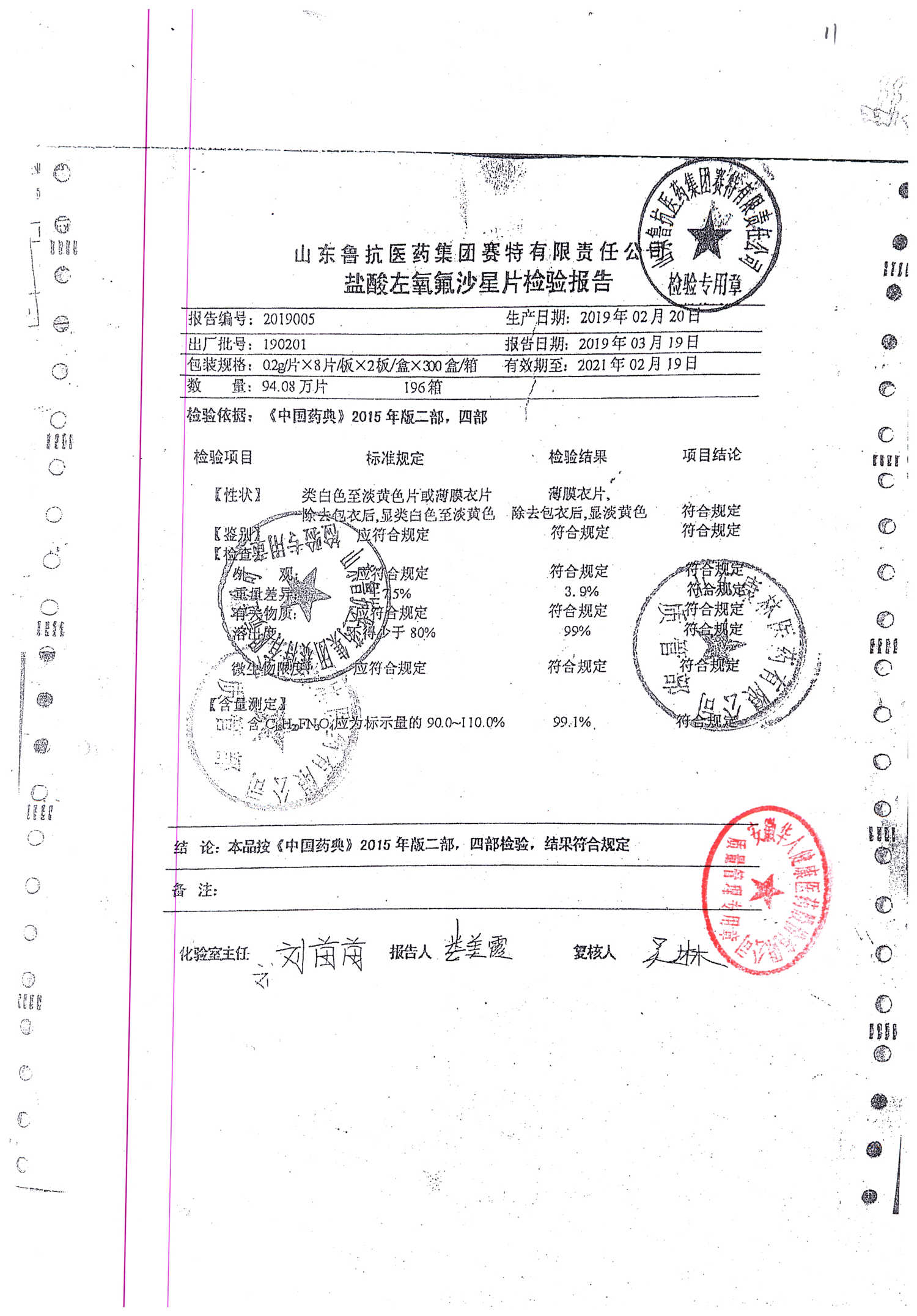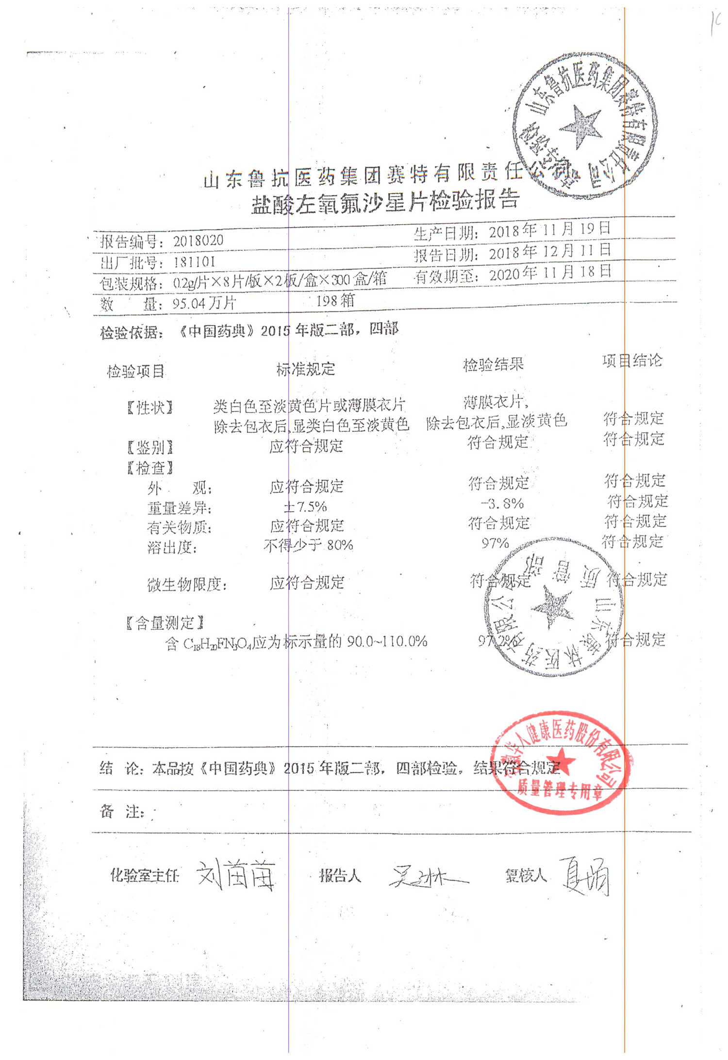 盐酸左氧氟沙星片 | 0.2g*16s | 190803 | 查看详情 |