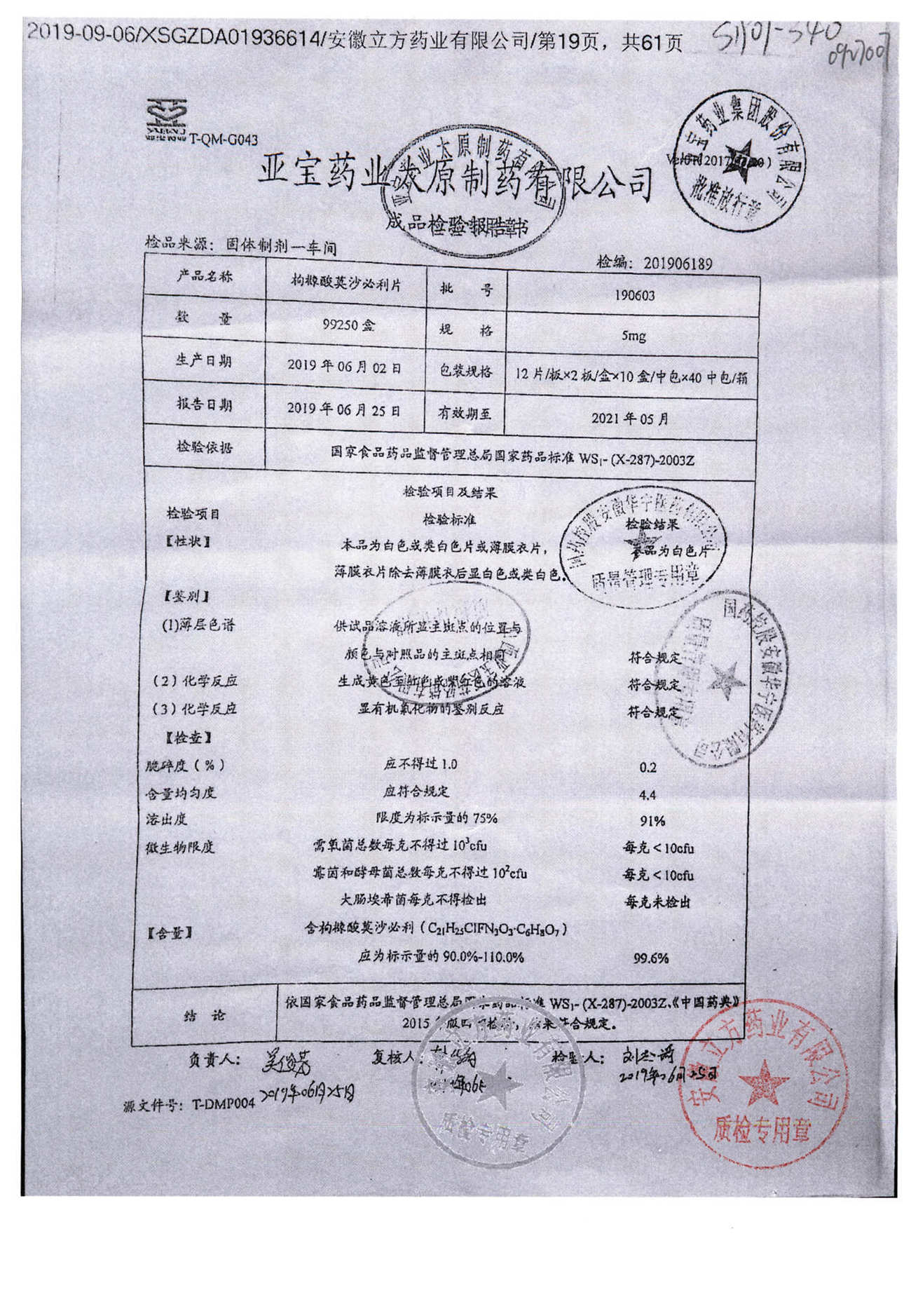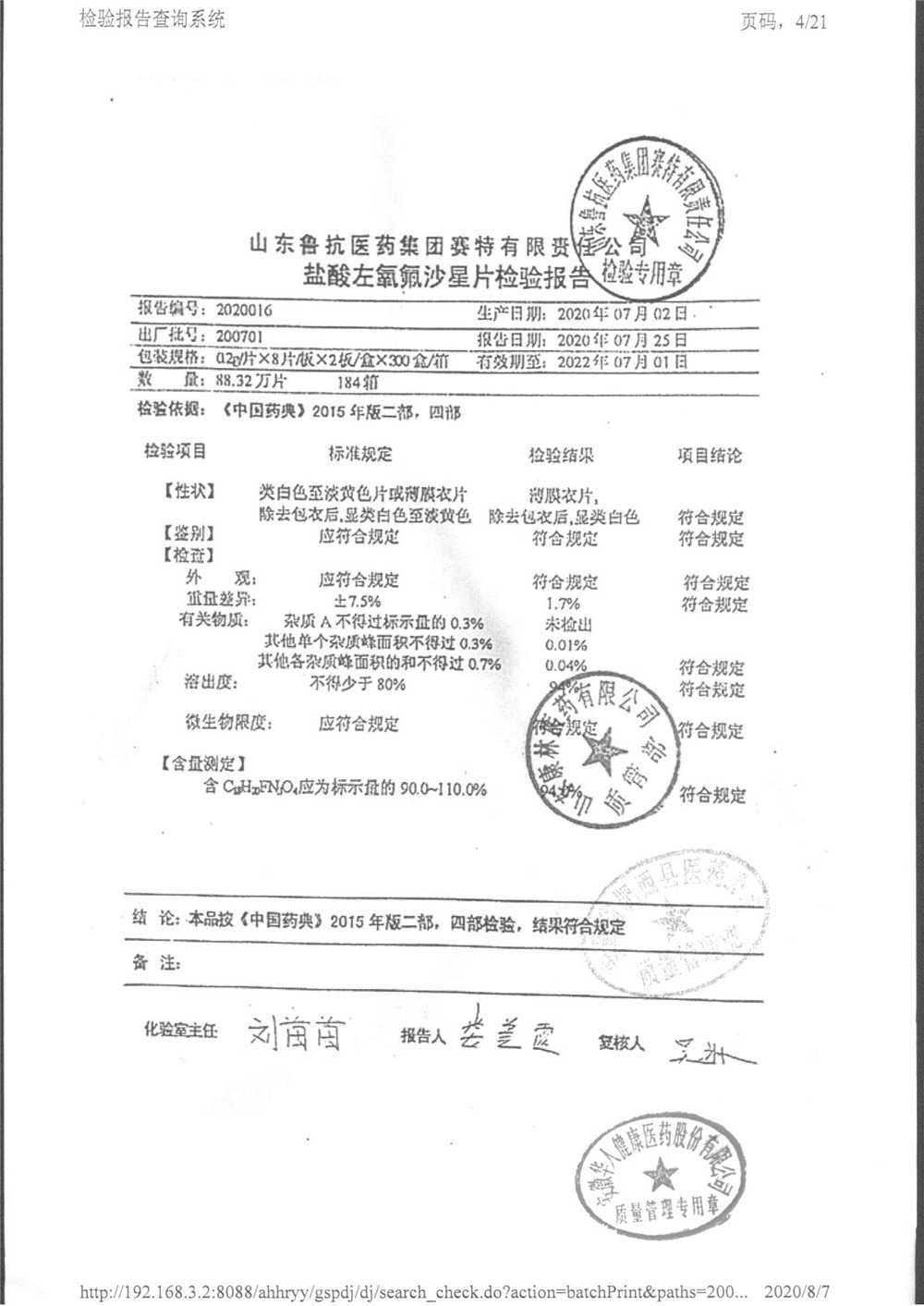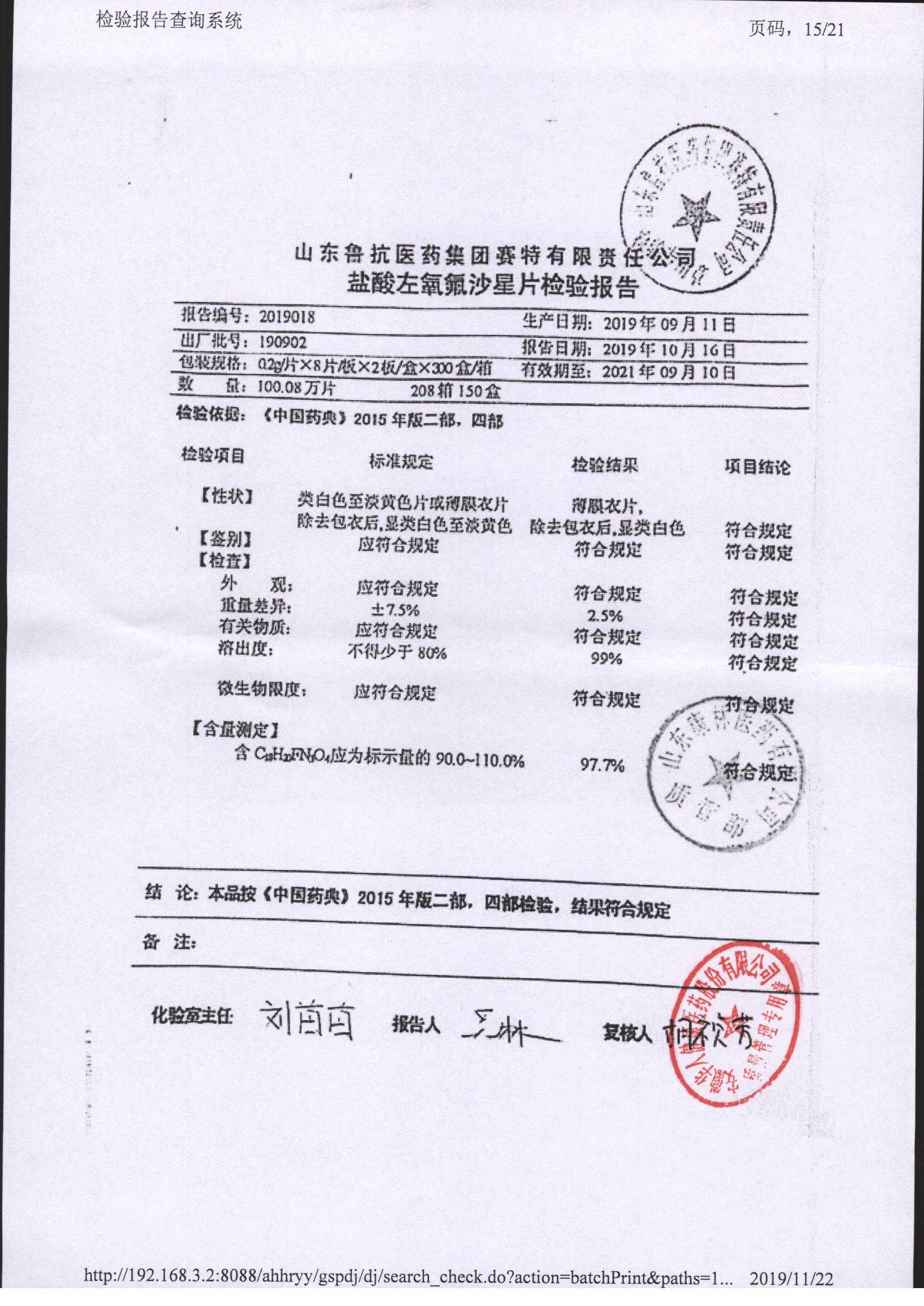 盐酸左氧氟沙星片 | 0.2g*16s | 190803 | 查看详情 |