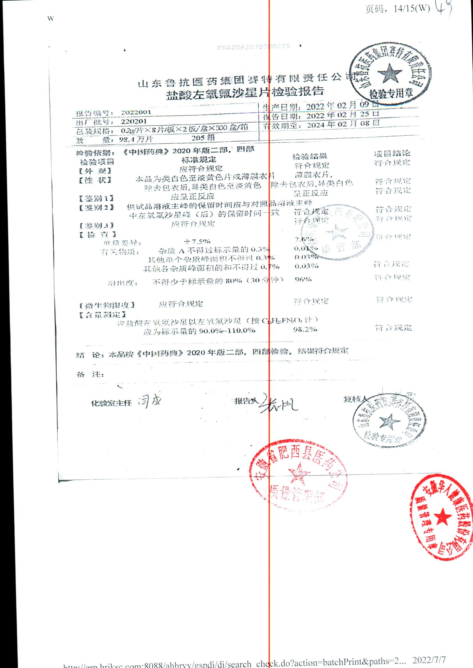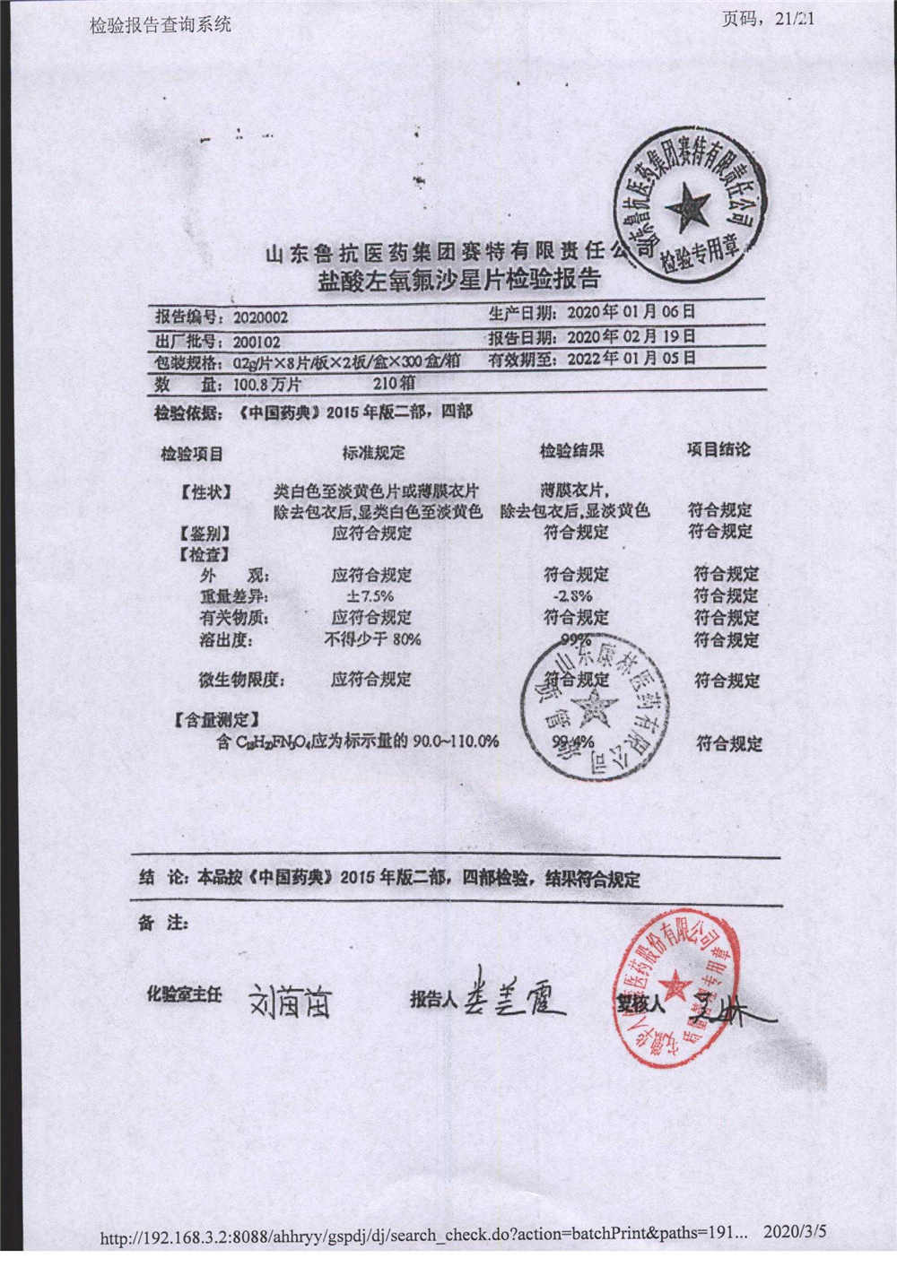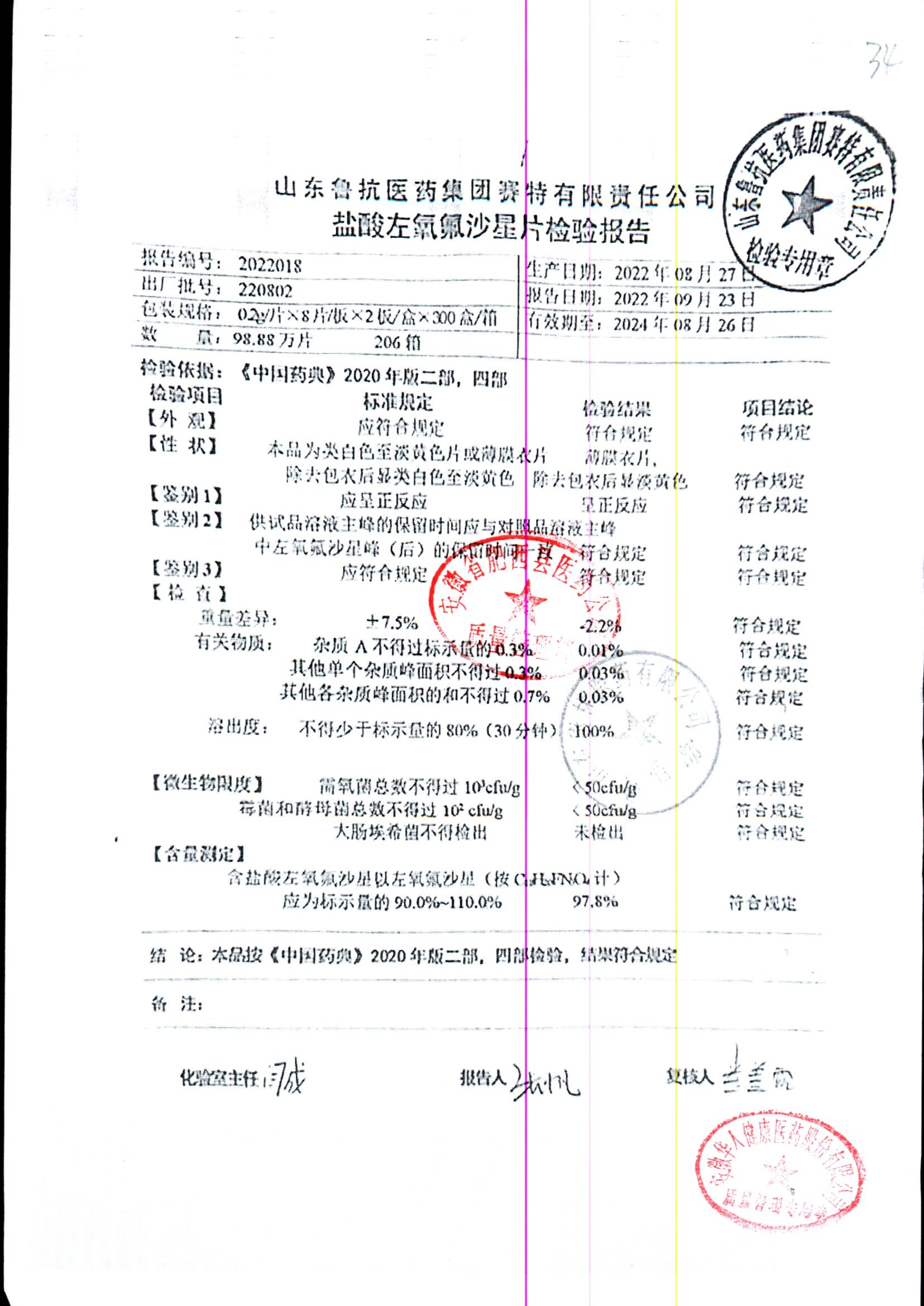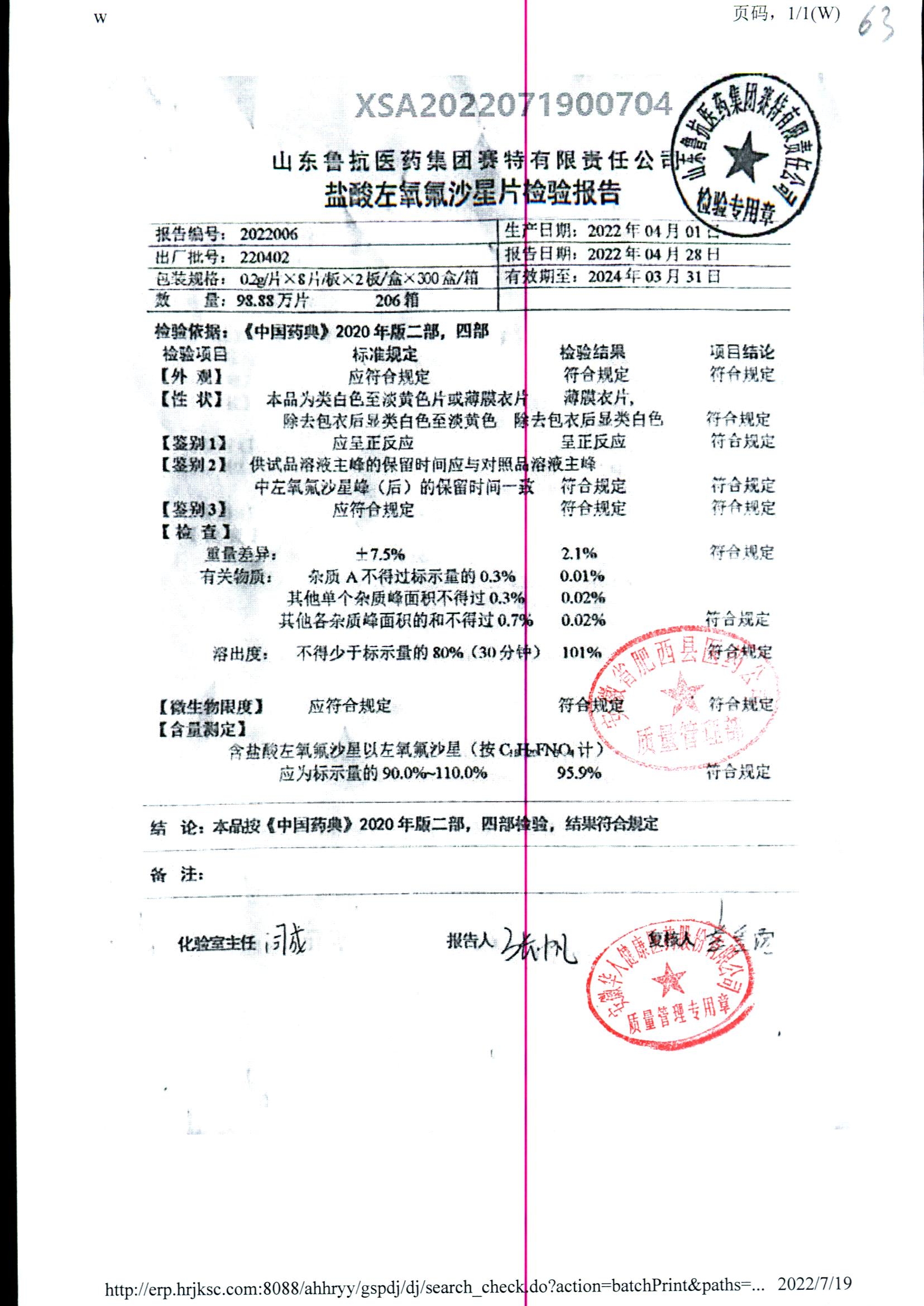 盐酸左氧氟沙星片 | 0.2g*16s | 210701 | 查看详情 |