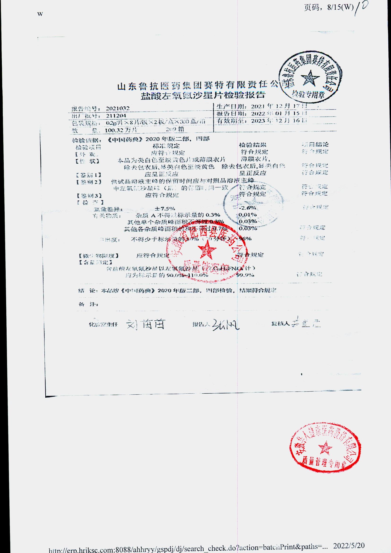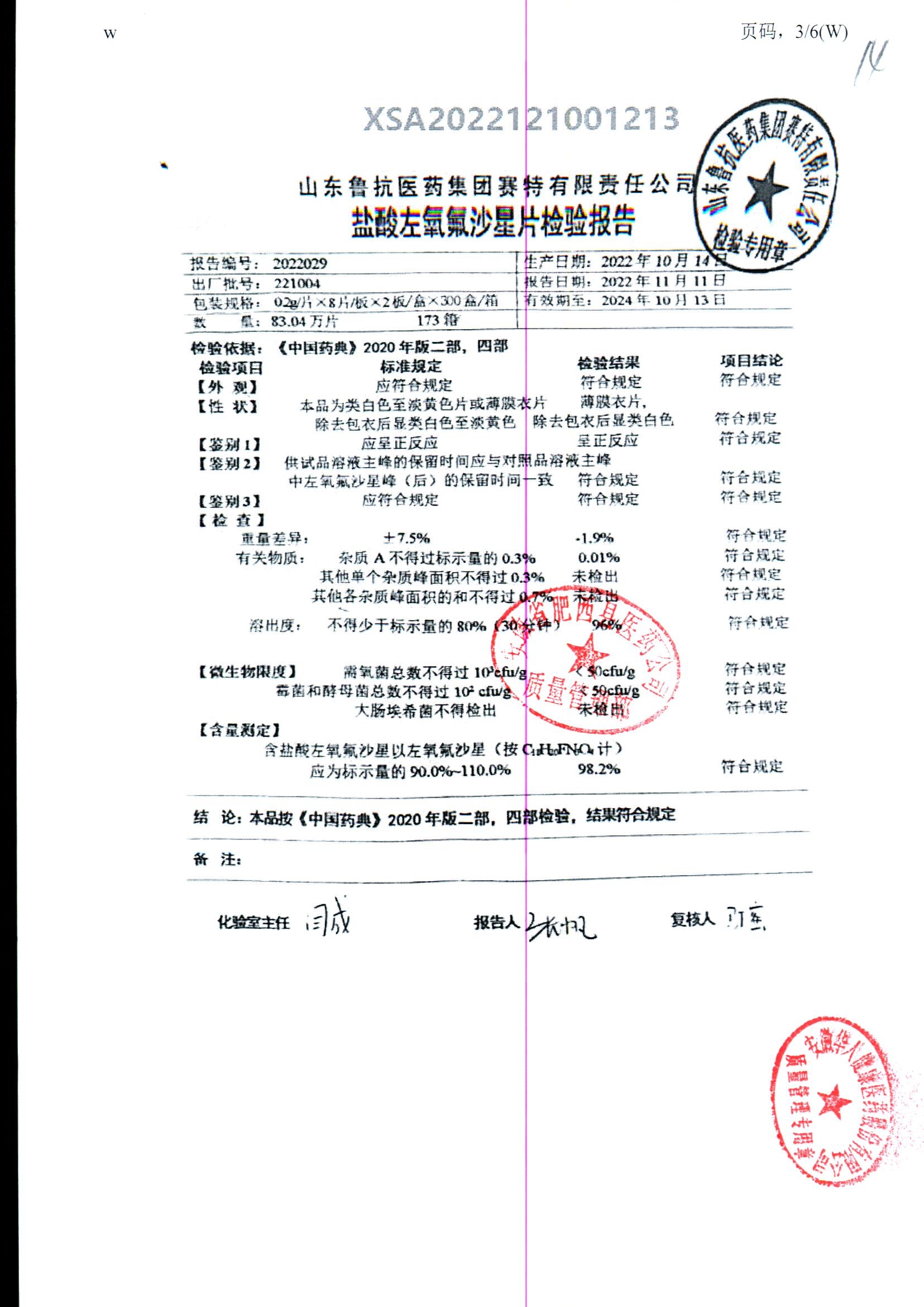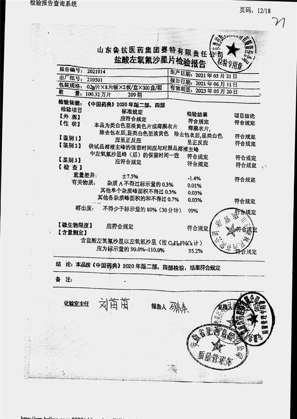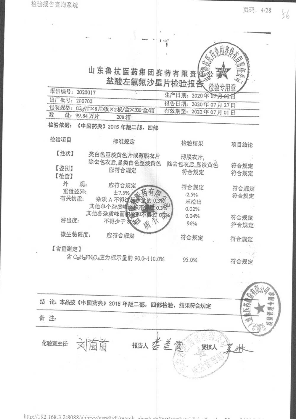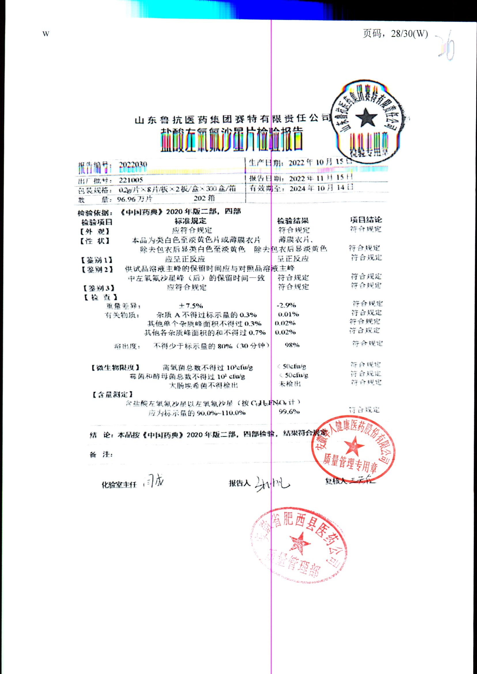 盐酸左氧氟沙星片 | 0.2g*16s | 210701 | 查看详情 |