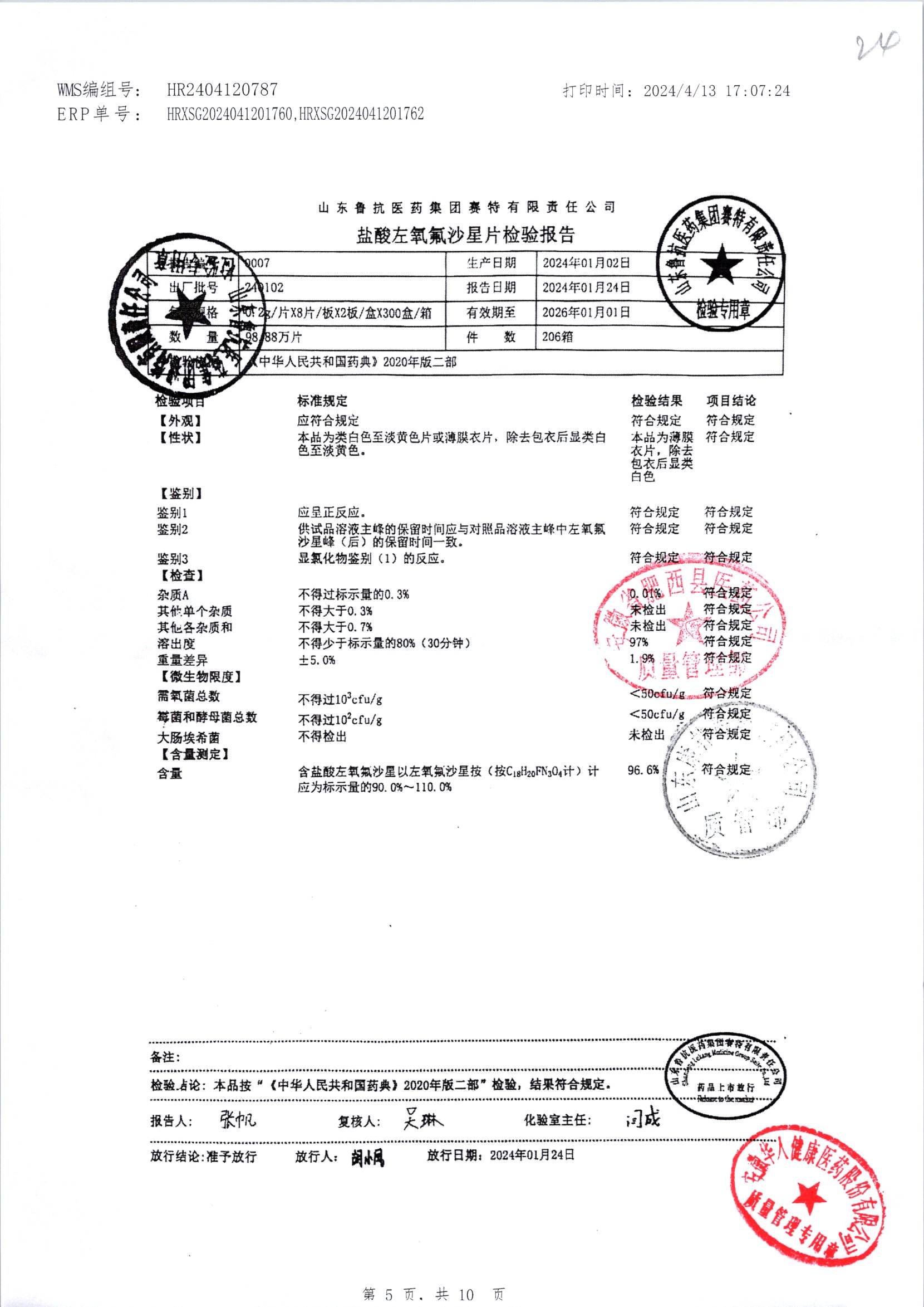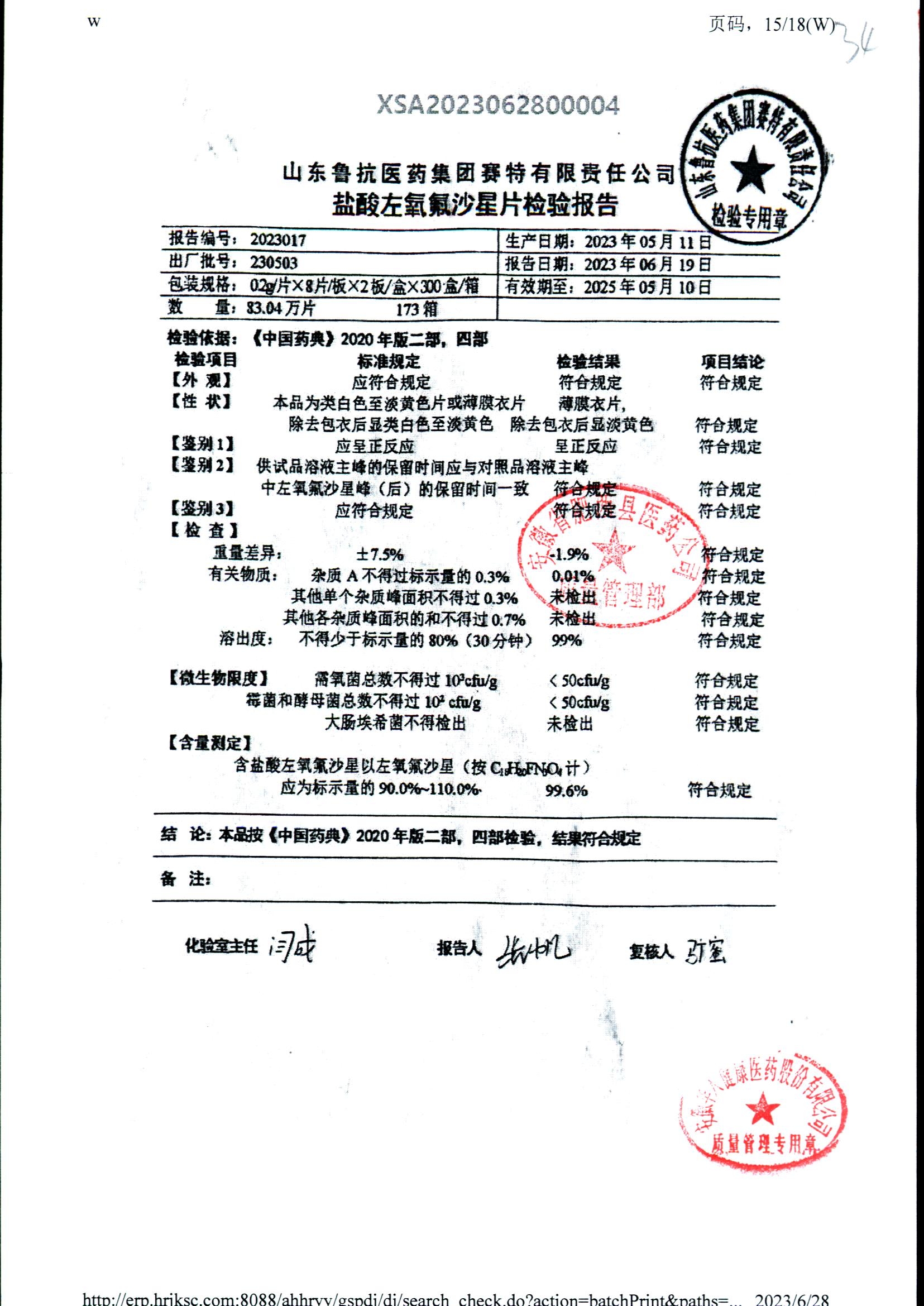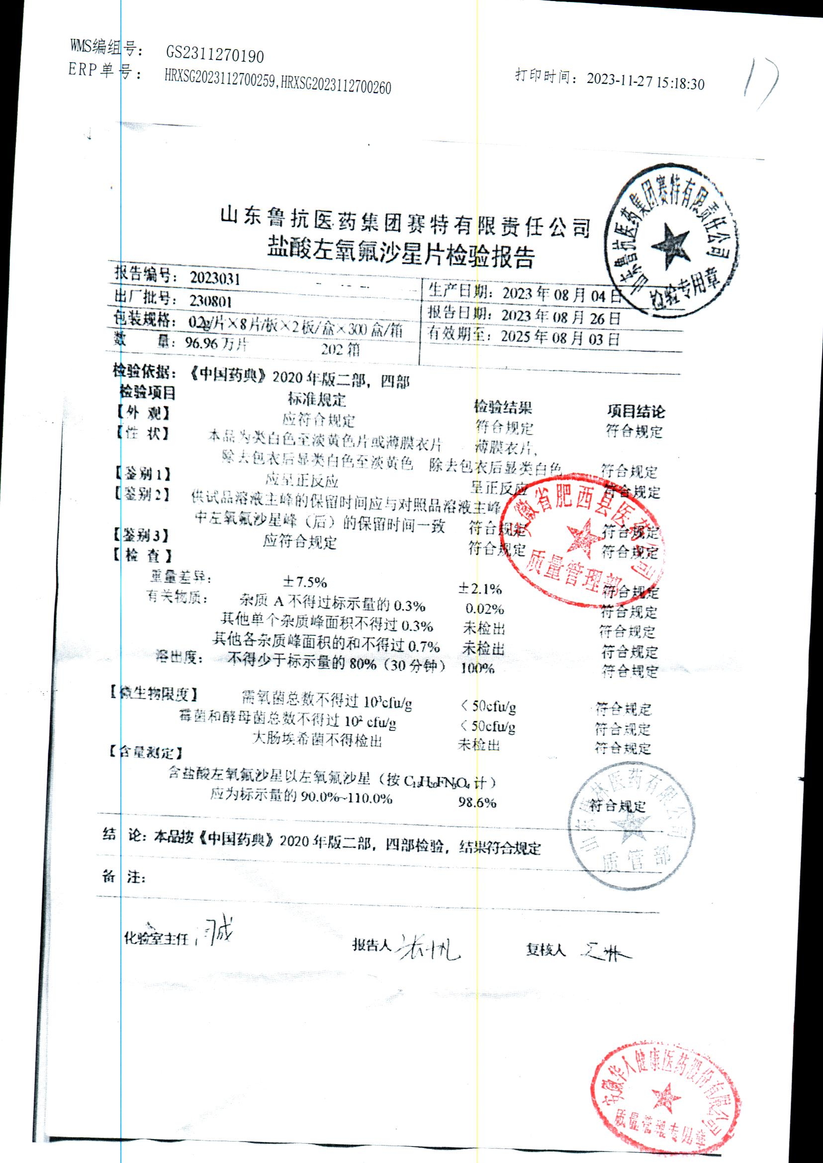 盐酸左氧氟沙星片 | 0.2g*16s | 230801 | 查看详情 |