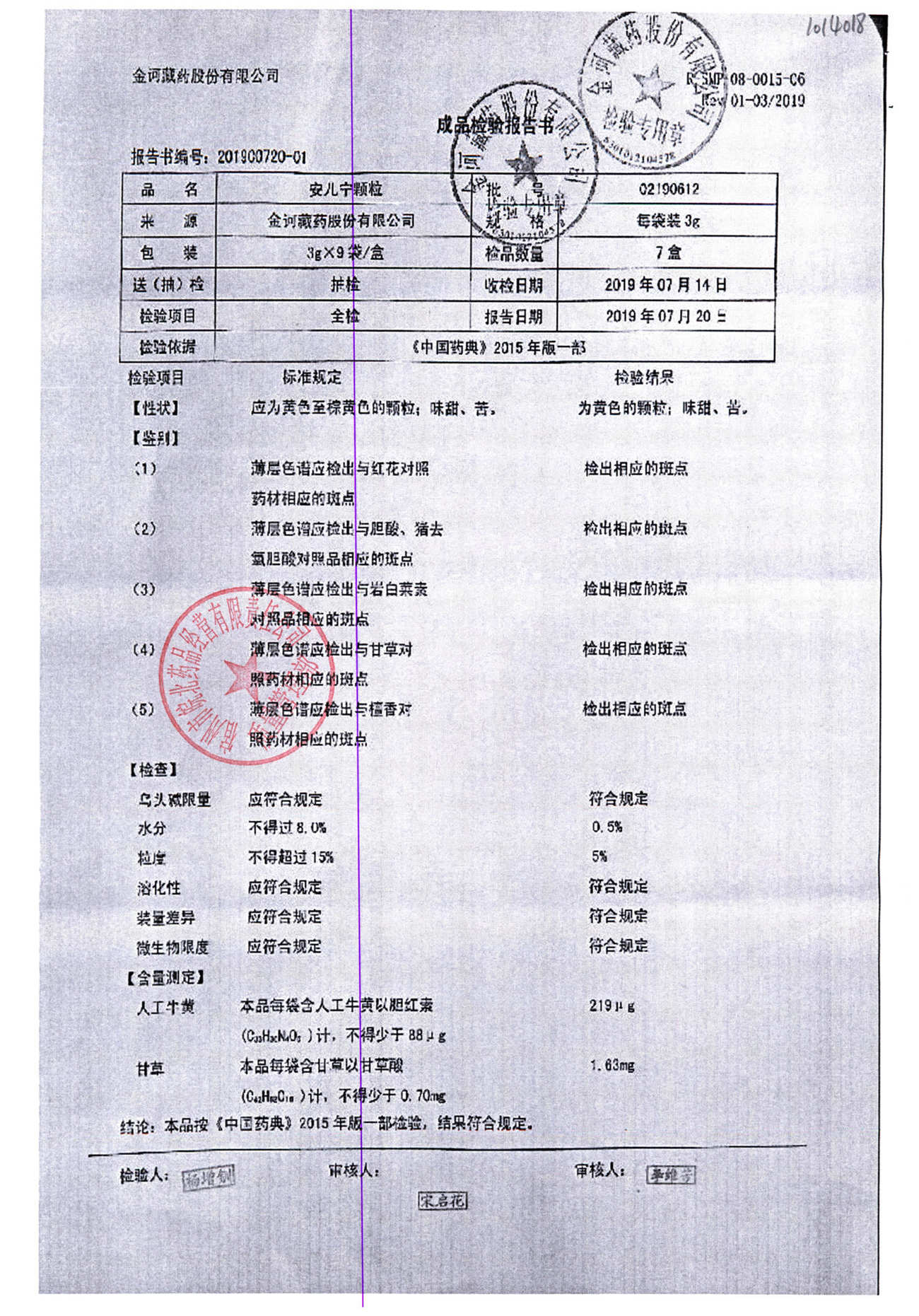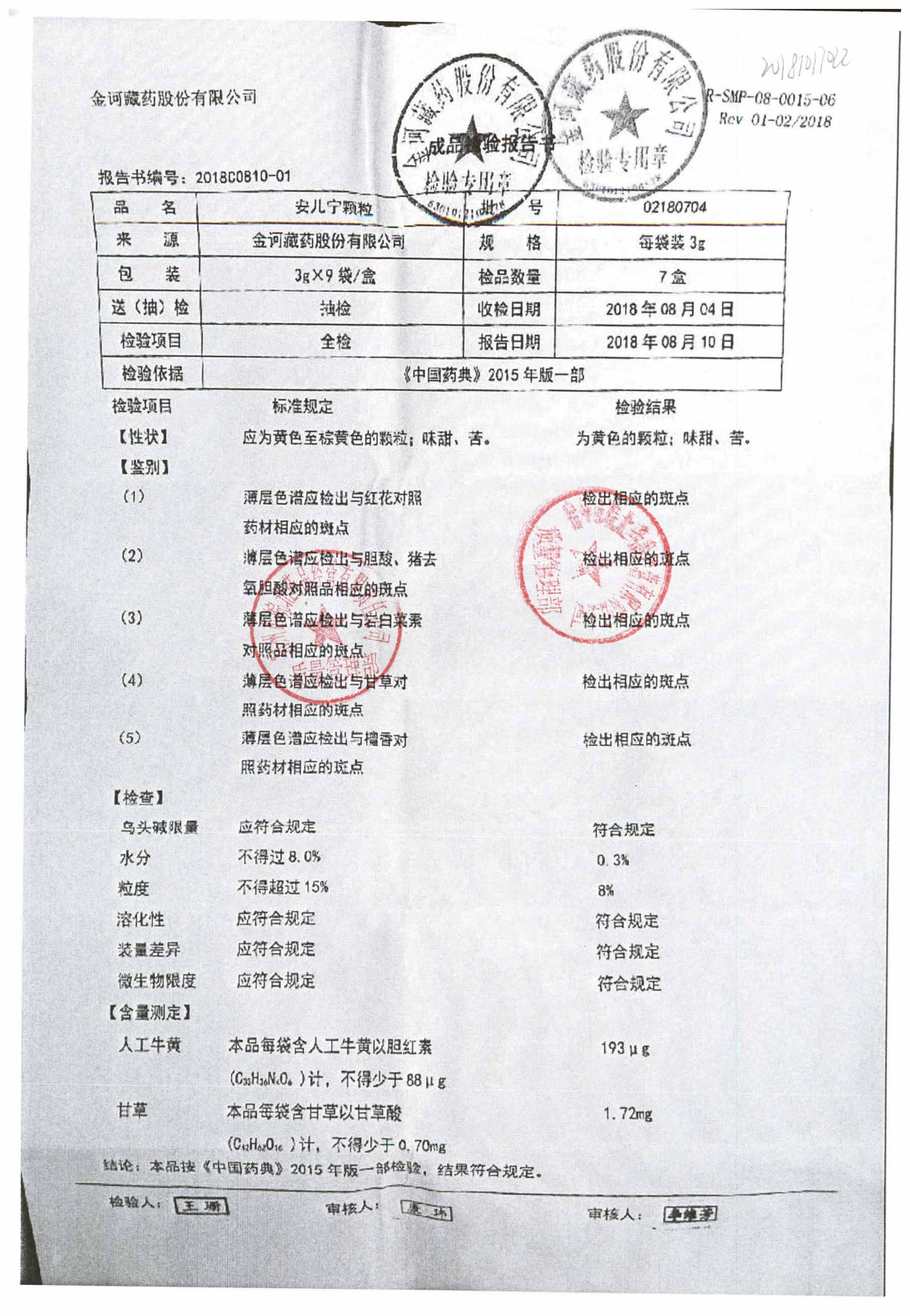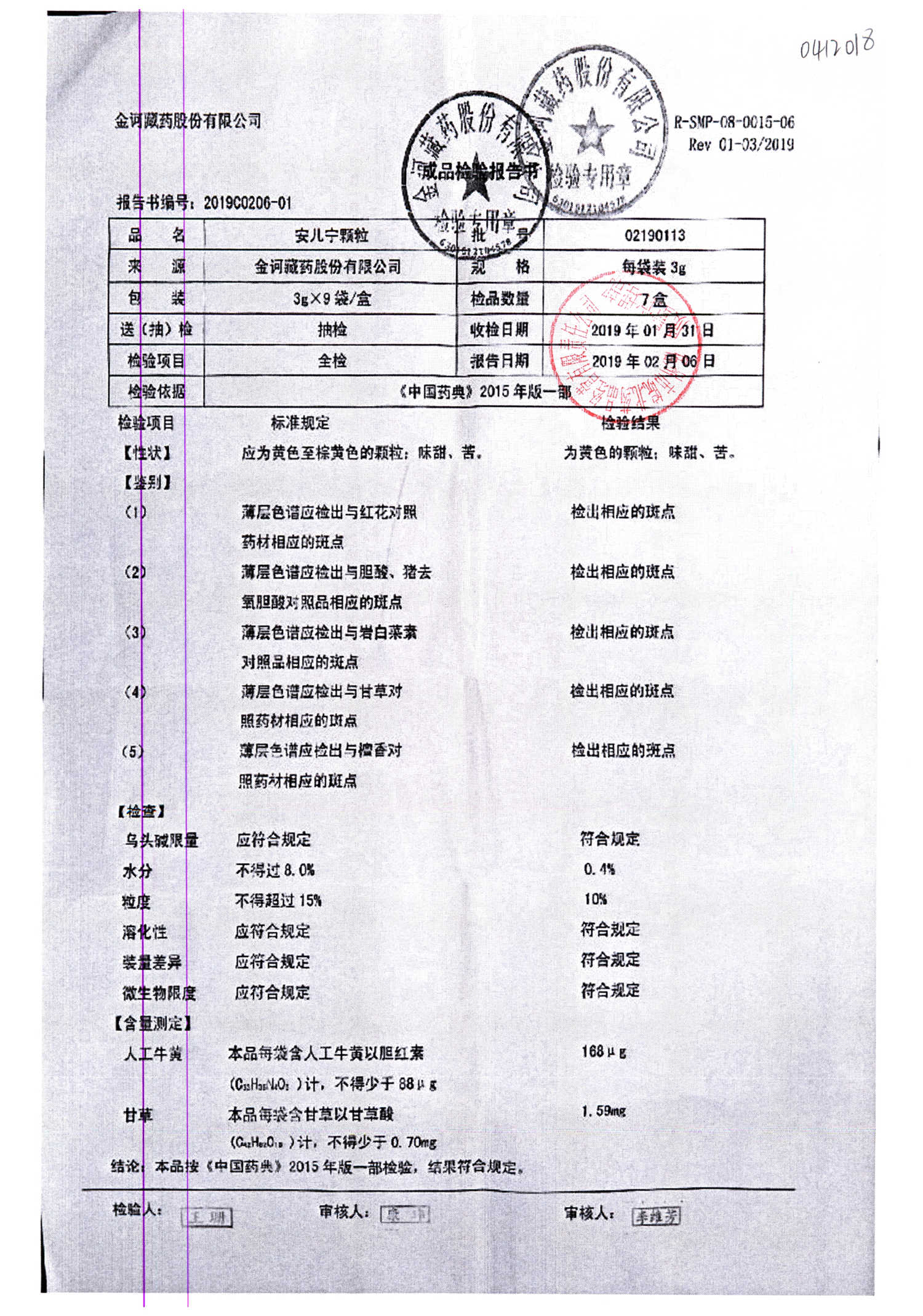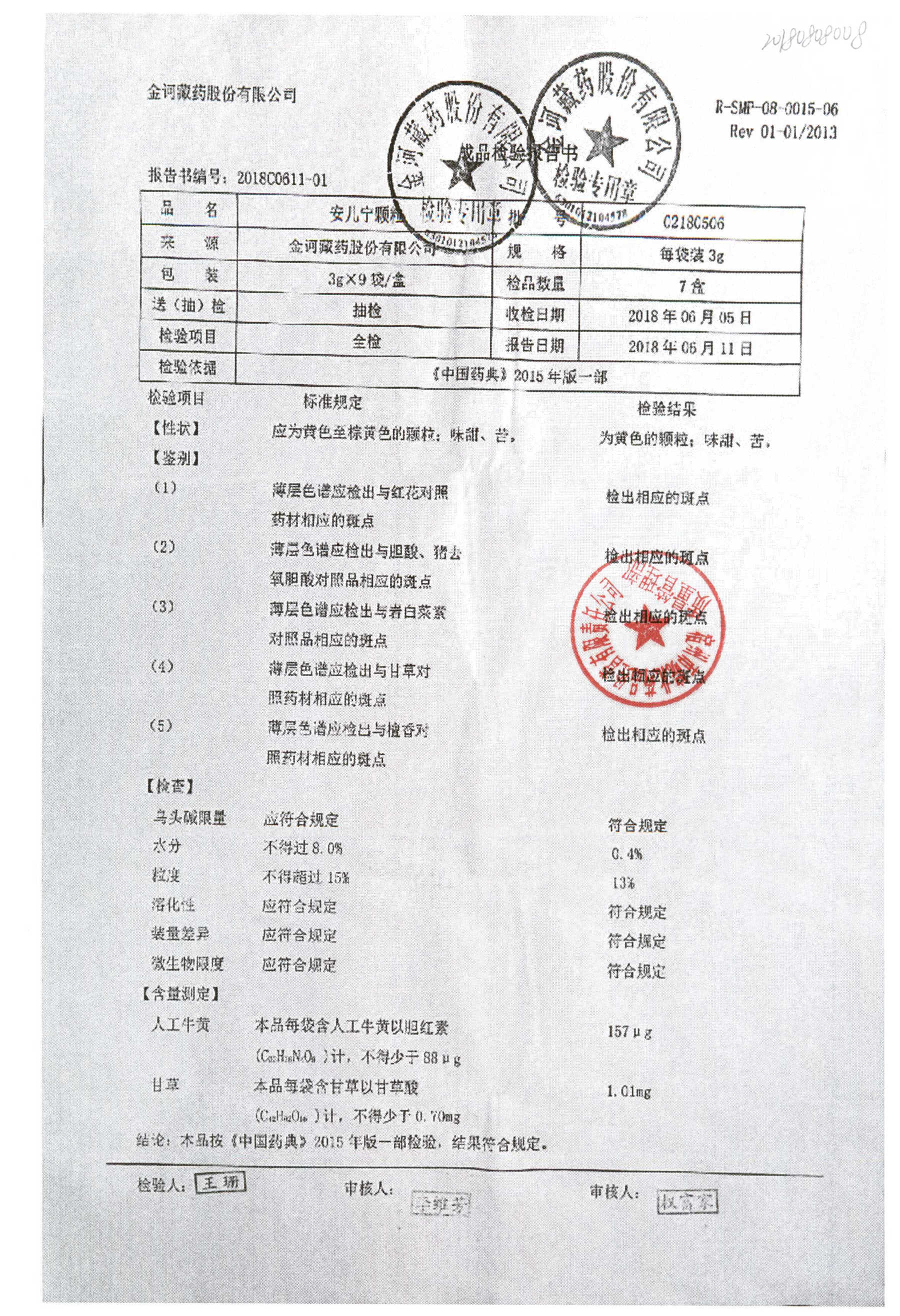 药检报告