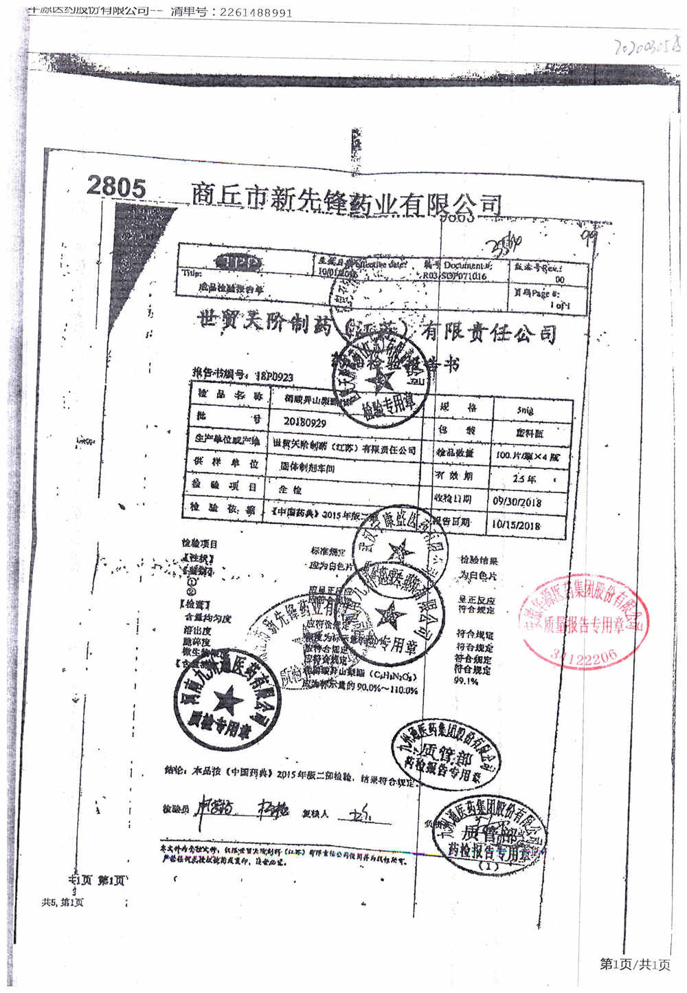 硝酸异山梨酯片 | 5mg*100片 | 20180929 | 查看详情 |