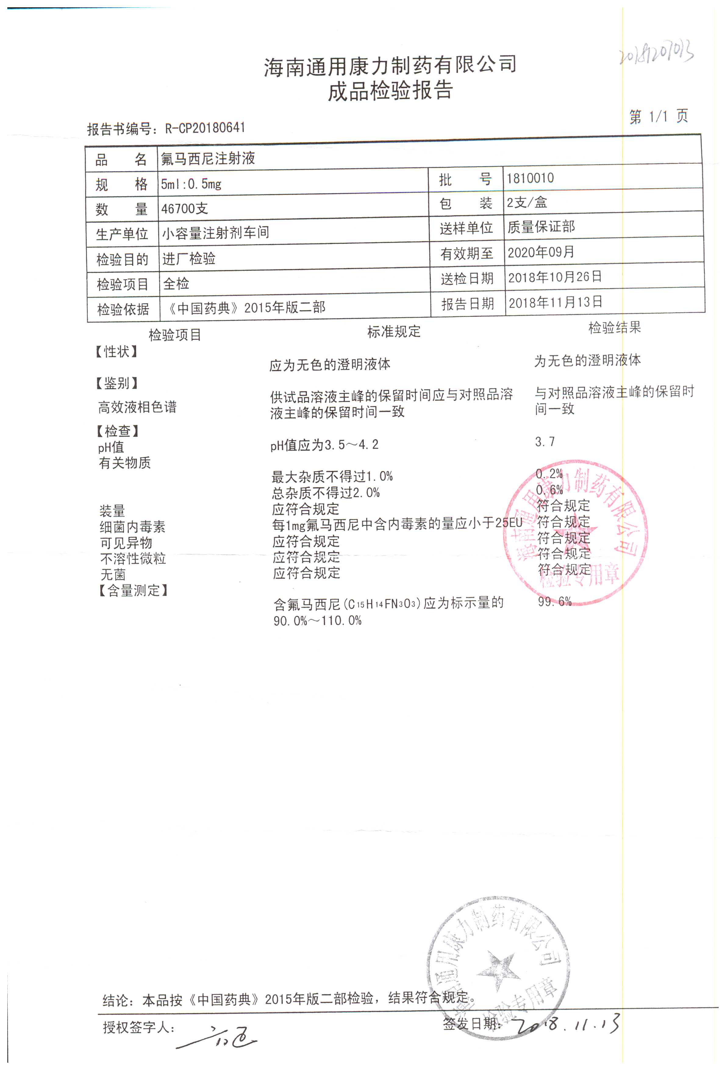 氟马西尼注射液 | 5ml:0.5mg | 1810010 | 查看详情 |