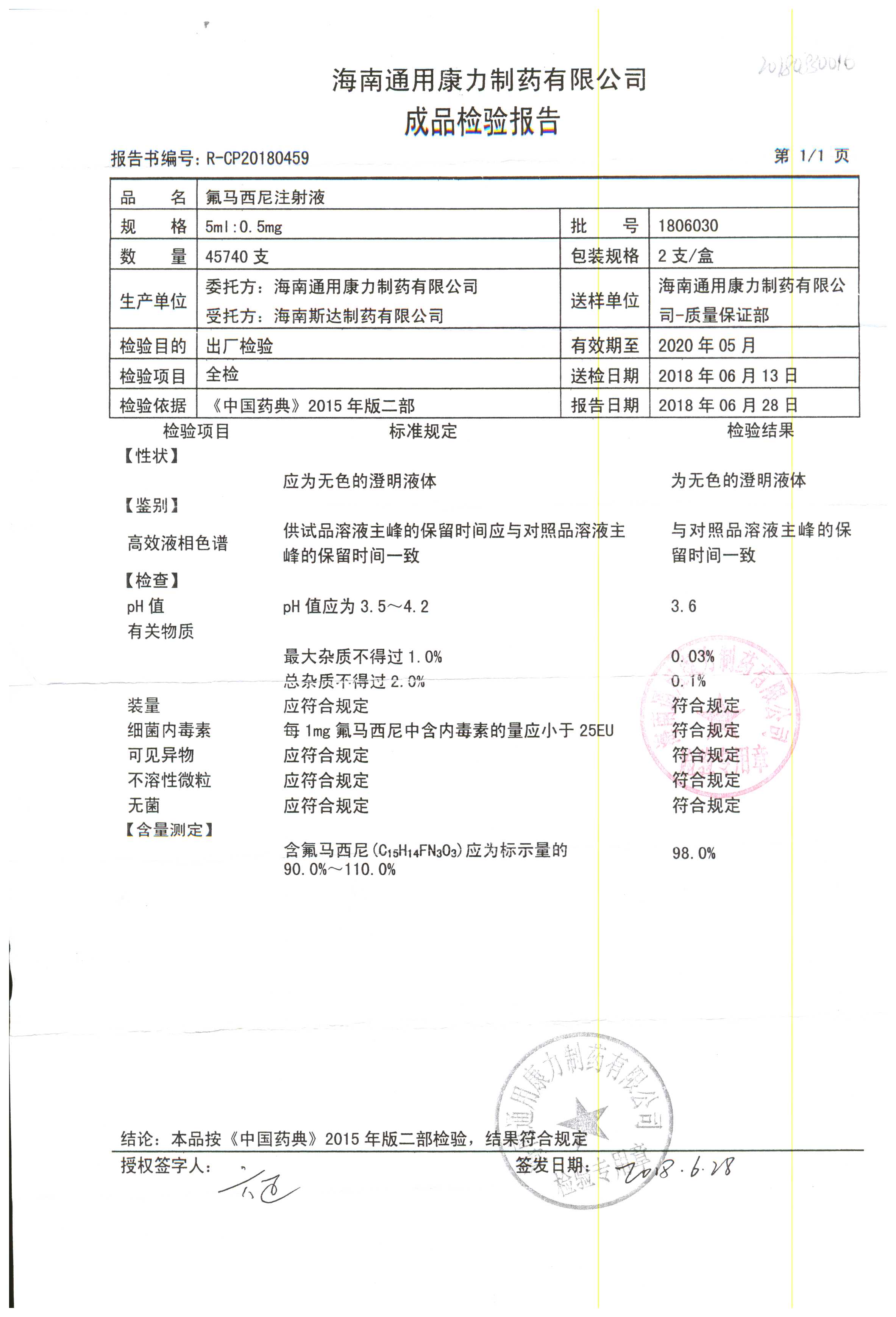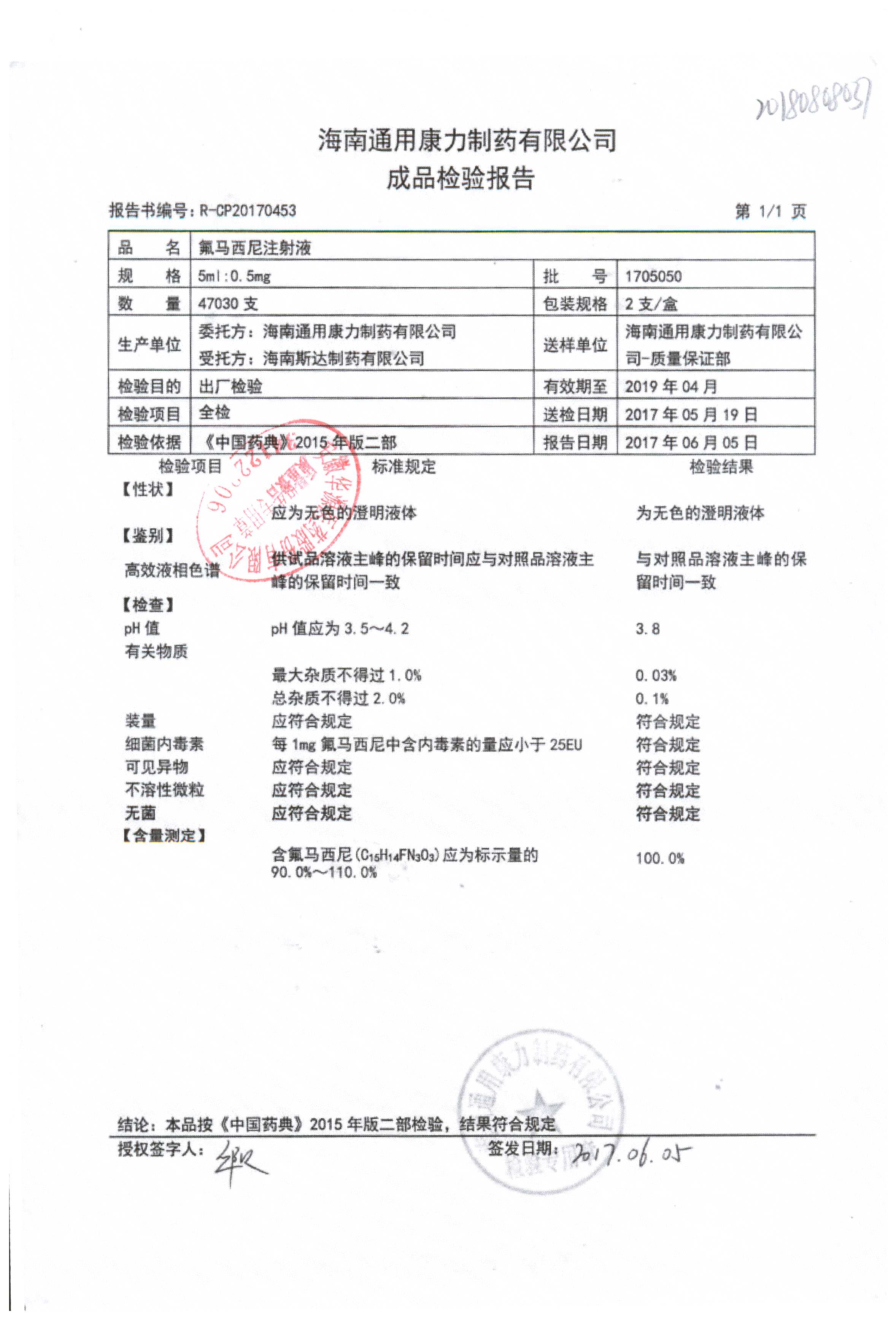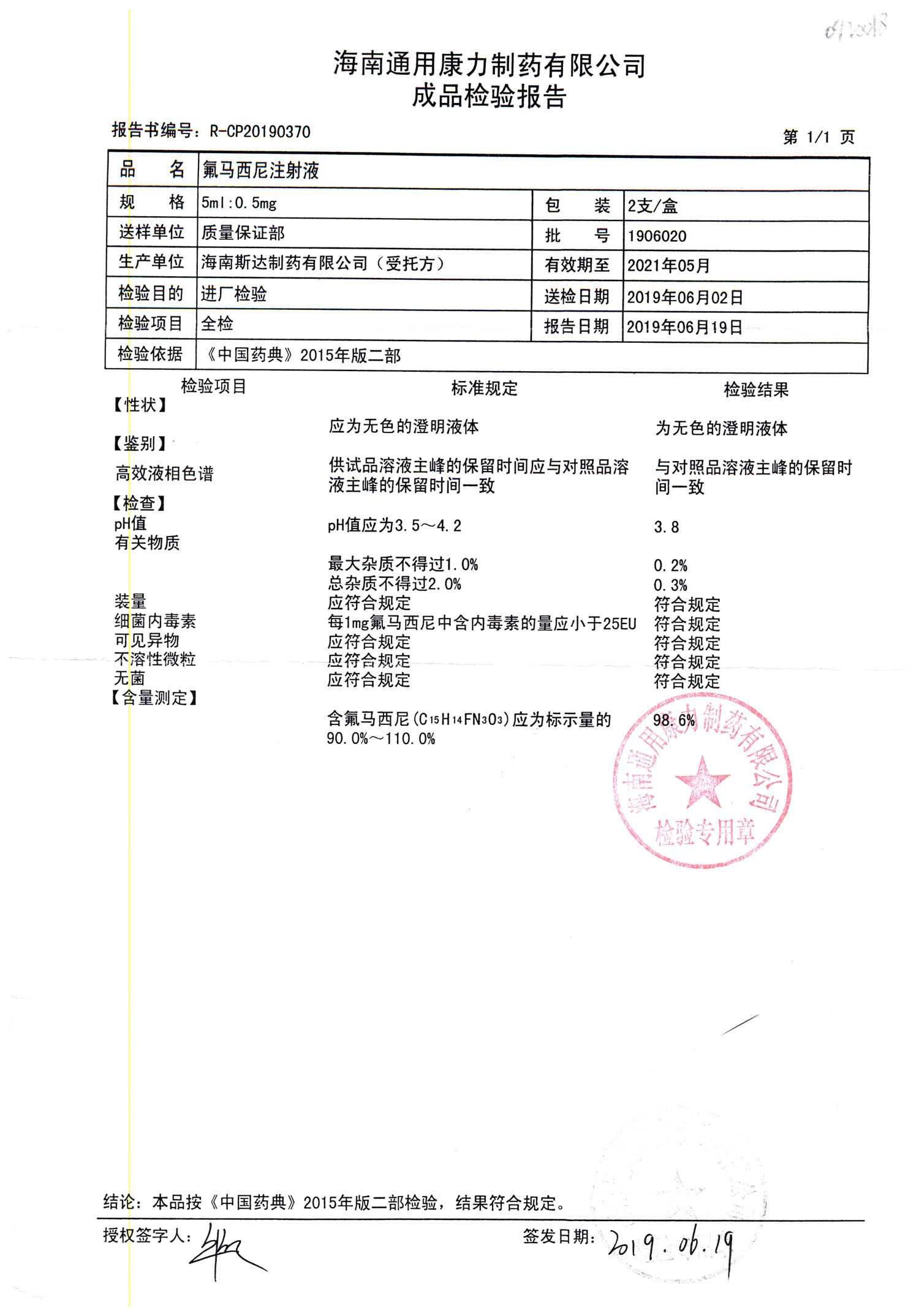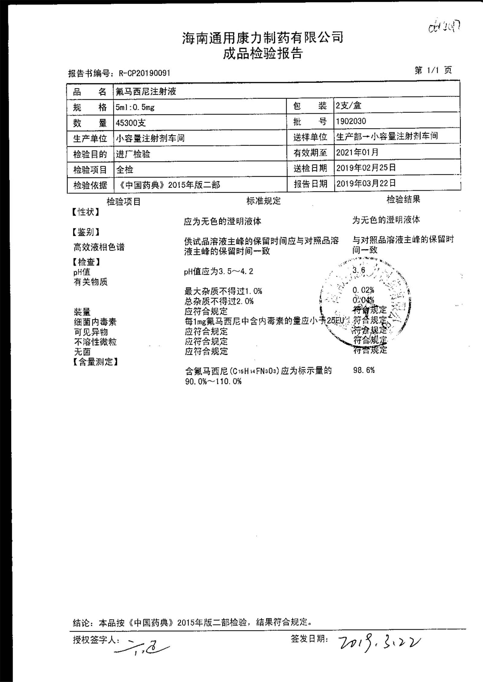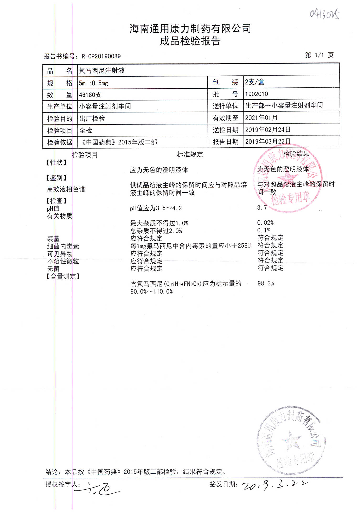 氟马西尼注射液 | 5ml:0.5mg | 1906020 | 查看详情 |