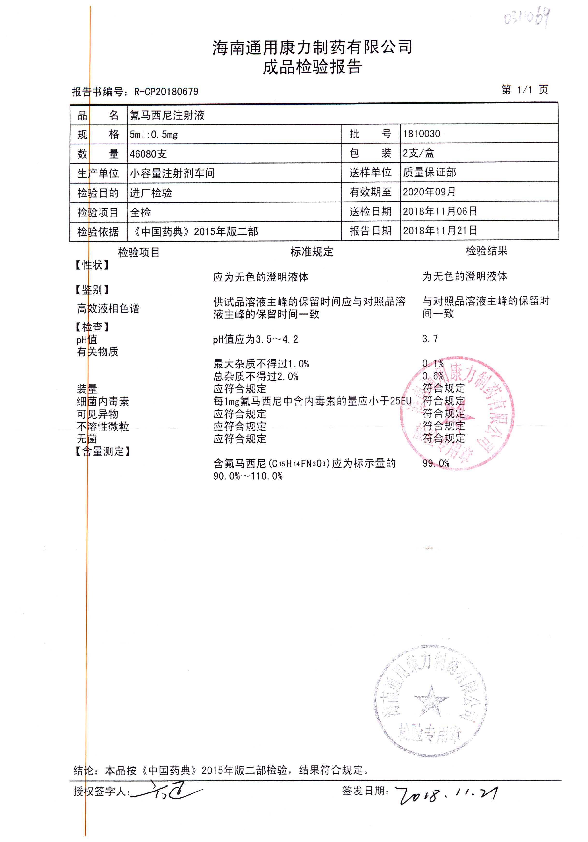 氟马西尼注射液 | 5ml:0.5mg | 1806030 | 查看详情 |