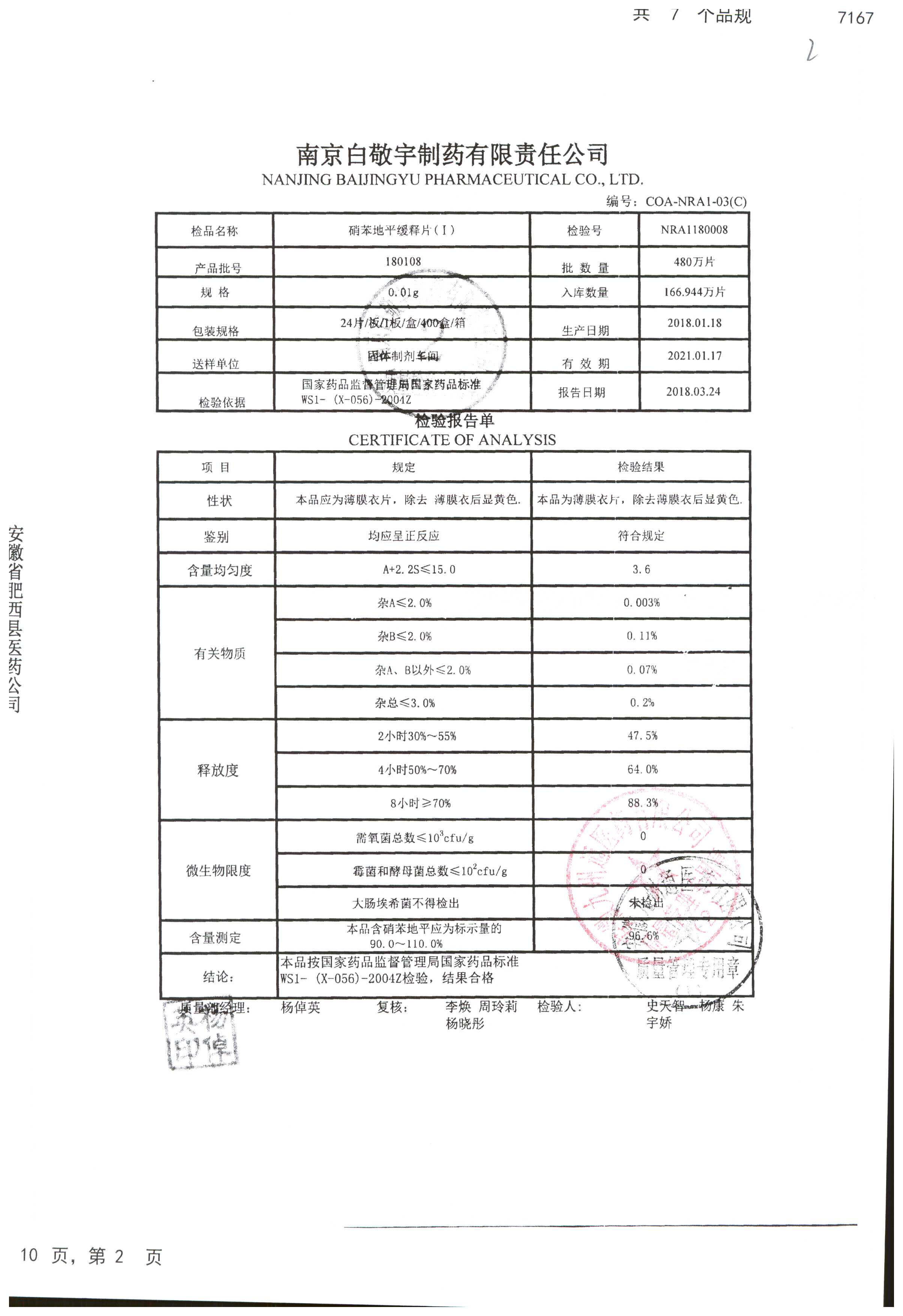 硝苯地平缓释片(I) | 0.01g*24片 | 180108 | 查看详情 |