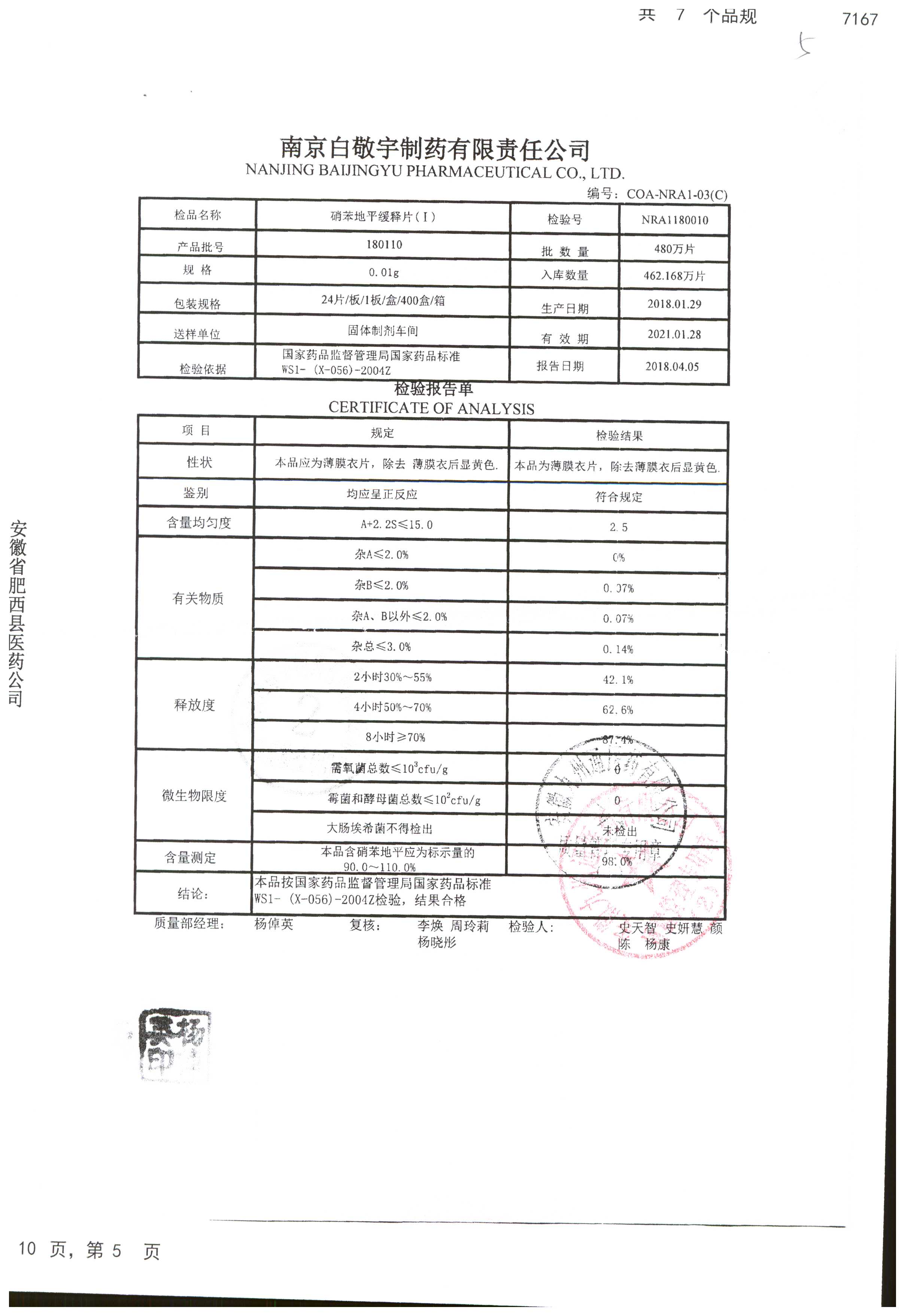 硝苯地平缓释片(I) | 0.01g*24片 | 180501 | 查看详情 |