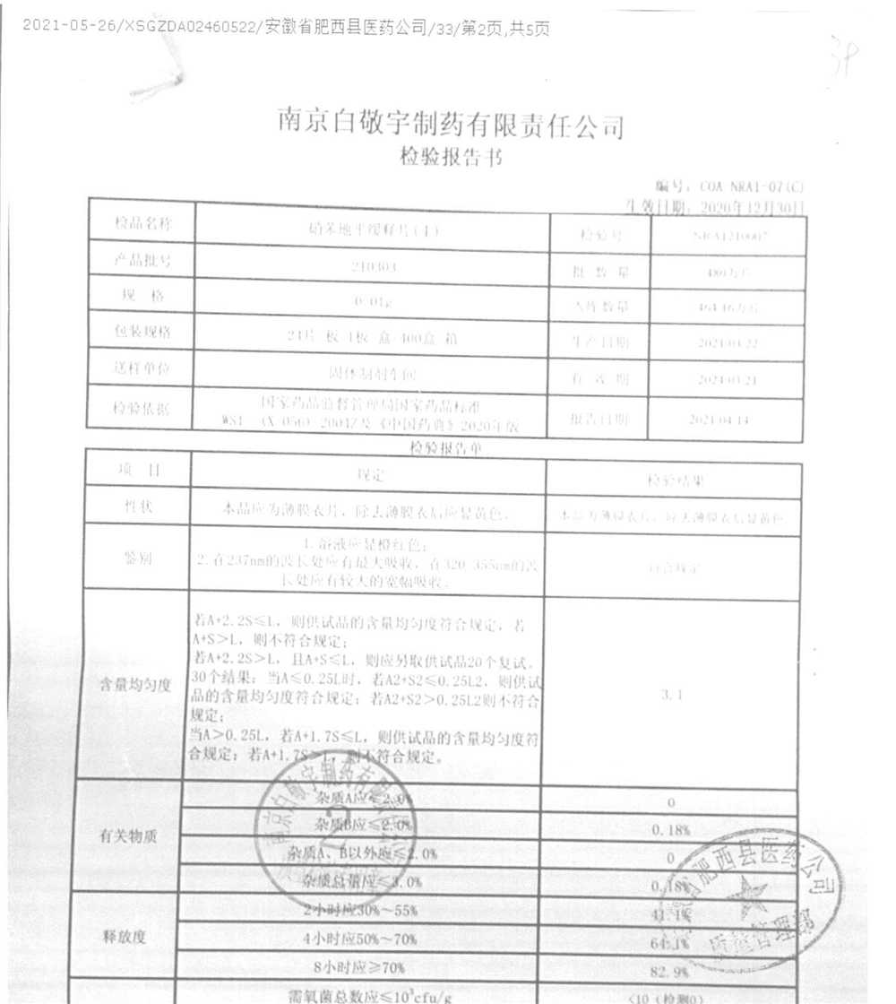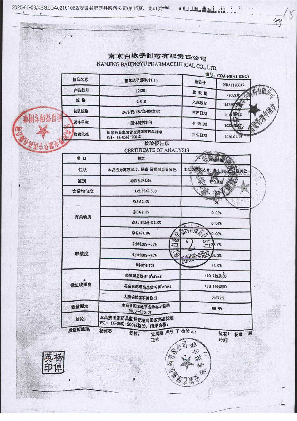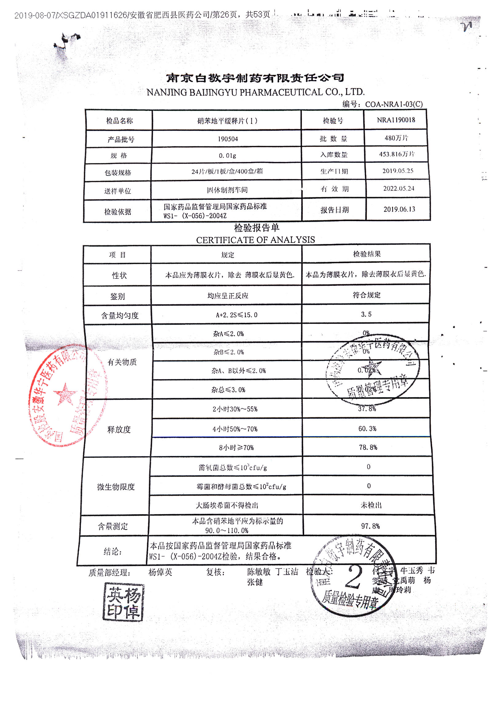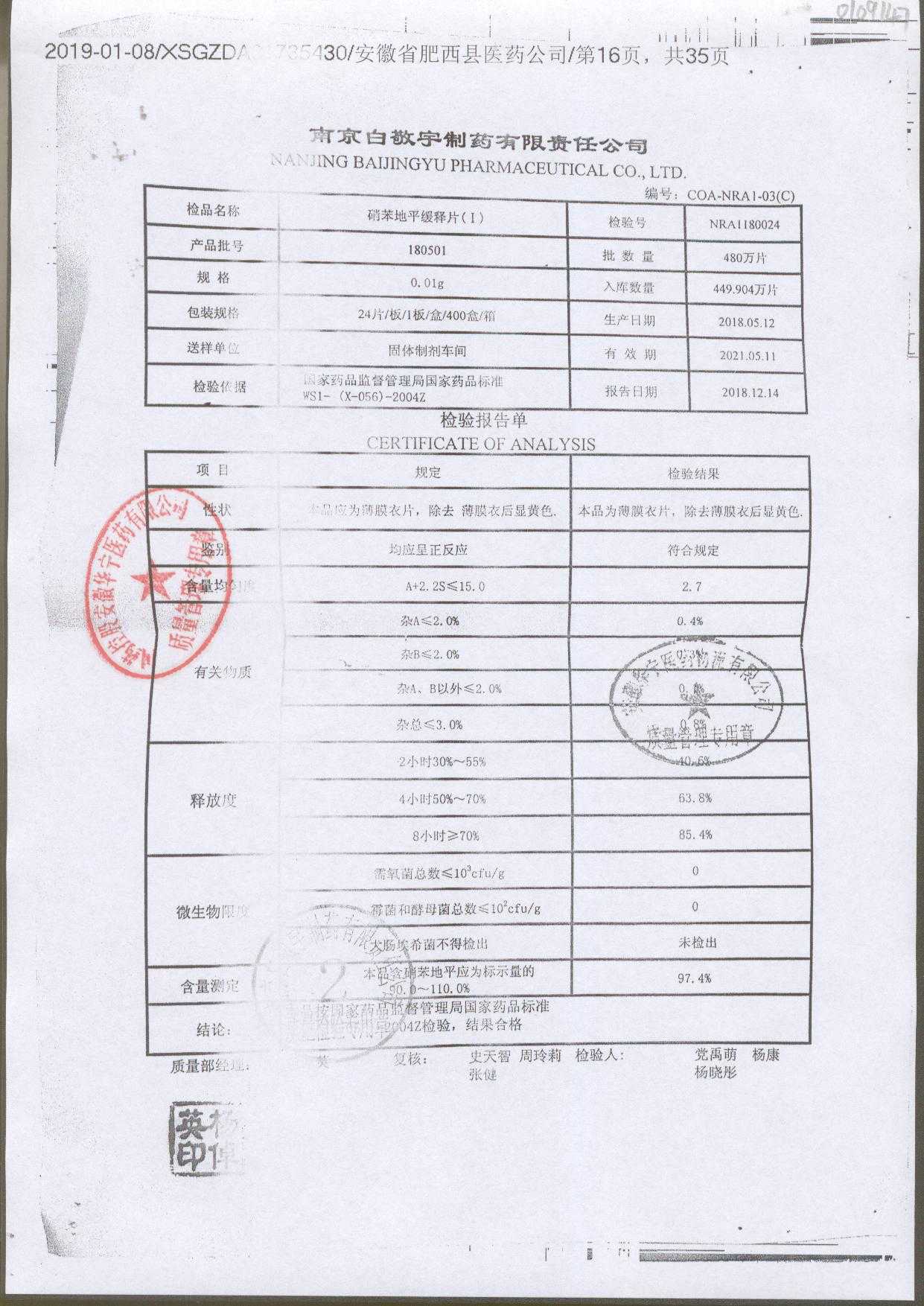 硝苯地平缓释片(I) | 0.01g*24片 | 190401 | 查看详情 |