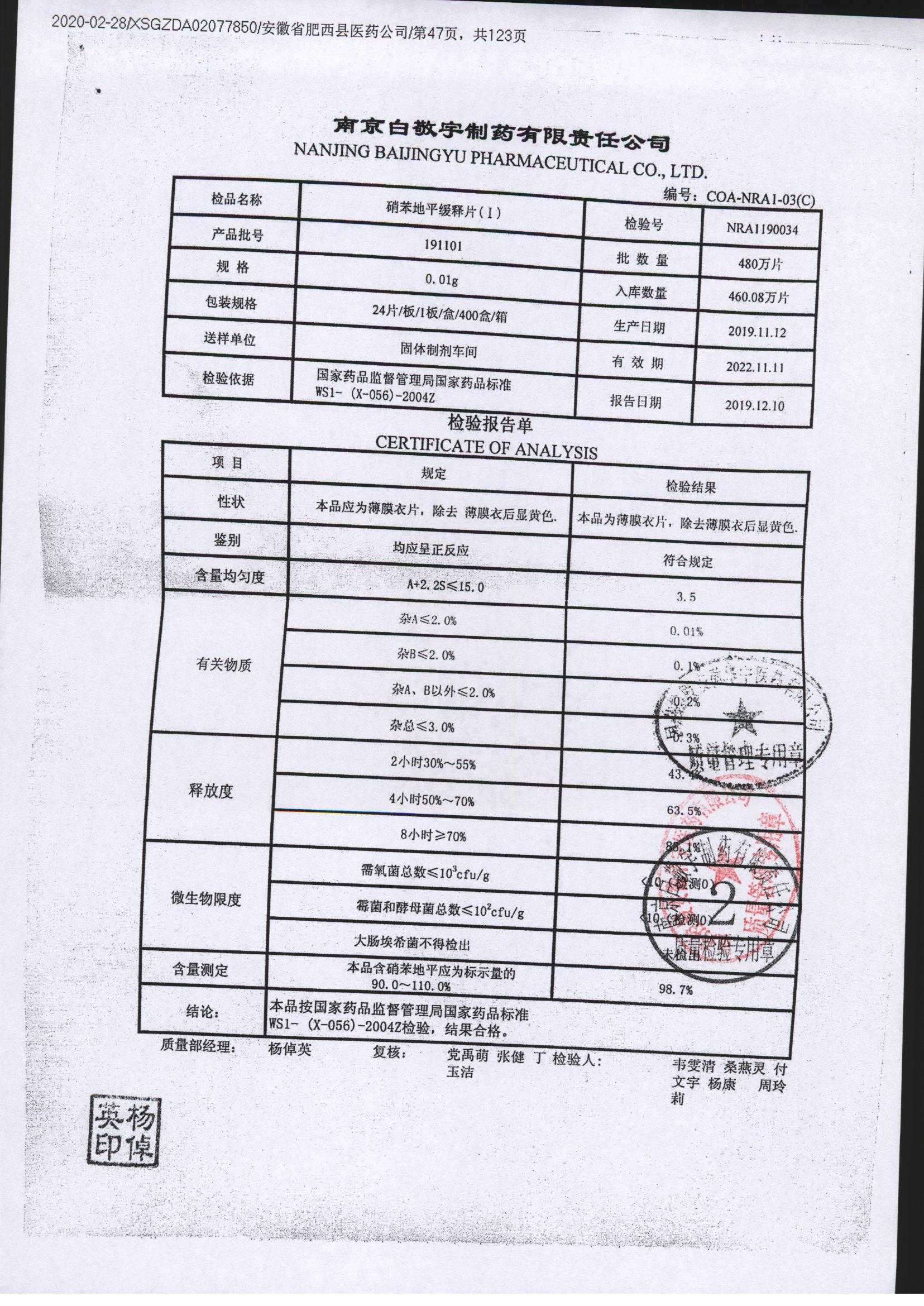 硝苯地平缓释片(I) | 0.01g*24片 | 191101 | 查看详情 |