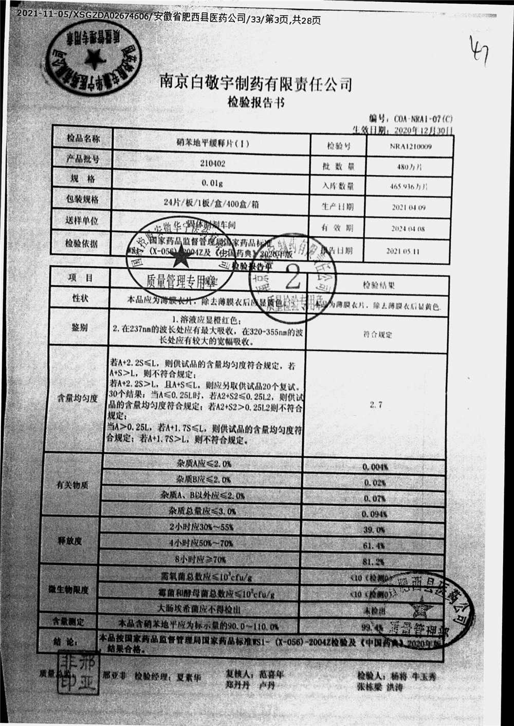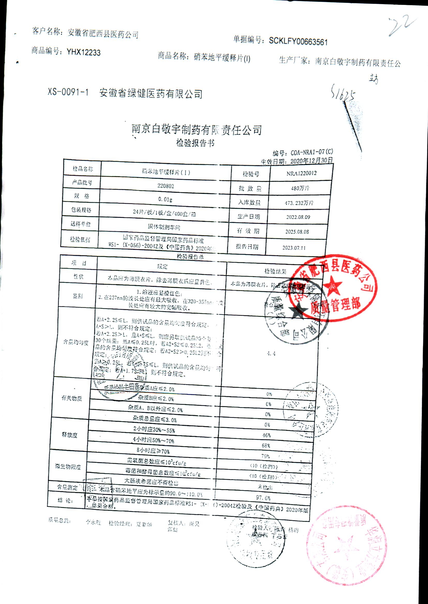 硝苯地平缓释片(I) | 0.01g*24片 | 220401 | 查看详情 |
