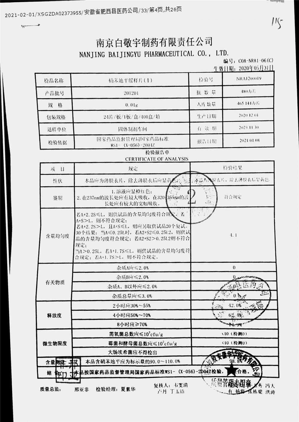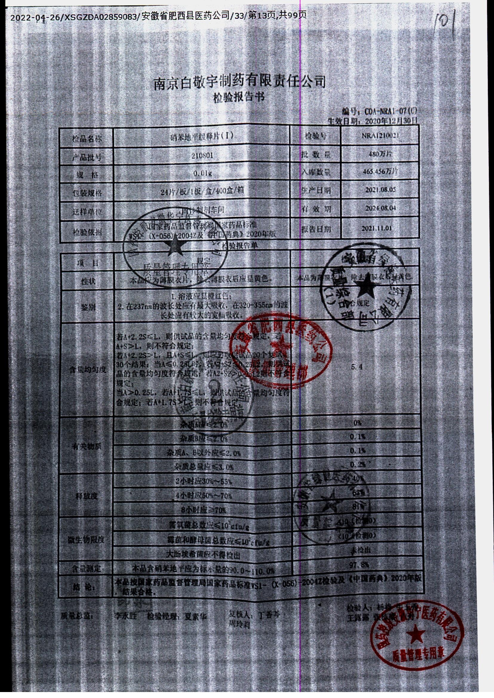 硝苯地平缓释片(I) | 0.01g*24片 | 210801 | 查看详情 |
