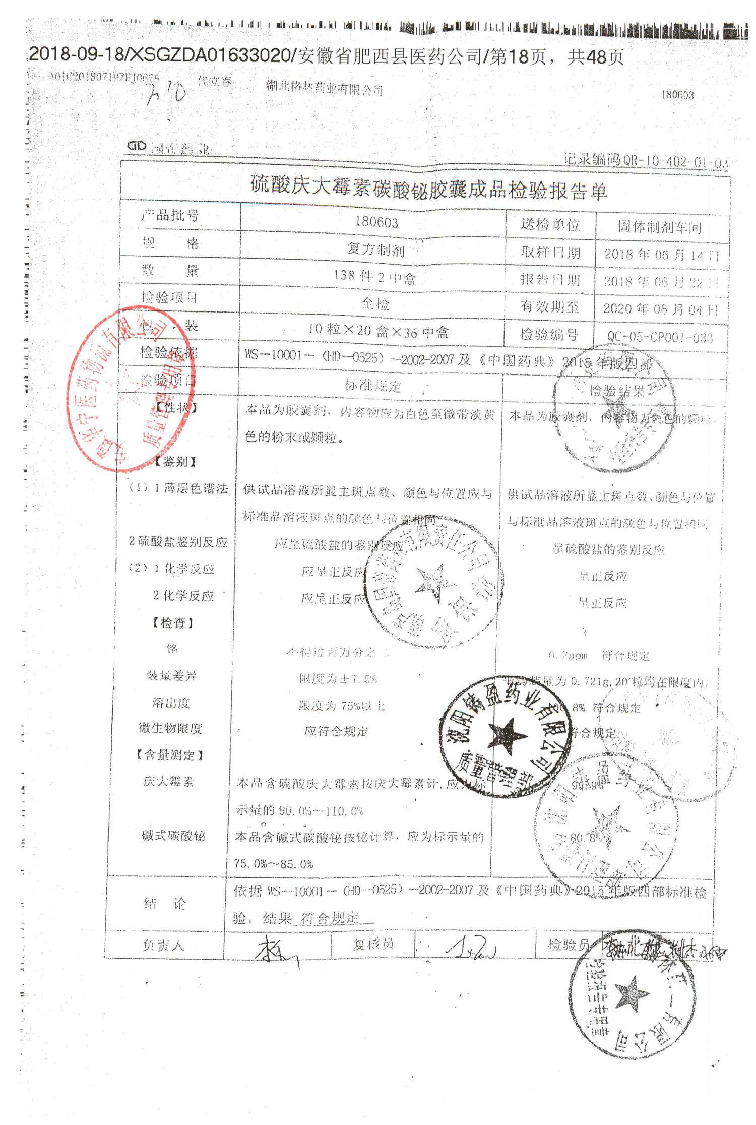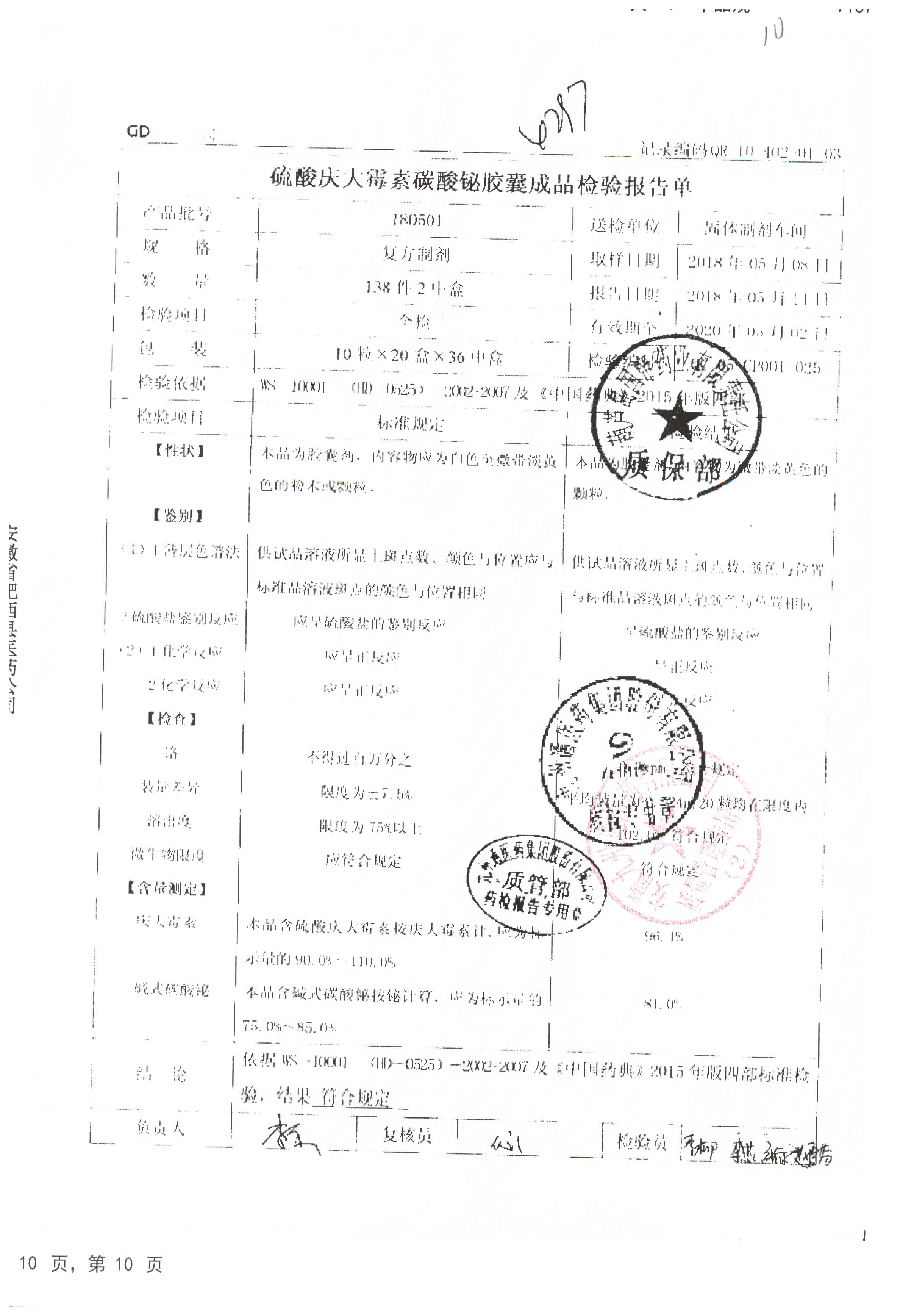 硫酸庆大霉素碳酸铋胶囊 | 10粒 | 180603 | 查看详情 |