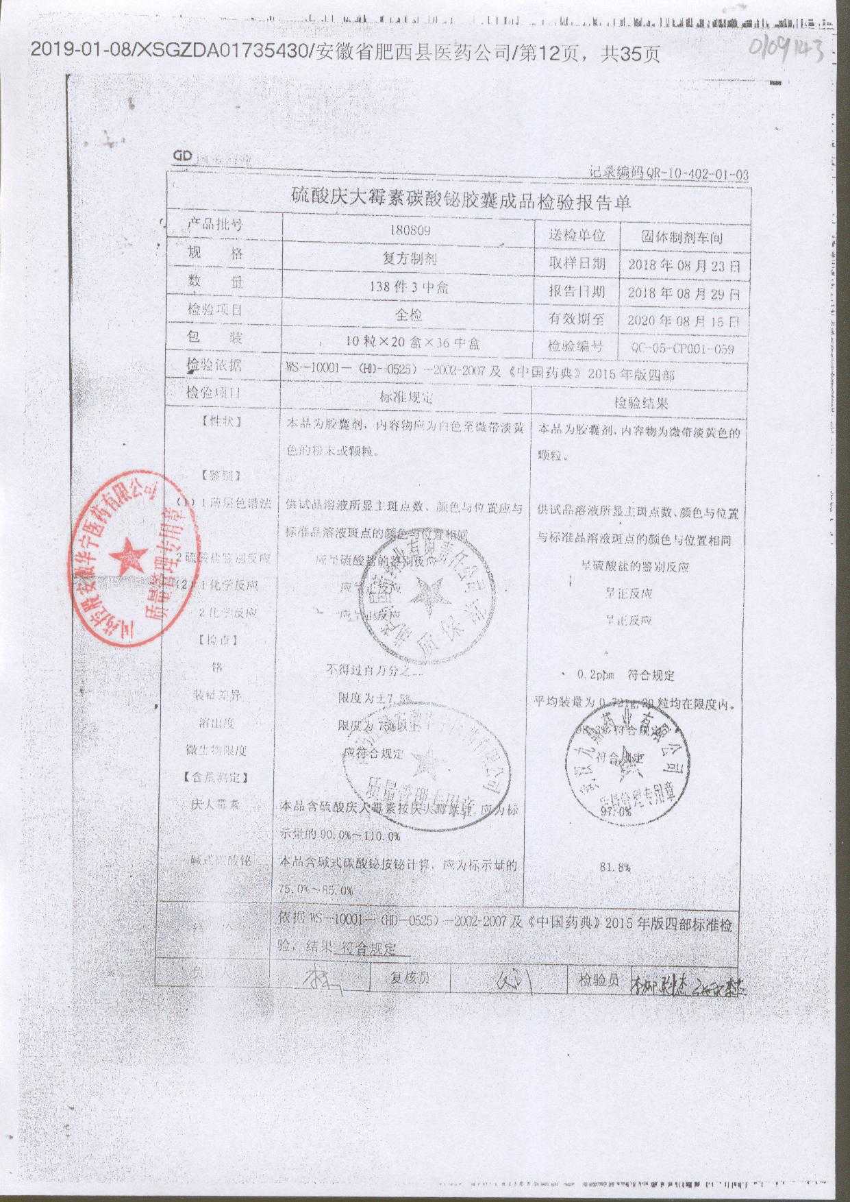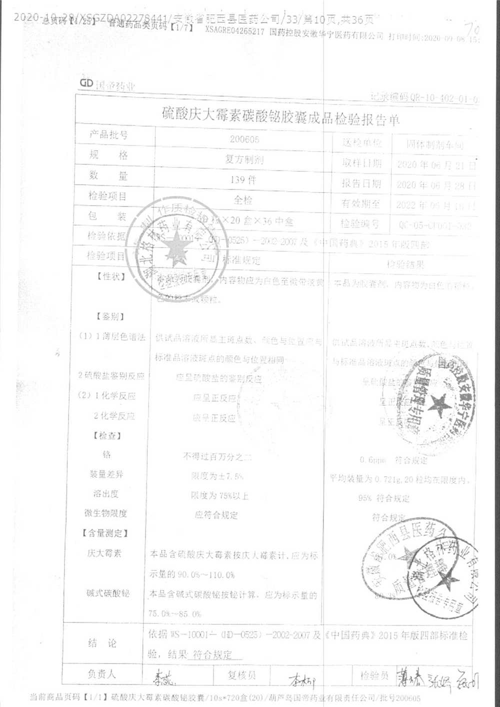 硫酸庆大霉素碳酸铋胶囊 | 10粒 | 180809 | 查看详情 |