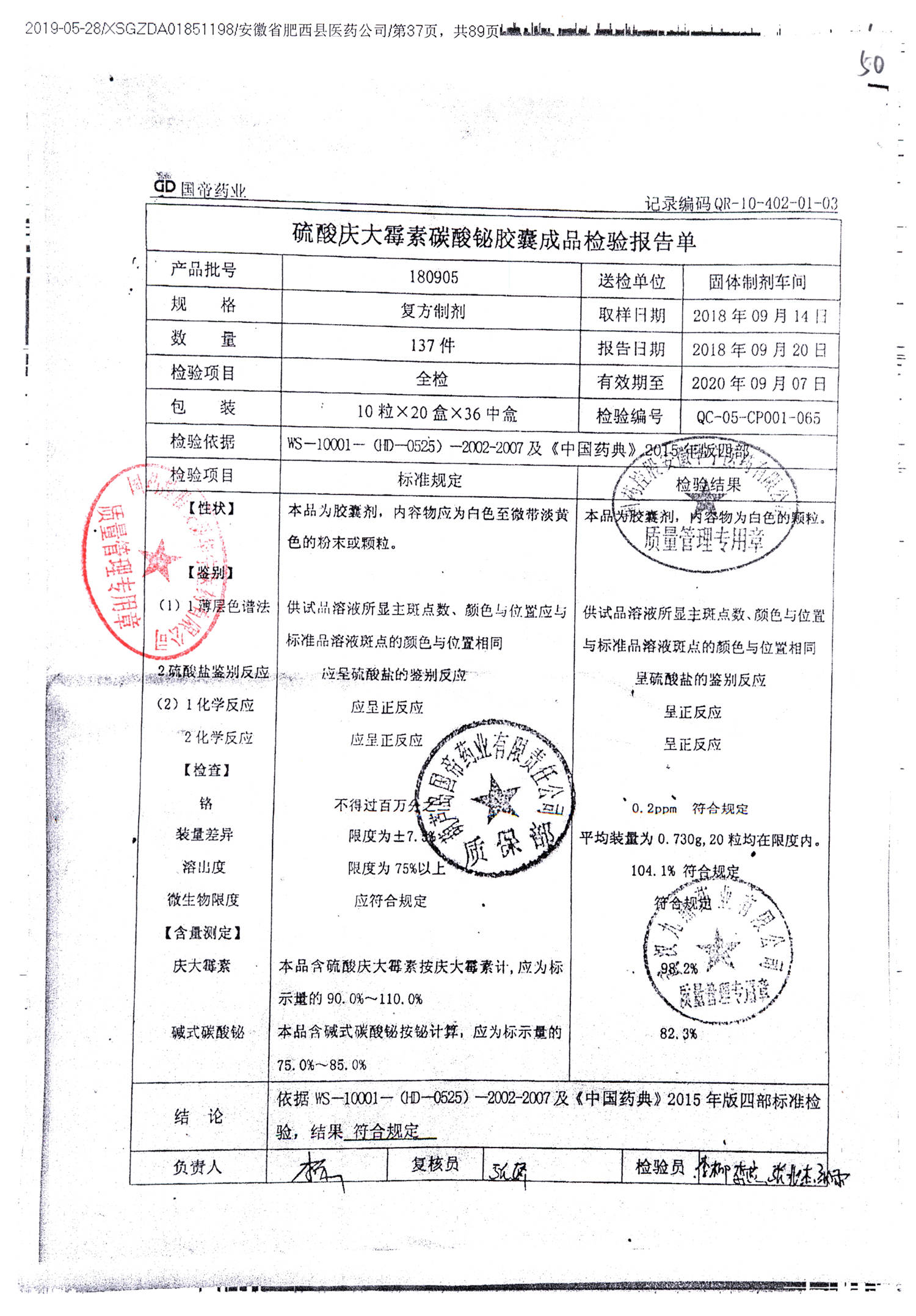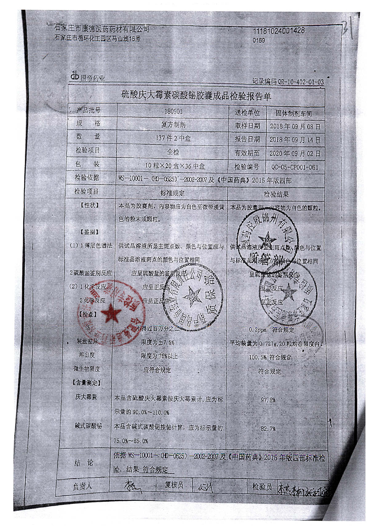 硫酸庆大霉素碳酸铋胶囊 | 10粒 | 180901 | 查看详情 |