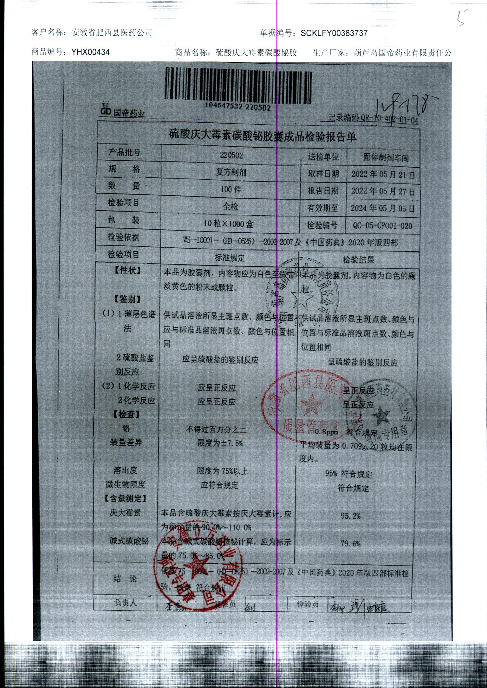 硫酸庆大霉素碳酸铋胶囊 | 10粒 | 220502 | 查看详情 |