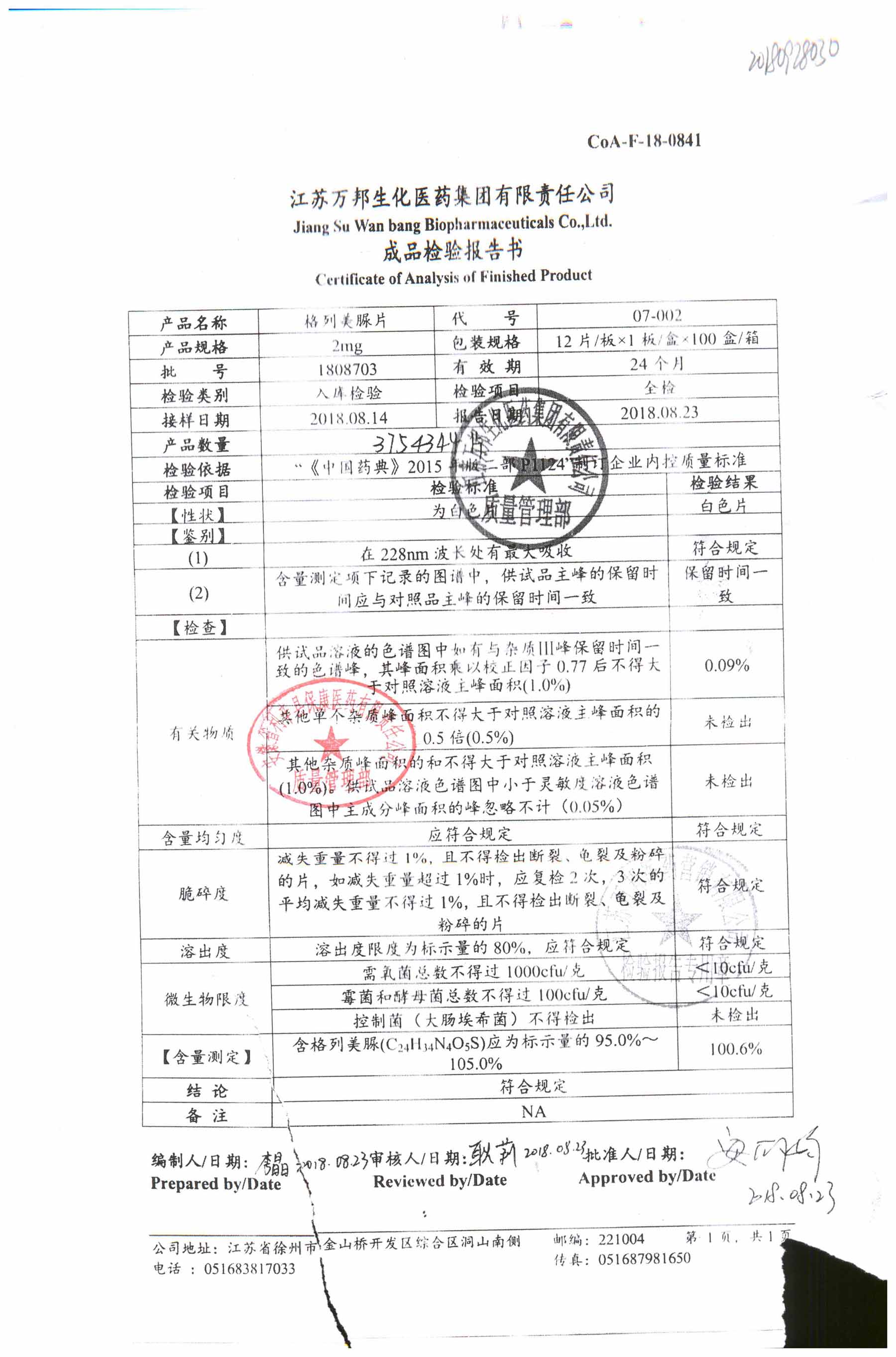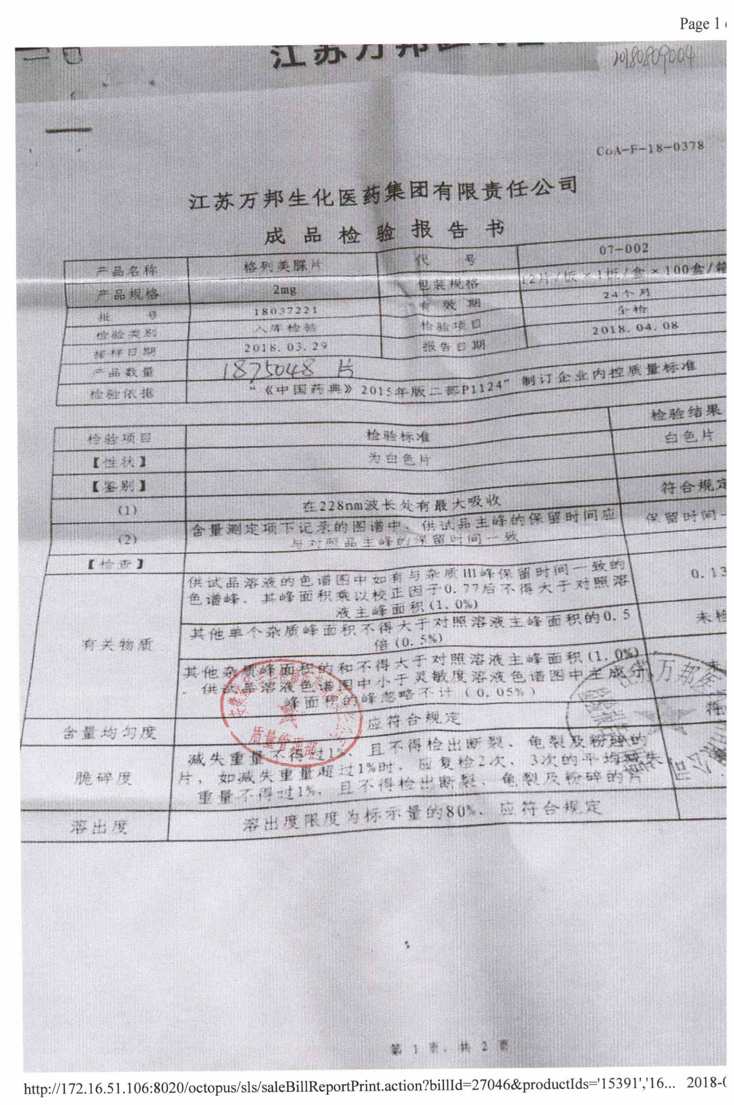 格列美脲片 | 2mg*12片 | 18037221(2/2) | 查看详情 |