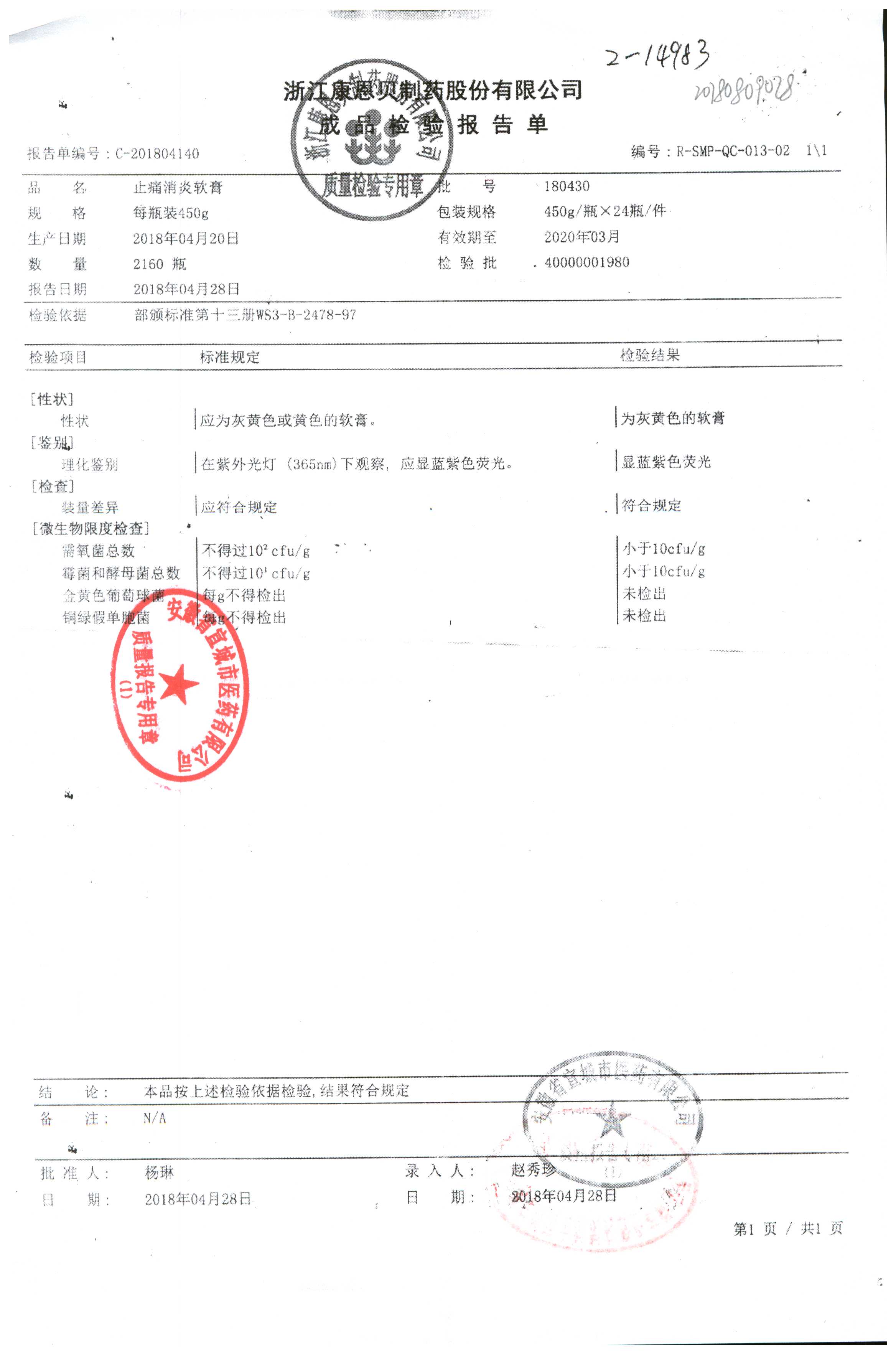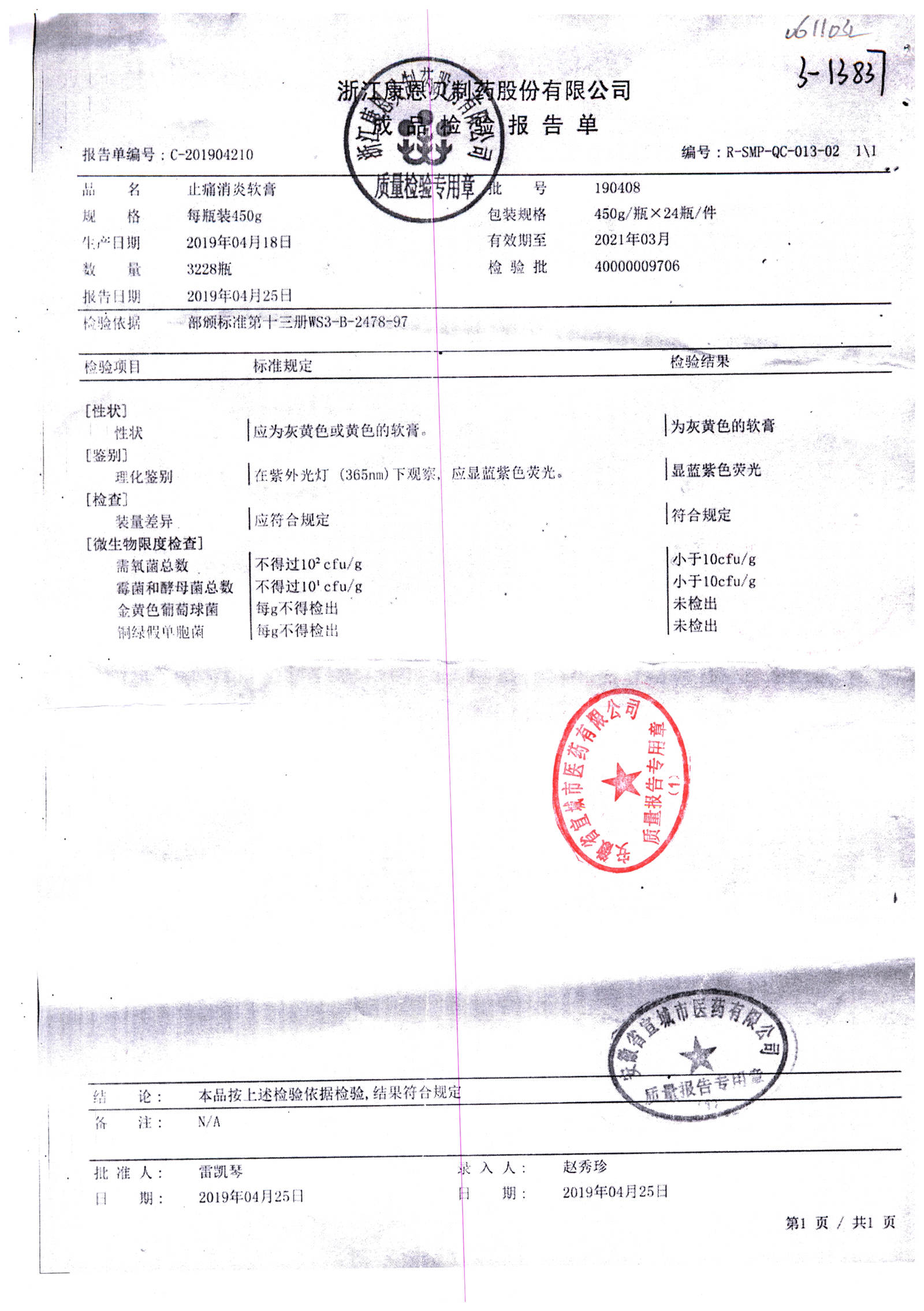 药检报告