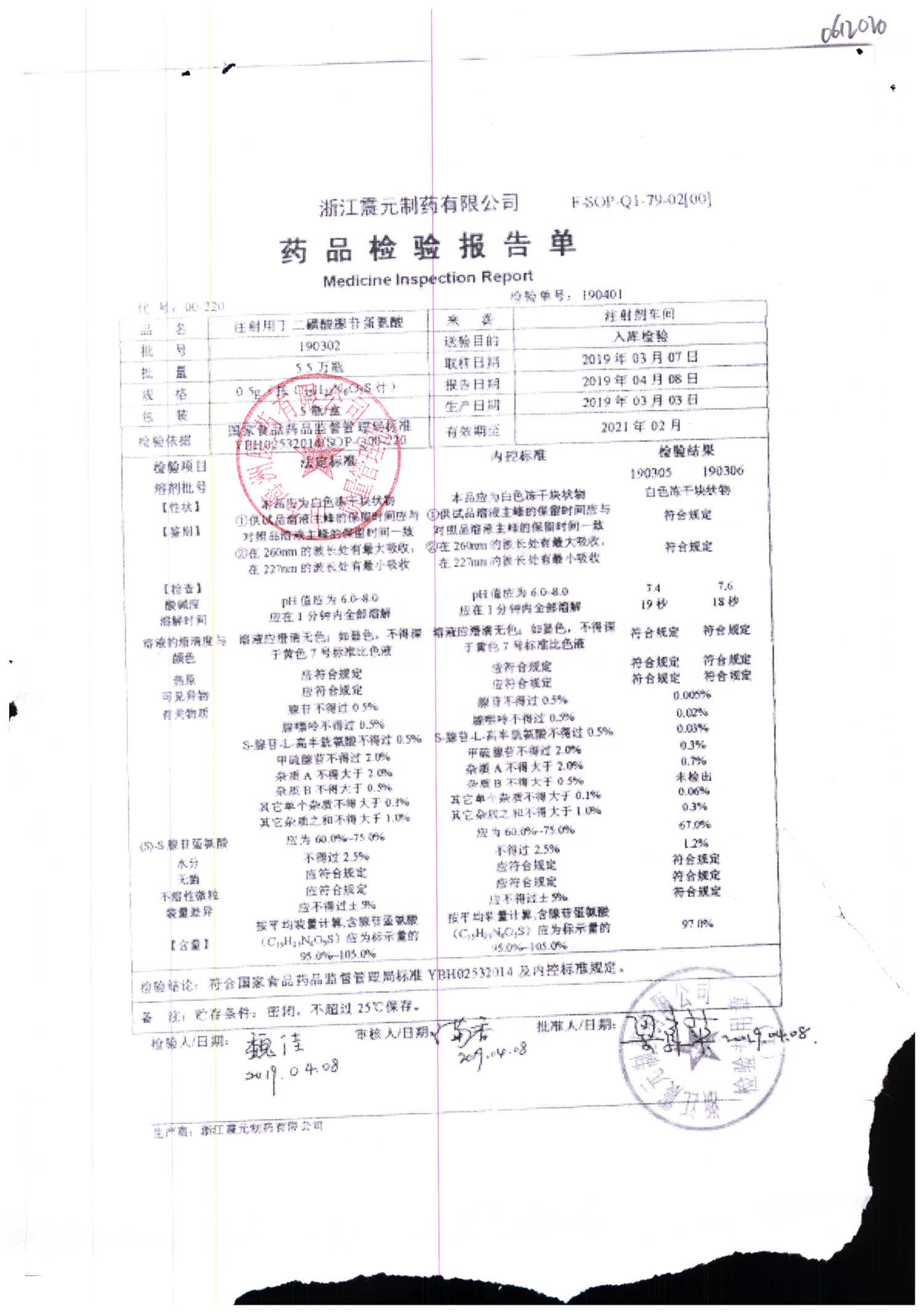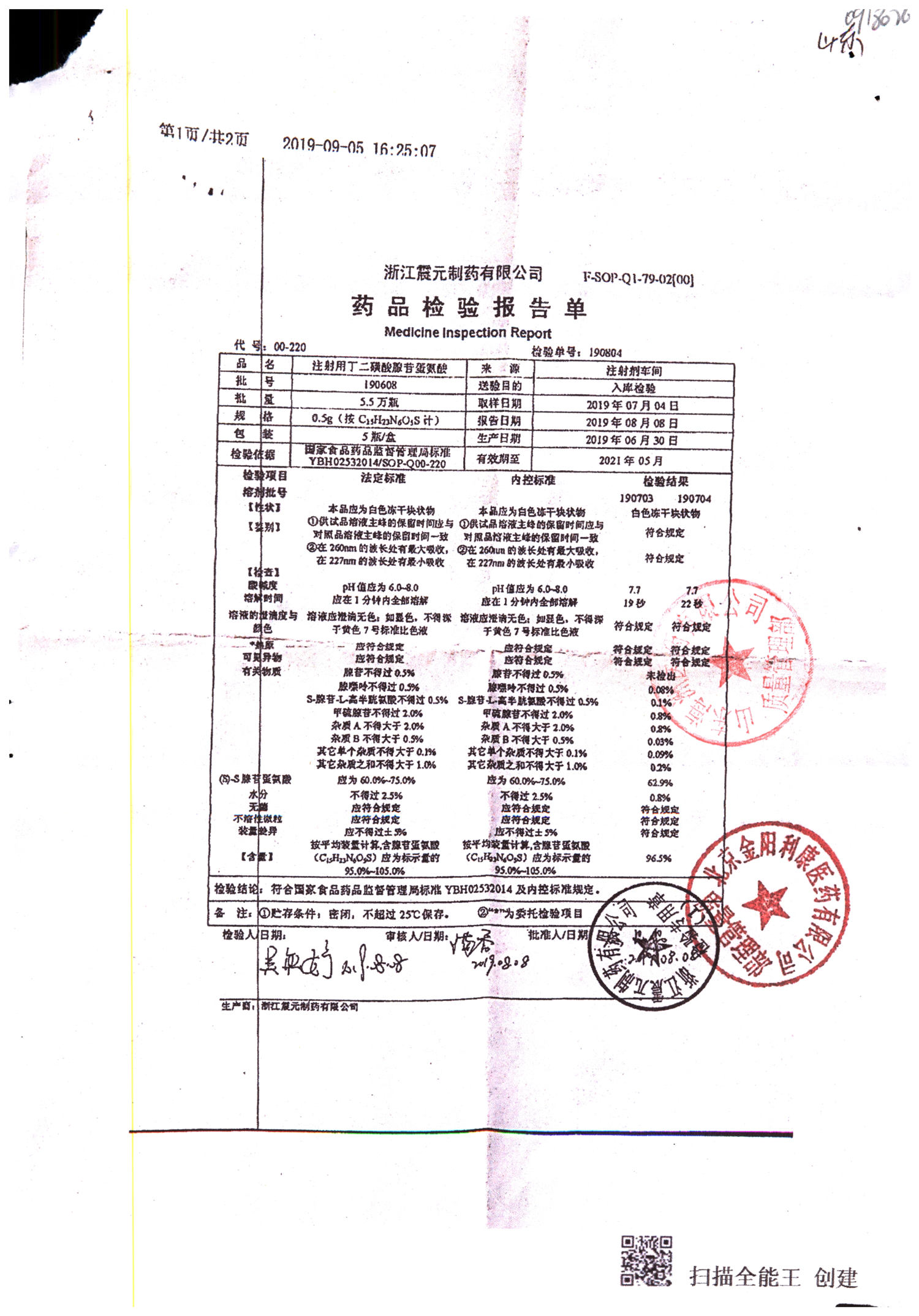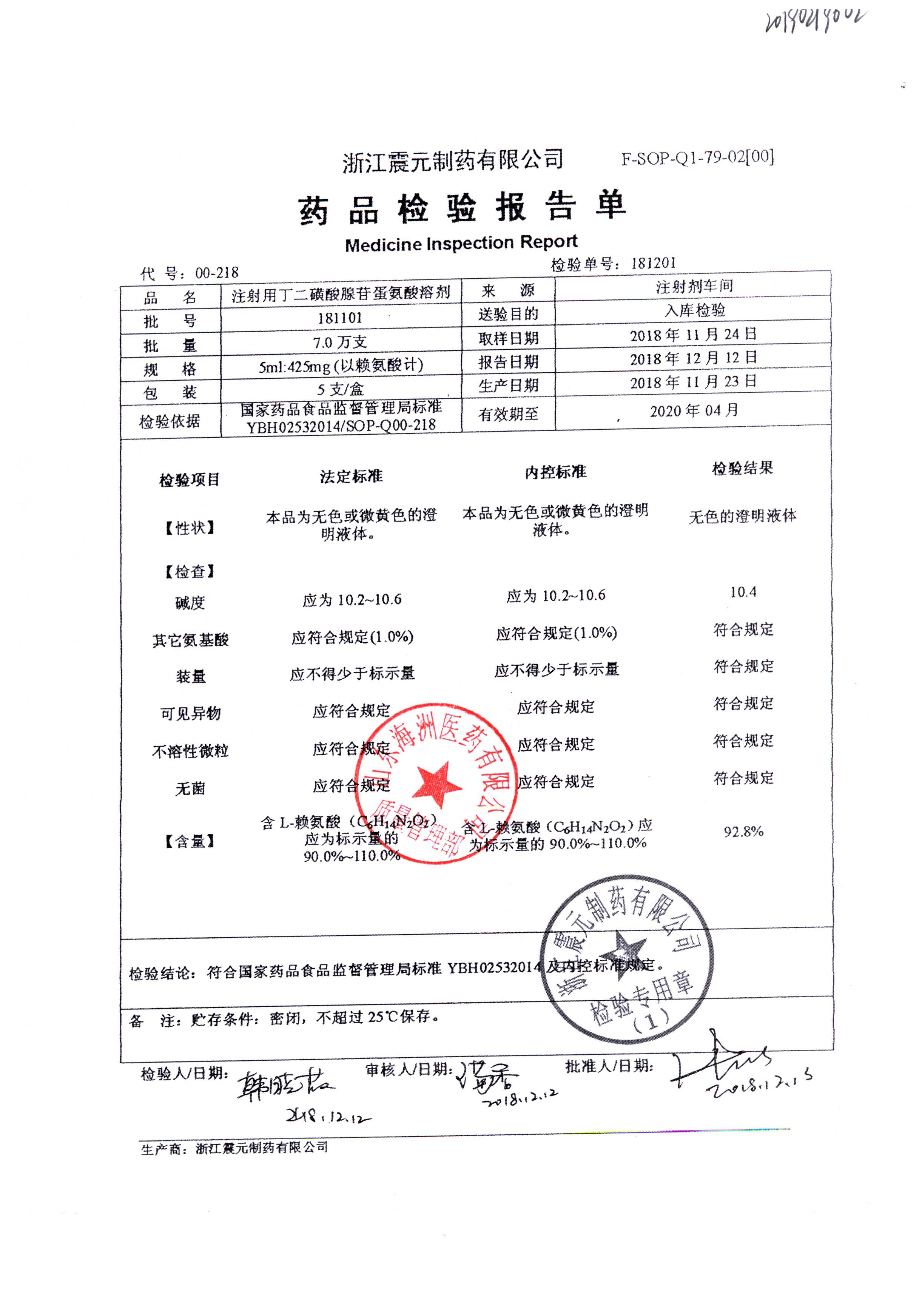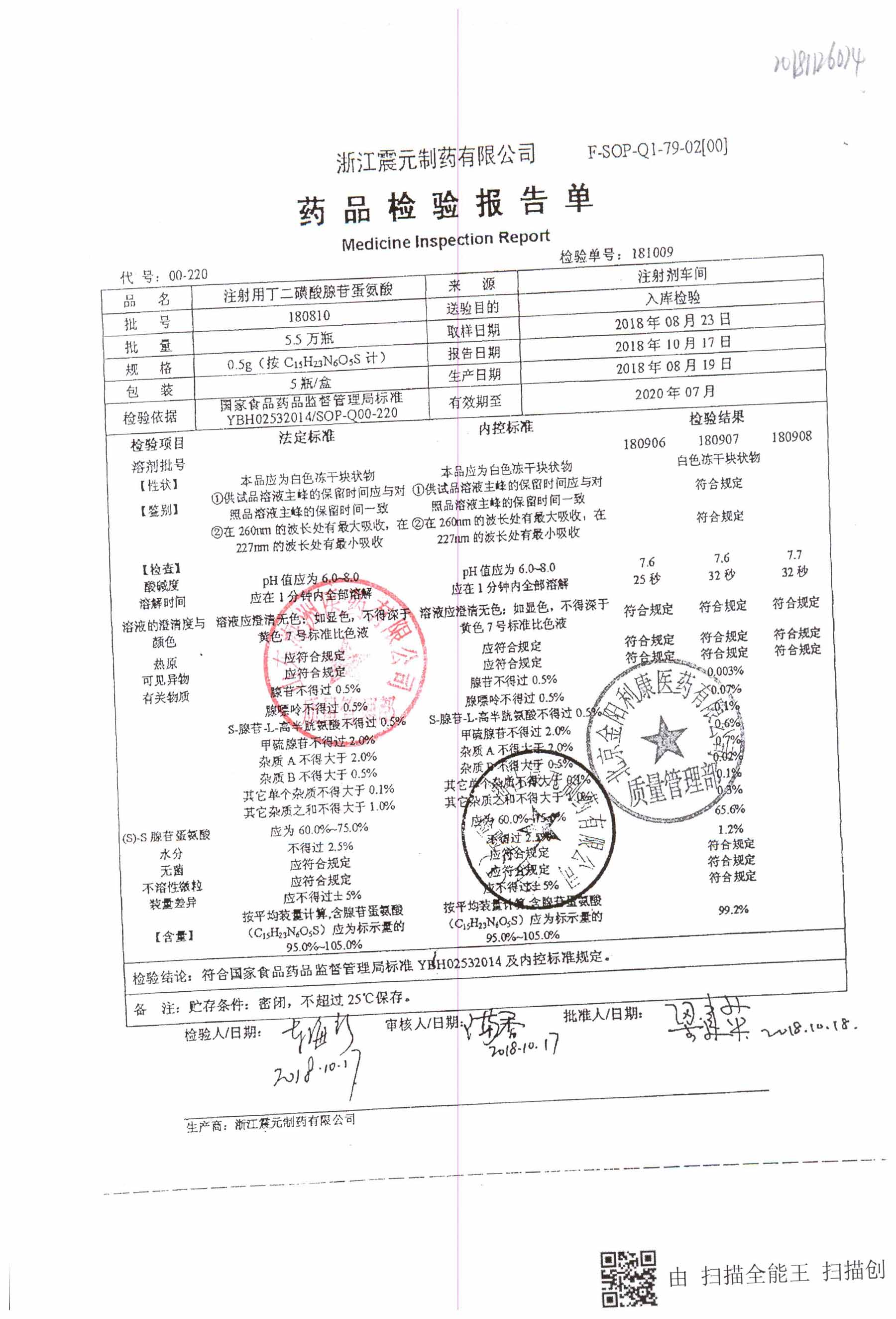 注射用丁二磺酸腺苷蛋氨酸 | 0.5g | 180810(2/2溶剂180908) | 查看详情 |