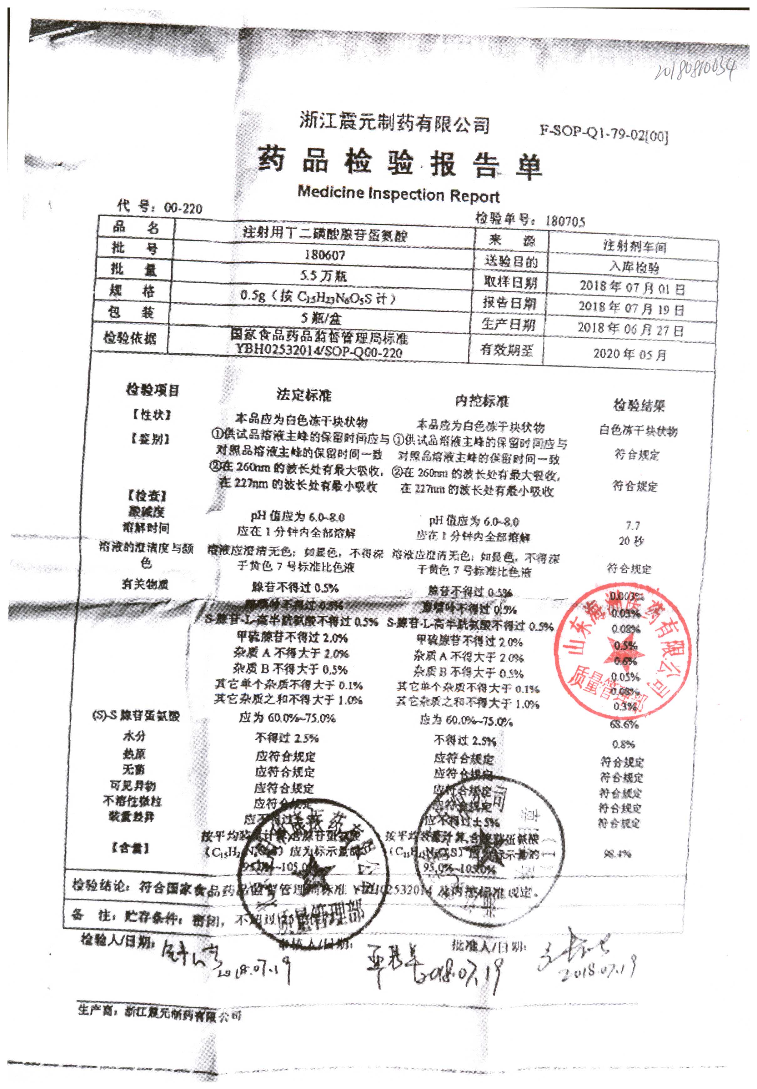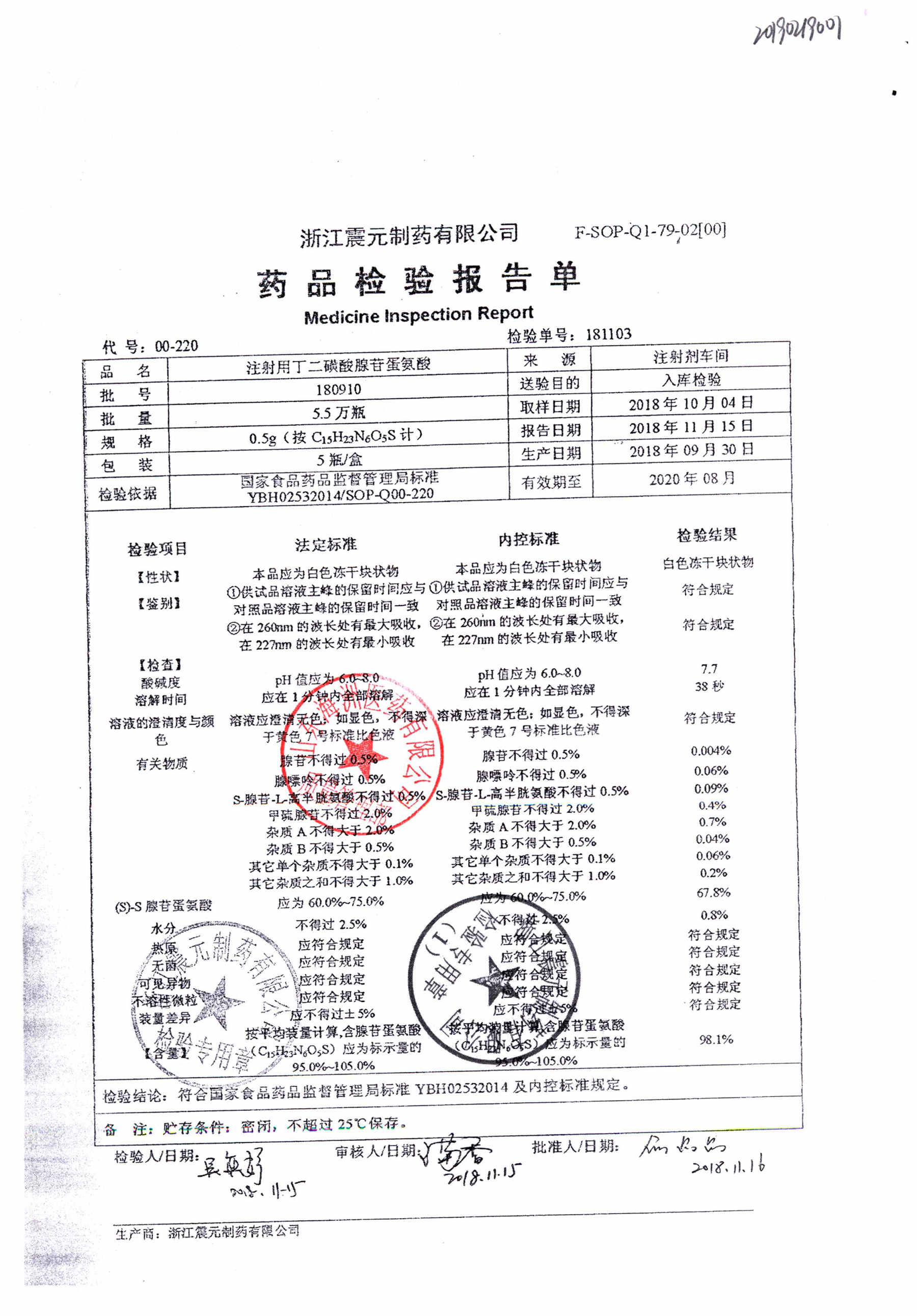 注射用丁二磺酸腺苷蛋氨酸 | 0.5g | 180910(2/2溶剂181101) | 查看详情 |