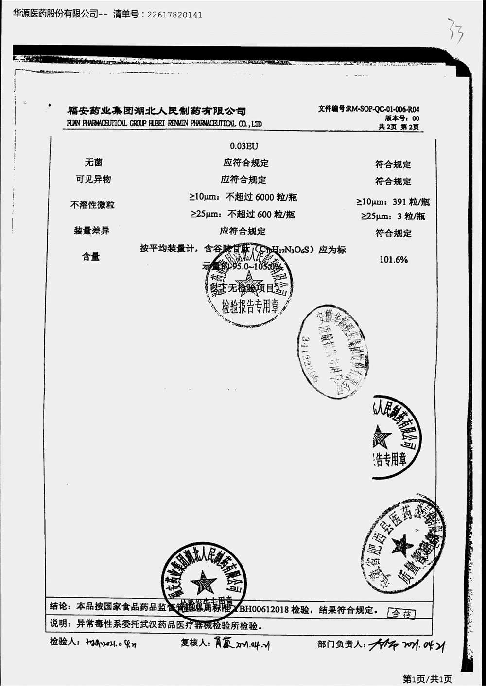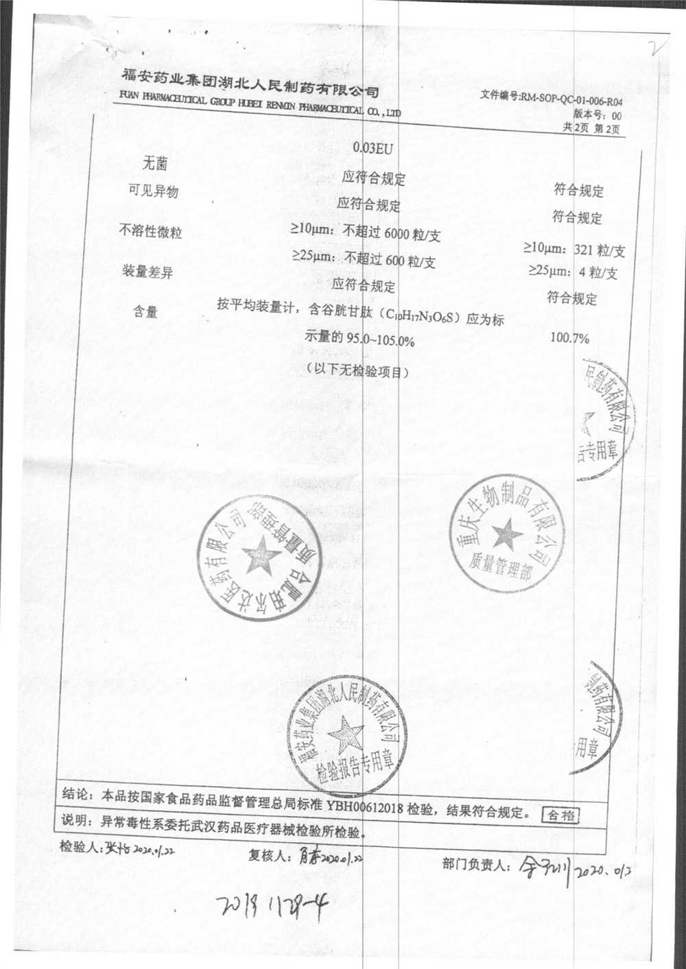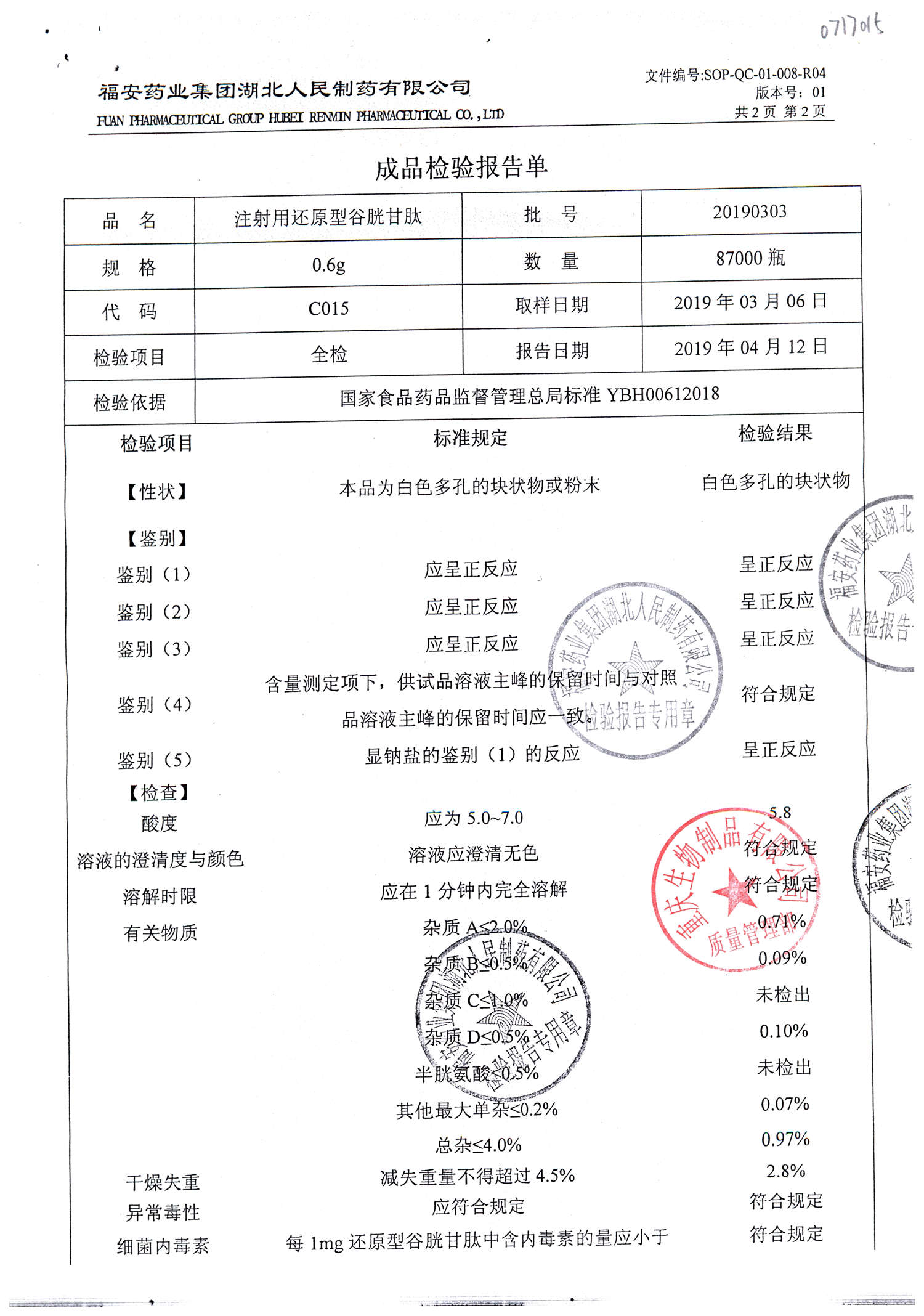 注射用还原型谷胱甘肽 | 0.6g | 20210318-3(2/2) | 查看详情 |