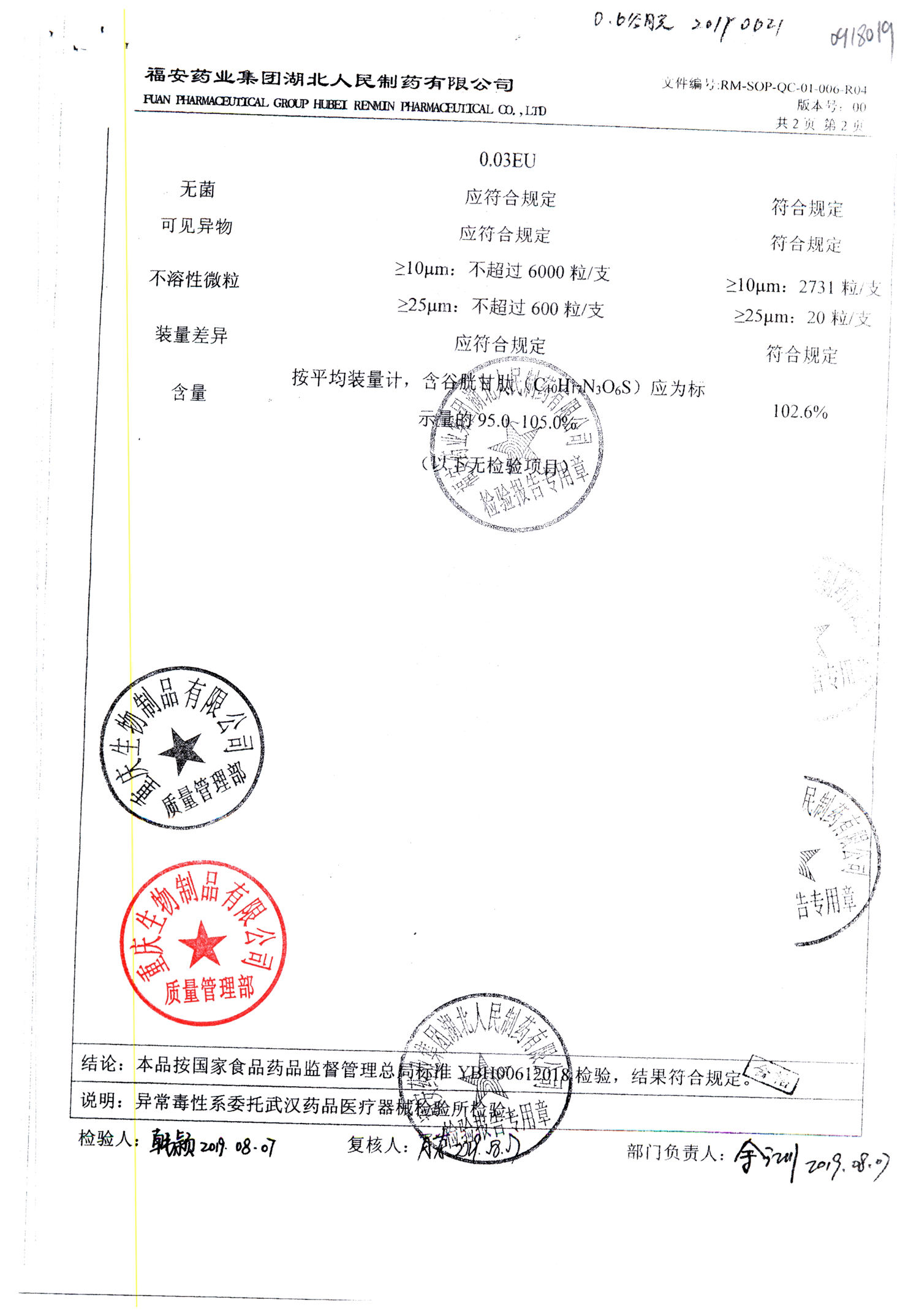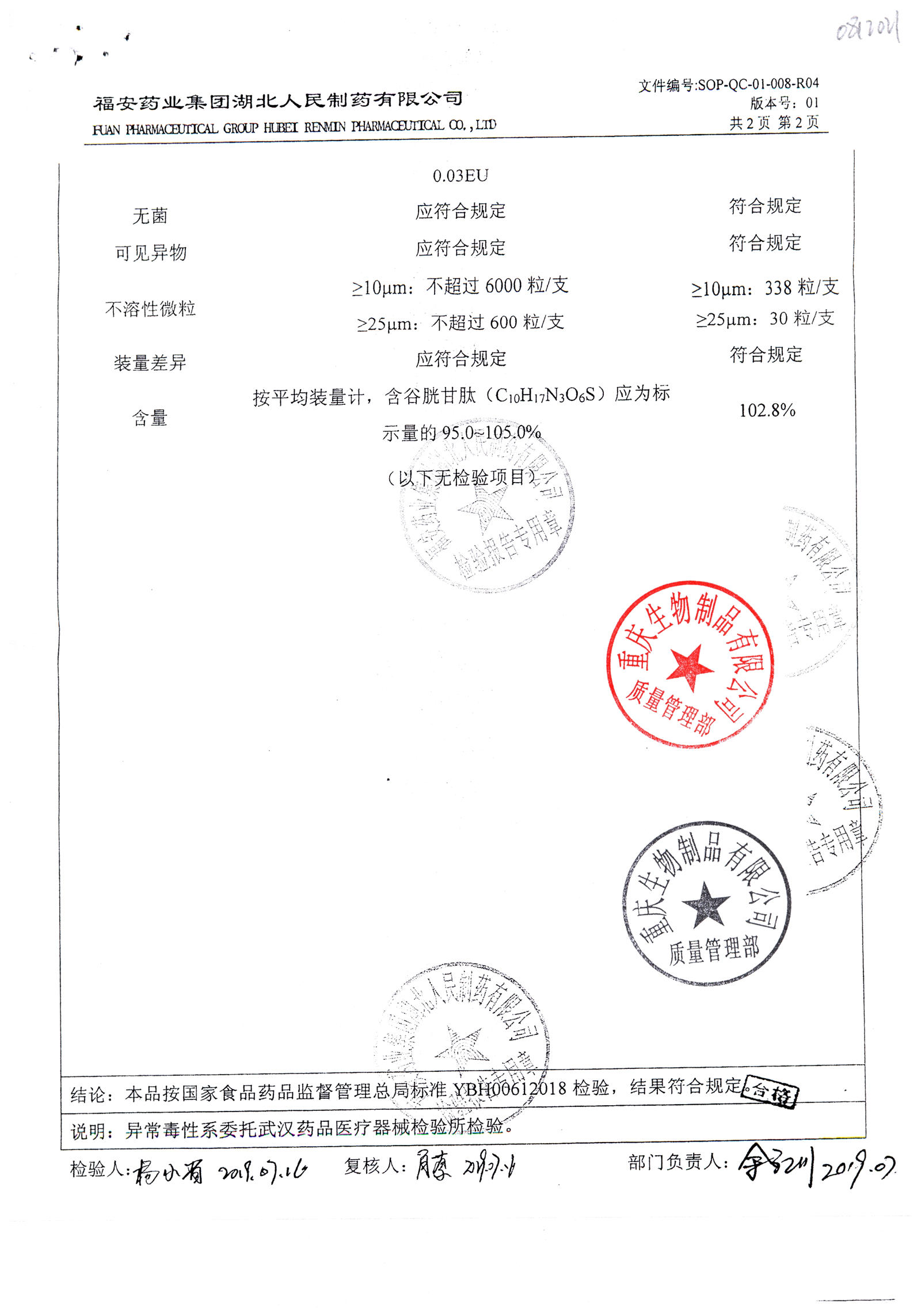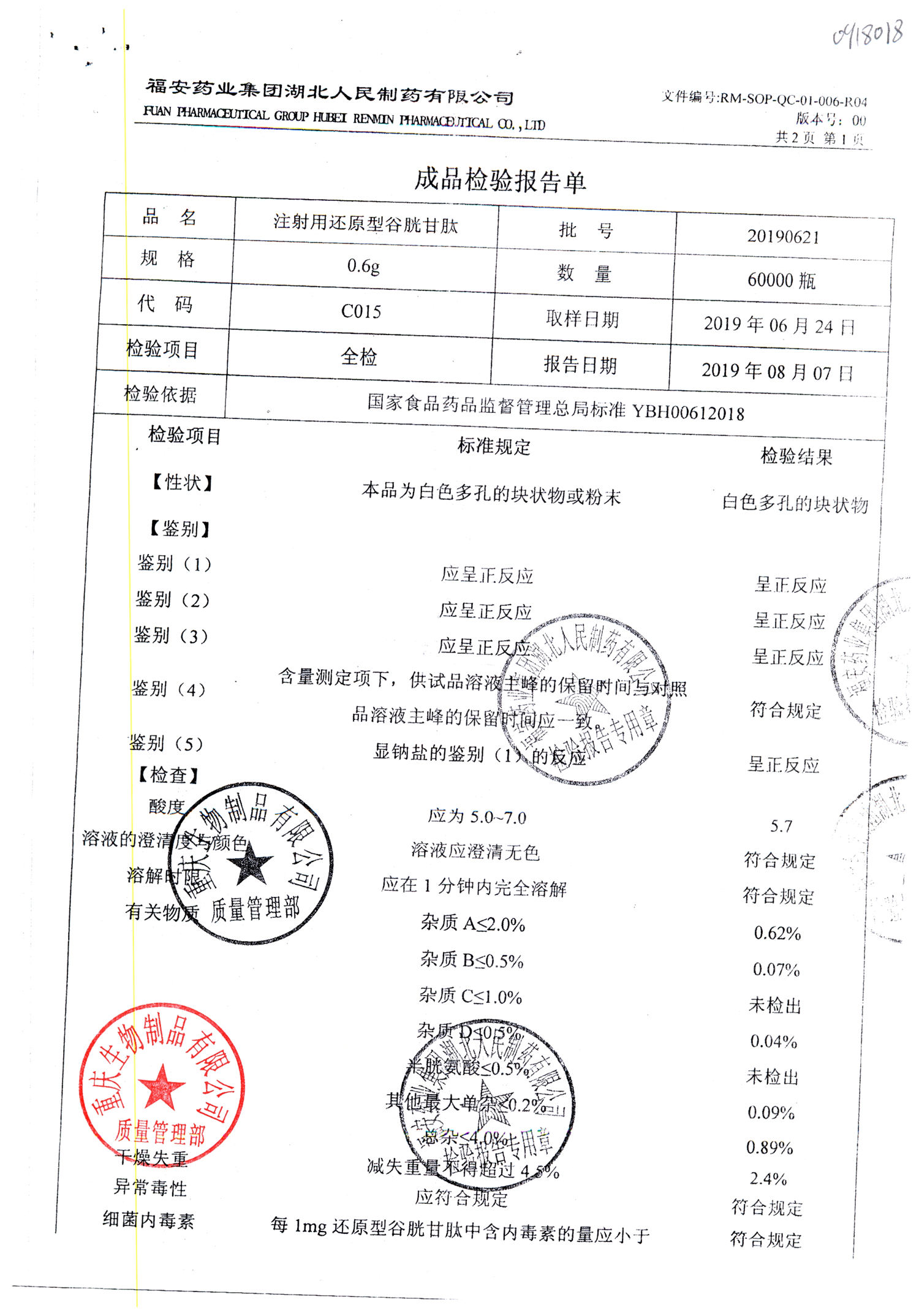 注射用还原型谷胱甘肽 | 0.6g | 20190621(1/2) | 查看详情 |