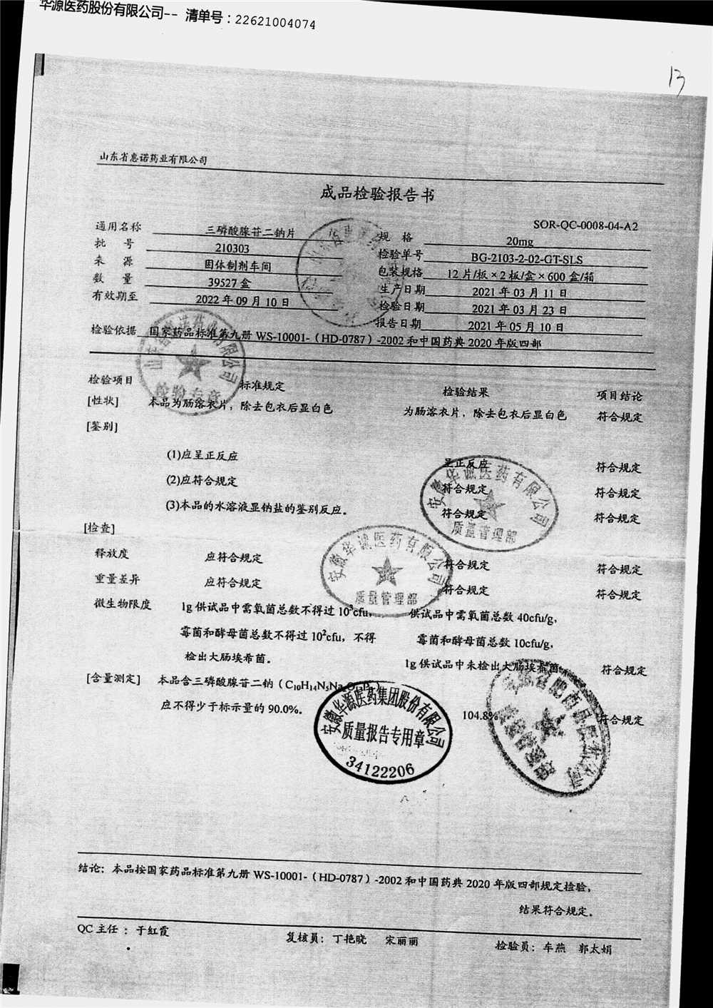 三磷酸腺苷二钠片 | 20mg*24片 | 210803 | 查看详情 |
