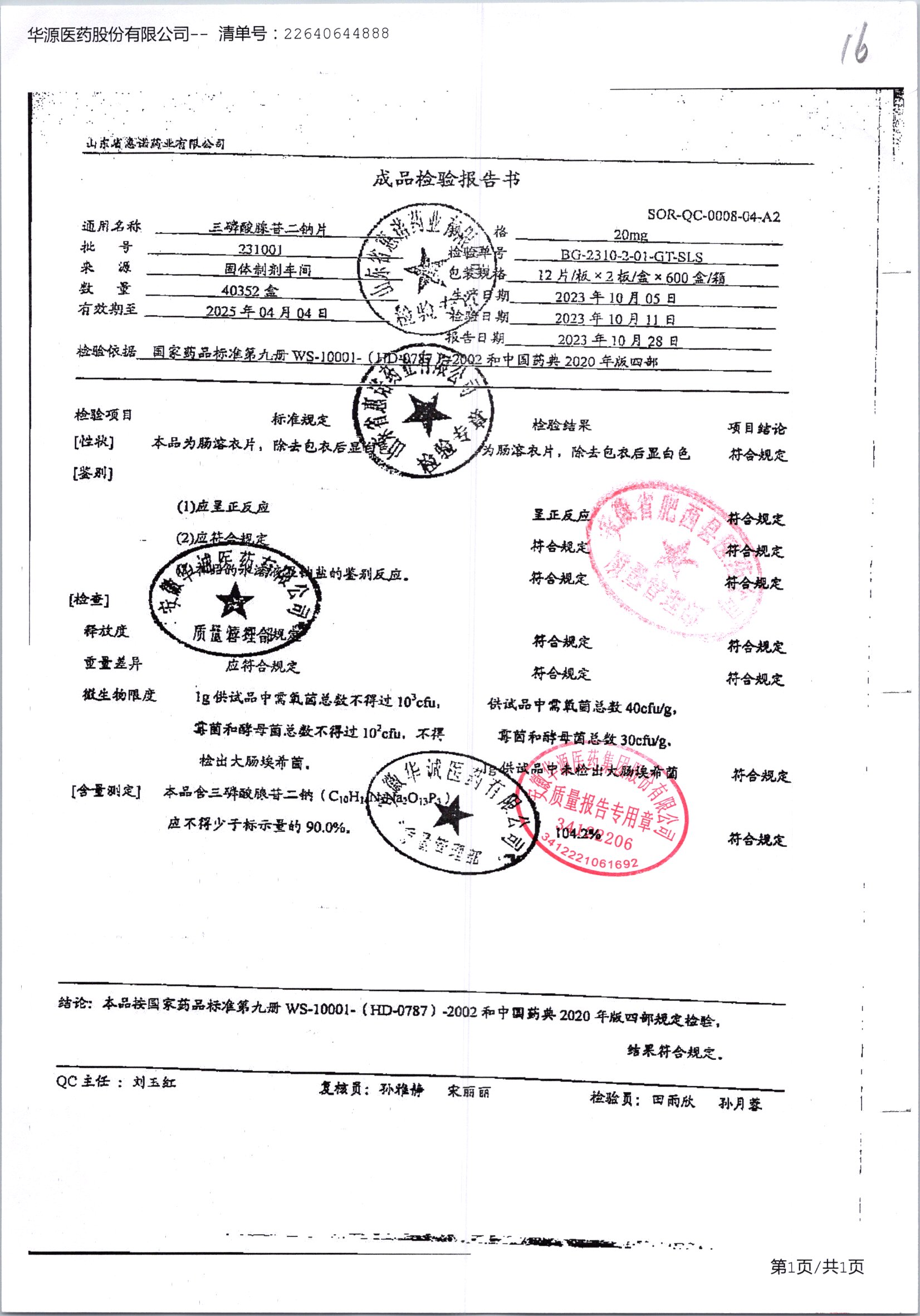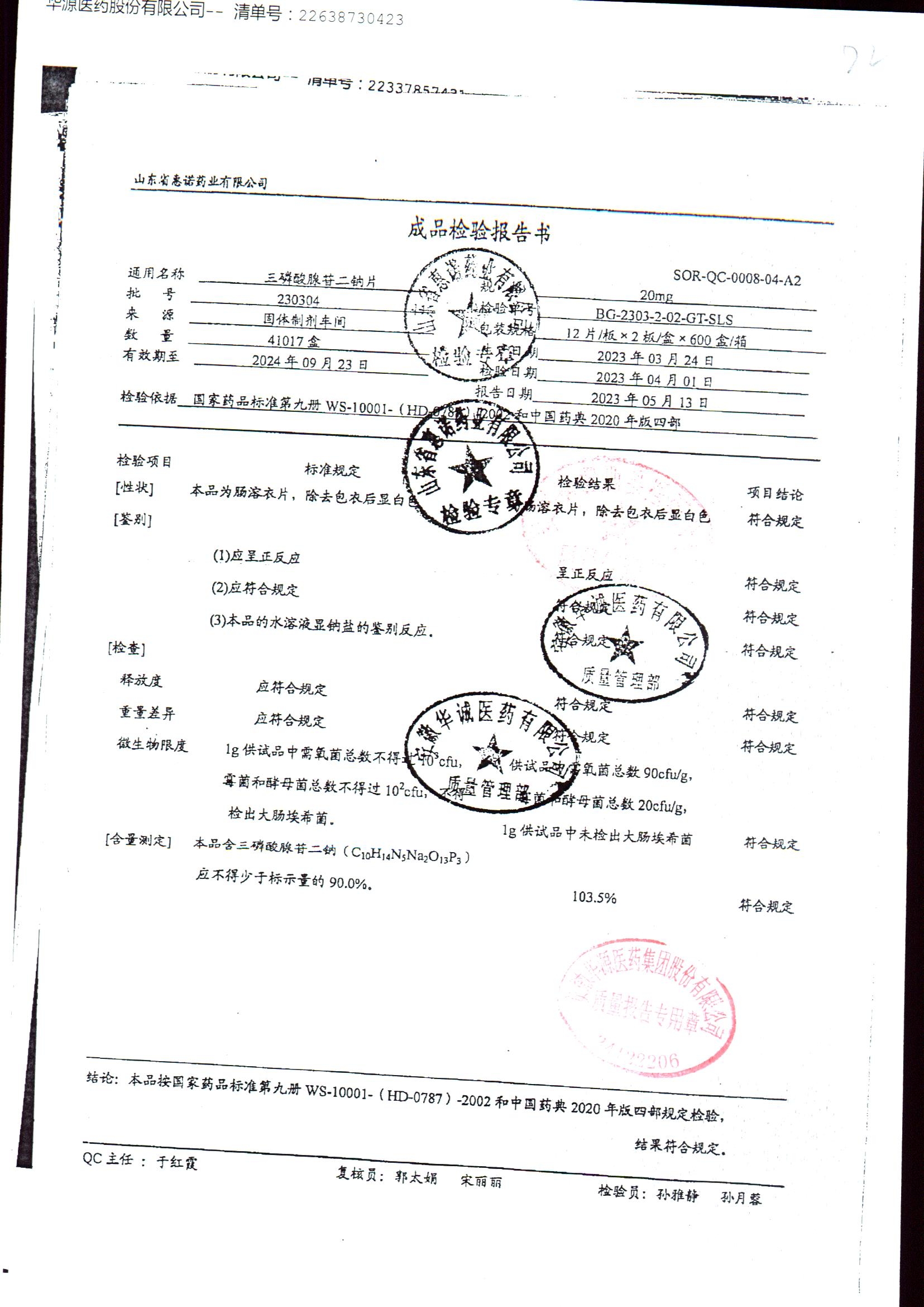 三磷酸腺苷二钠片 | 20mg*24片 | 221201 | 查看详情 |