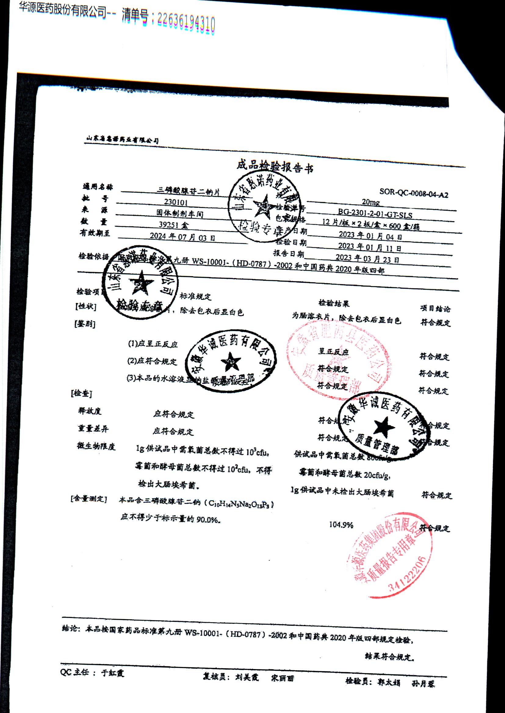三磷酸腺苷二钠片 | 20mg*24片 | 230101 | 查看详情 |