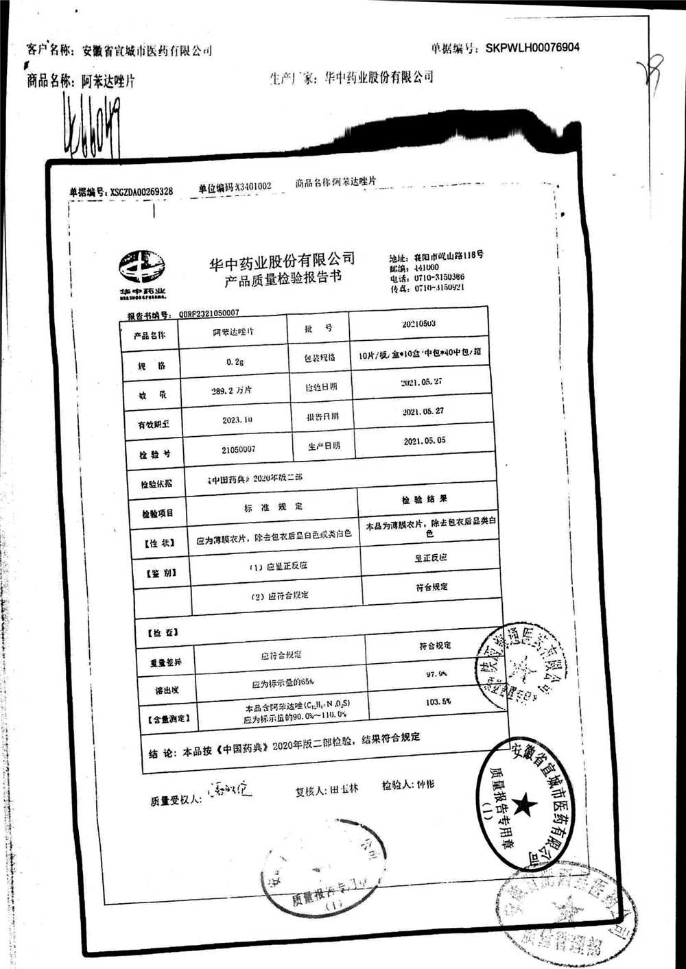 阿苯达唑片 | 0.2g*10片 | 20210502 | 查看详情 |