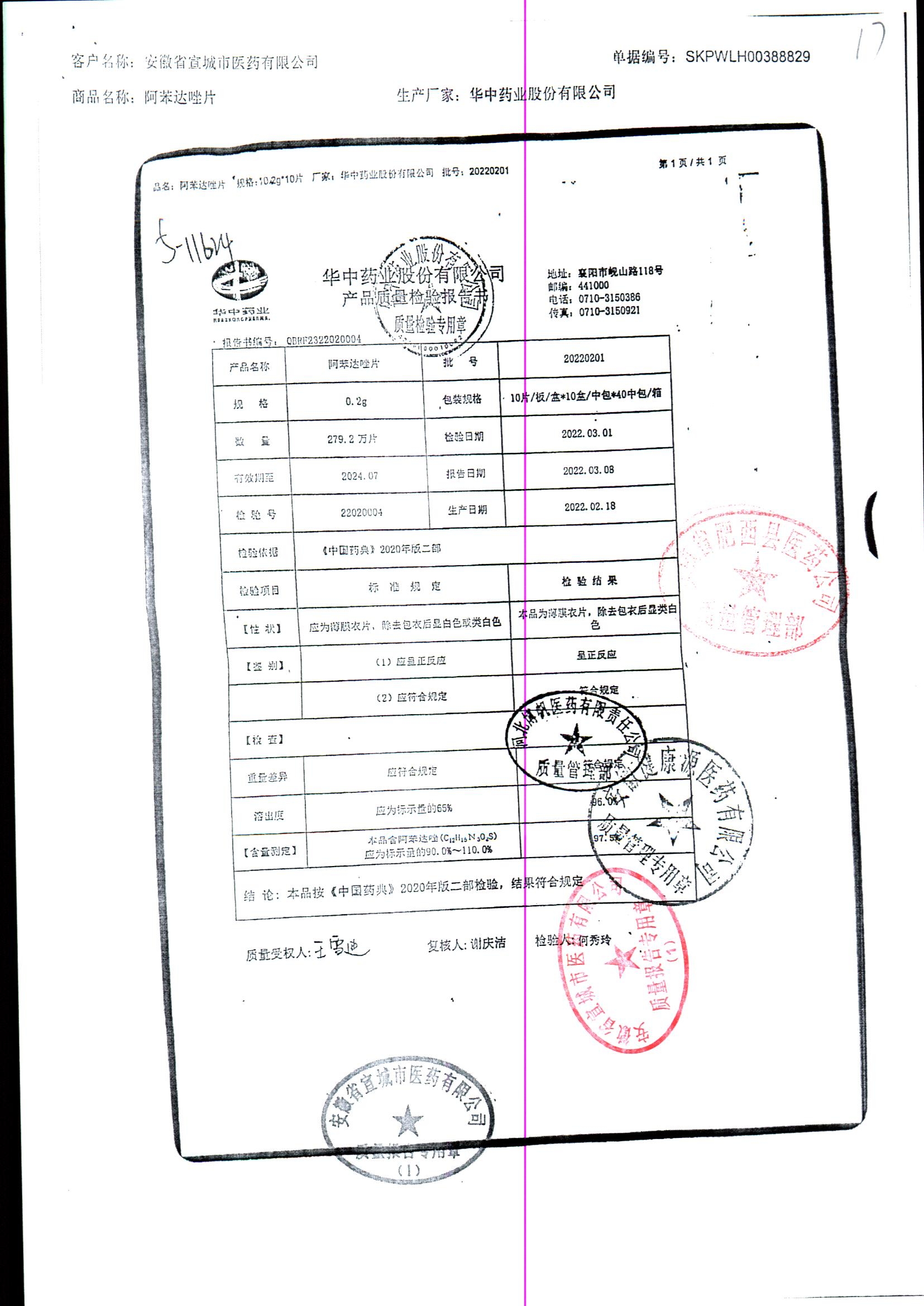 阿苯达唑片 | 0.2g*10片 | 20220201 | 查看详情 |