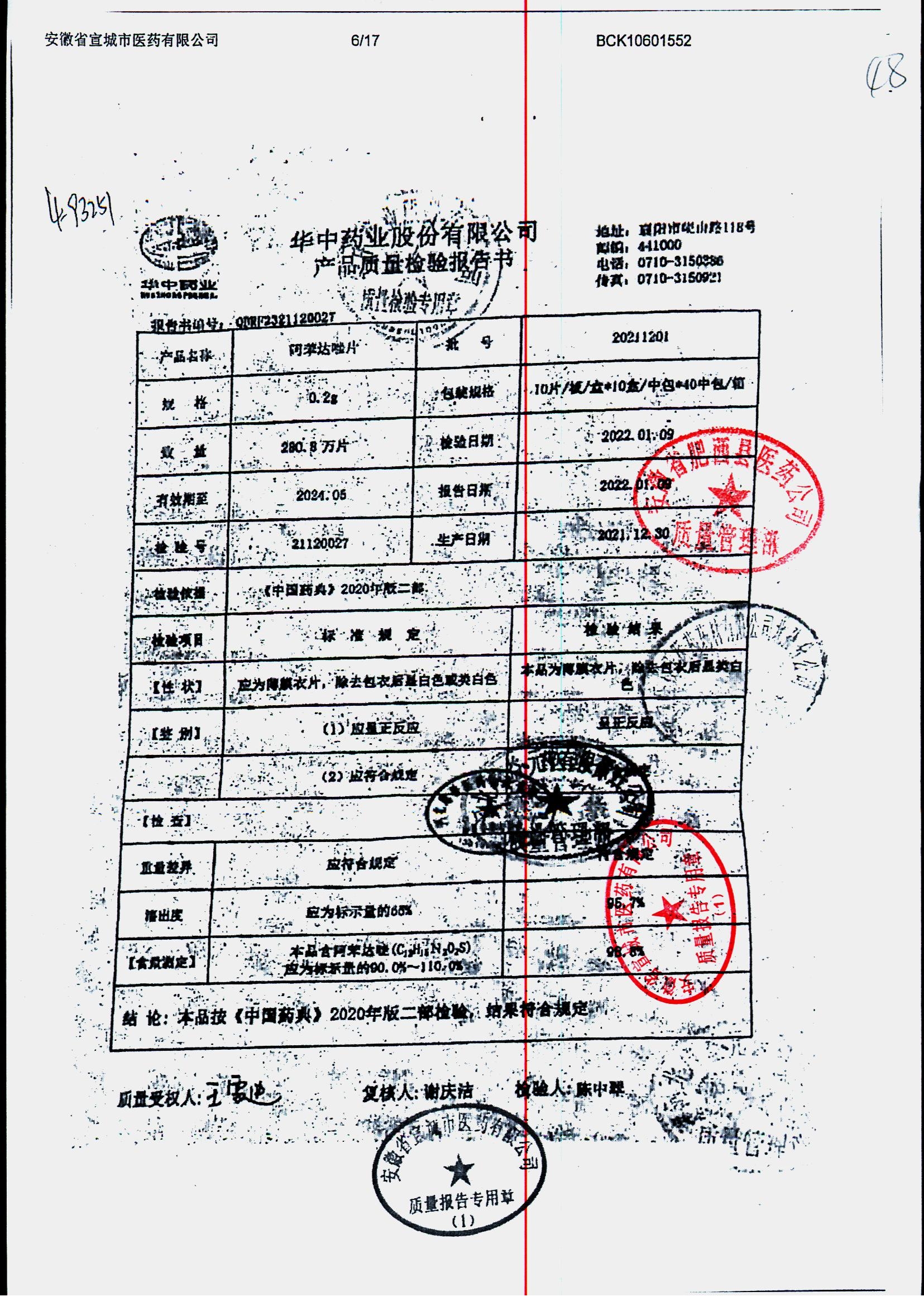 阿苯达唑片 | 0.2g*10片 | 20211201 | 查看详情 |