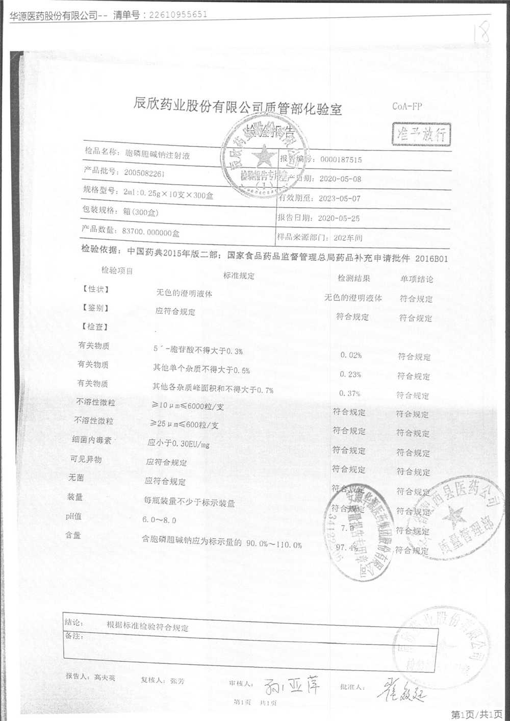胞磷胆碱钠注射液 | 2ml:0.25g | 2001212262 | 查看详情 |