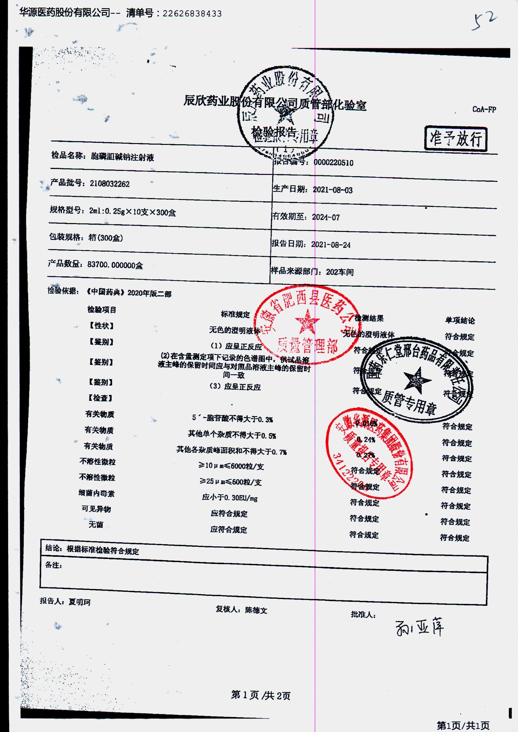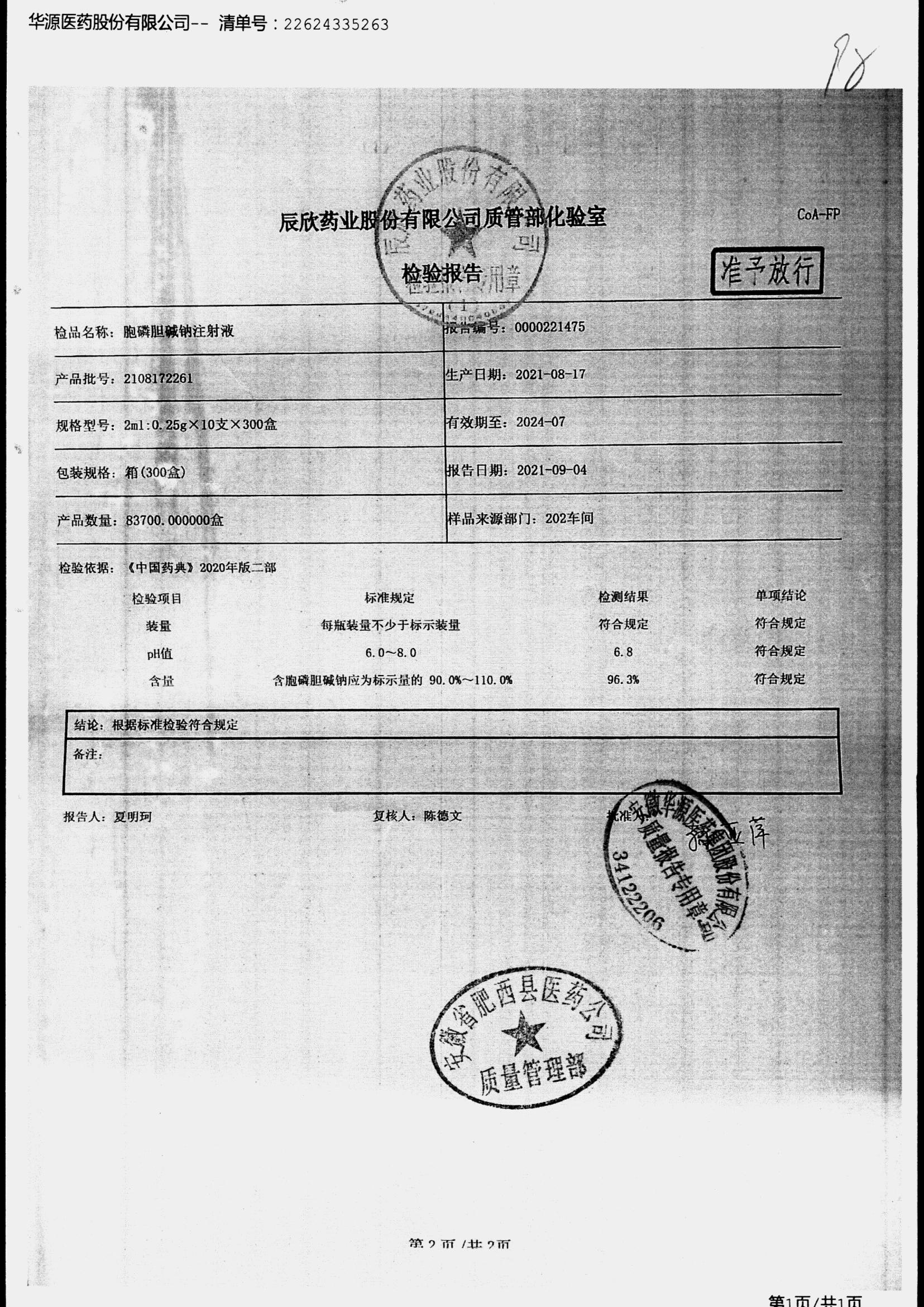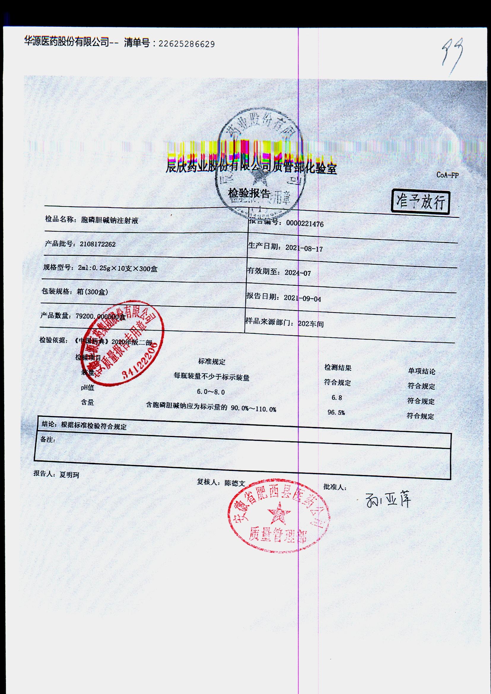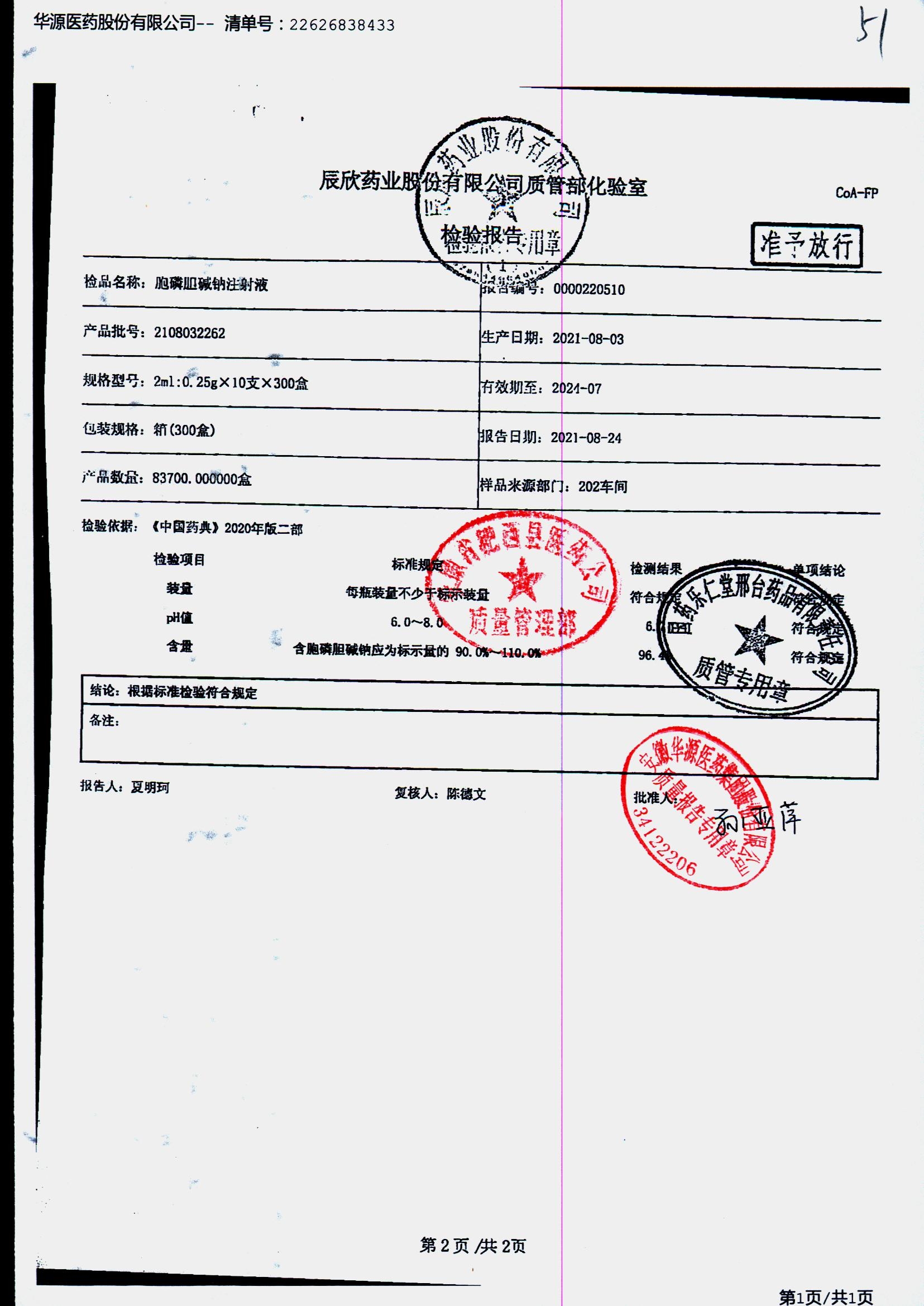 胞磷胆碱钠注射液 | 2ml:0.25g | 2108032262/1 | 查看详情 |