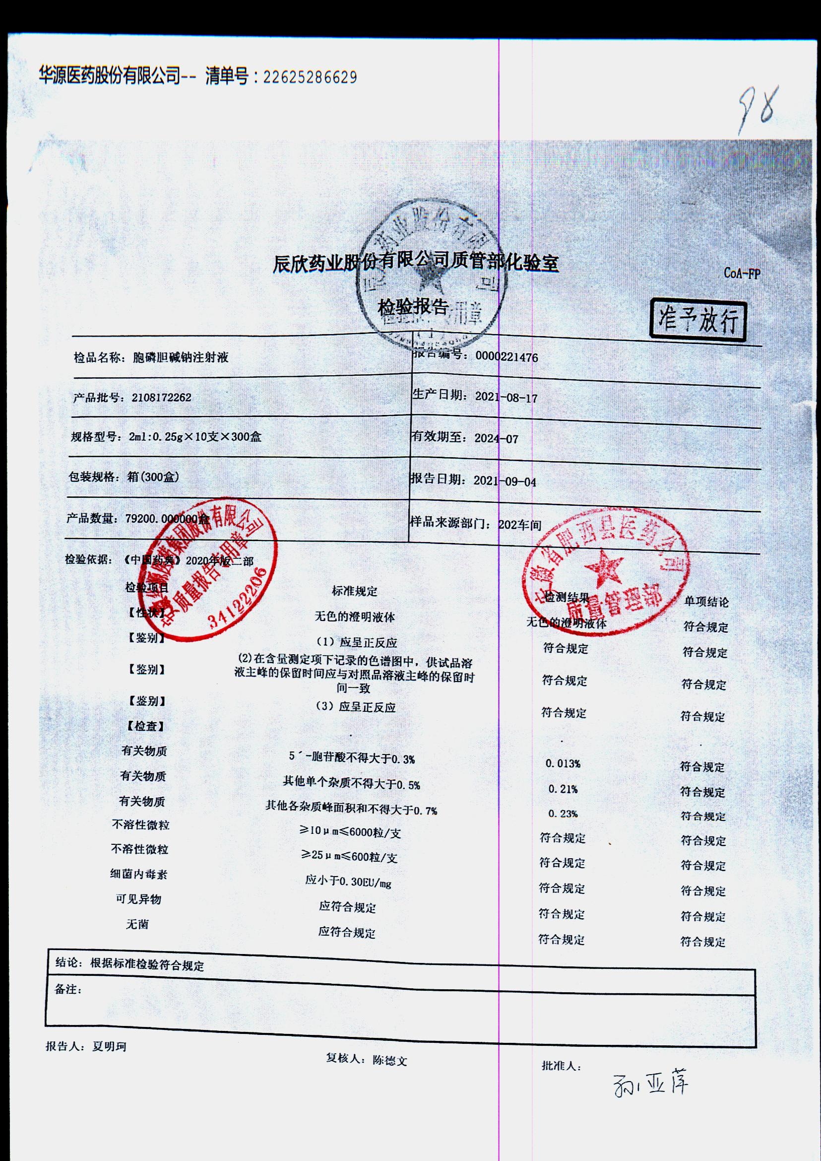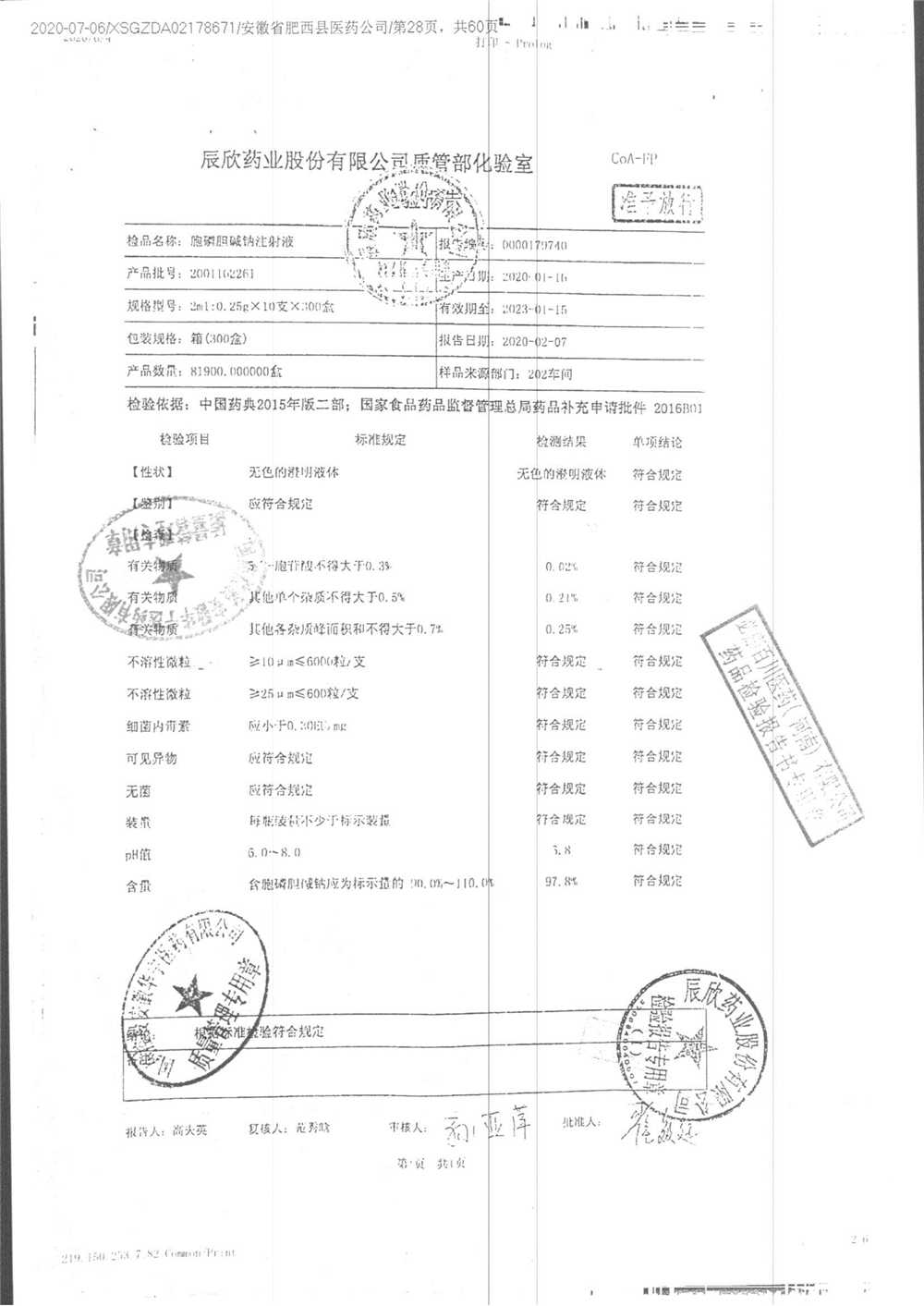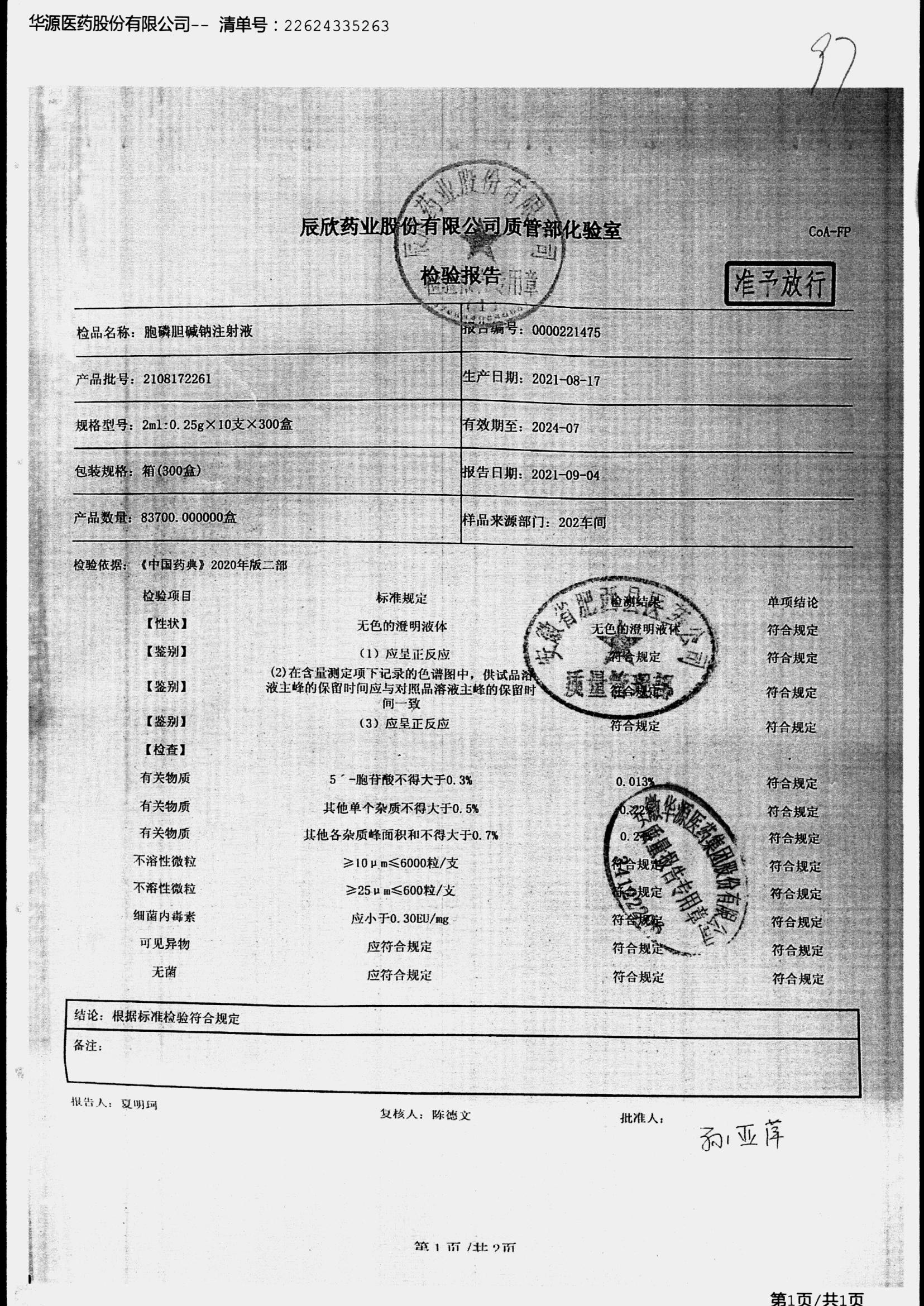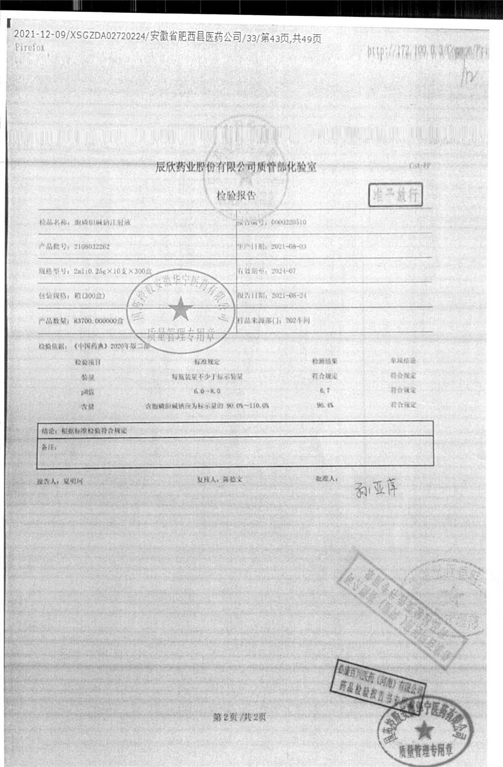 胞磷胆碱钠注射液 | 2ml:0.25g | 2108032262/1 | 查看详情 |