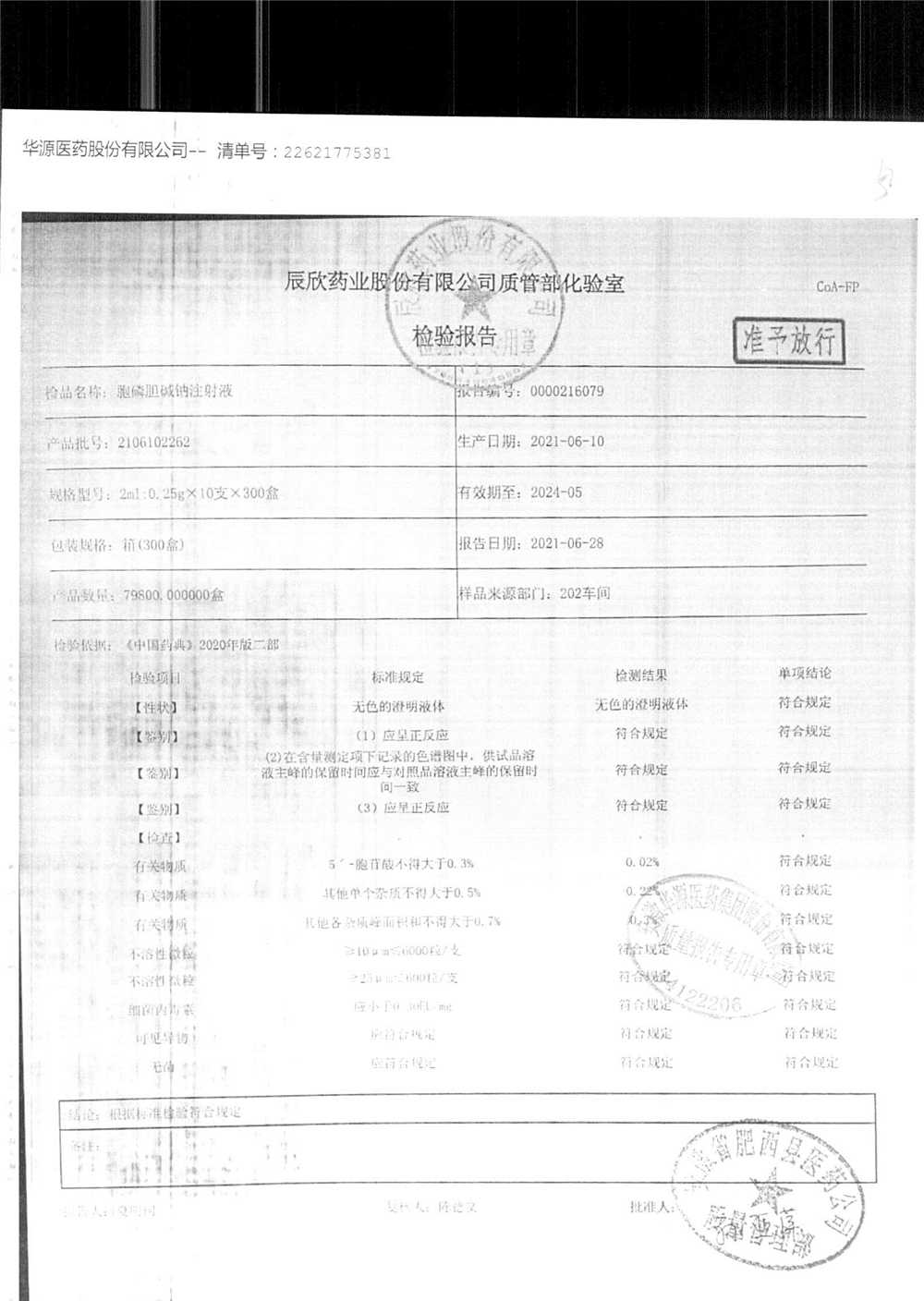 胞磷胆碱钠注射液 | 2ml:0.25g | 2106102262(1/2) | 查看详情 |