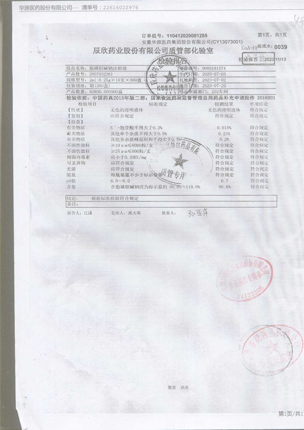 胞磷胆碱钠注射液 | 2ml:0.25g | 1803222521 | 查看详情 |