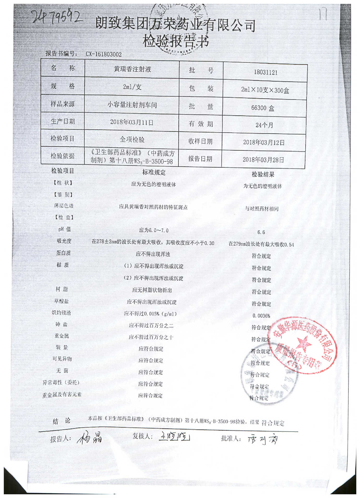 药检报告